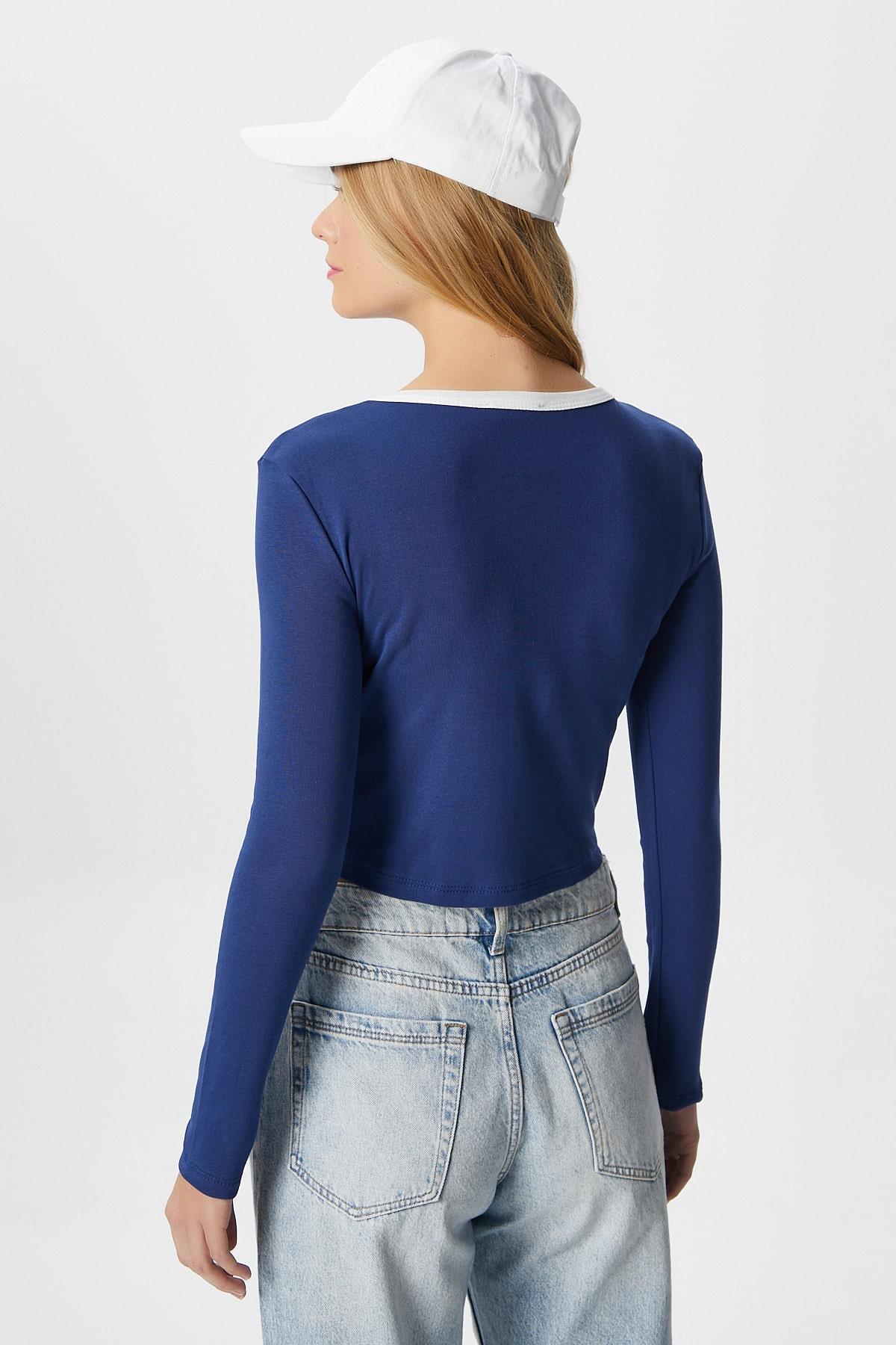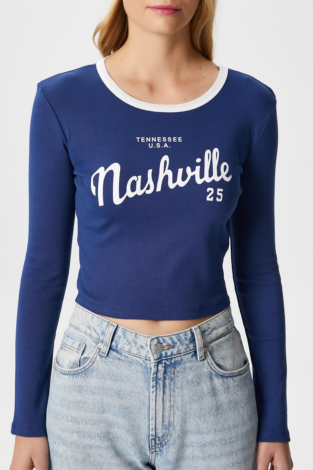 Kadın Nash Lacivert Pamuk Slogan Baskılı Bluz