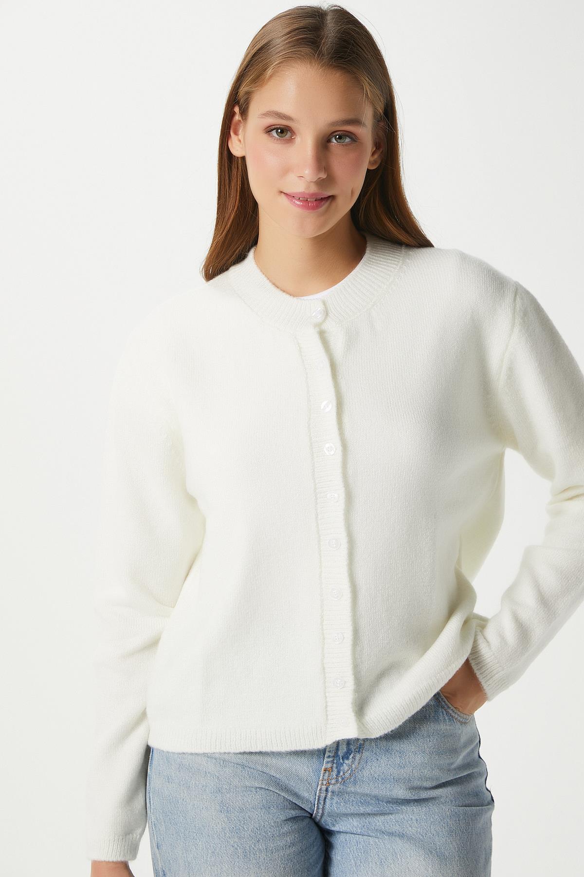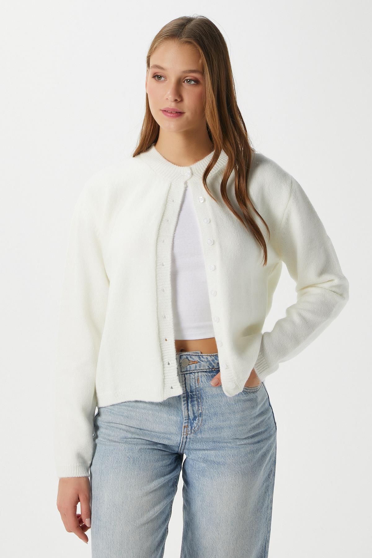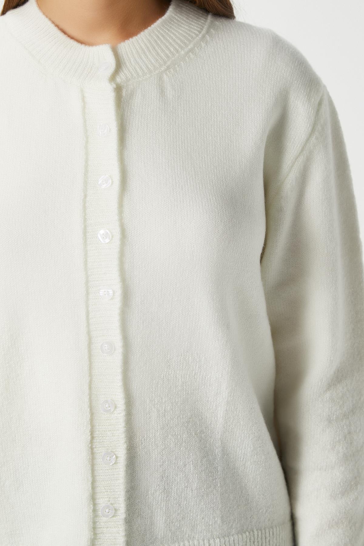 Kadın Nina Bisiklet Yaka Ekru Basic Hırka