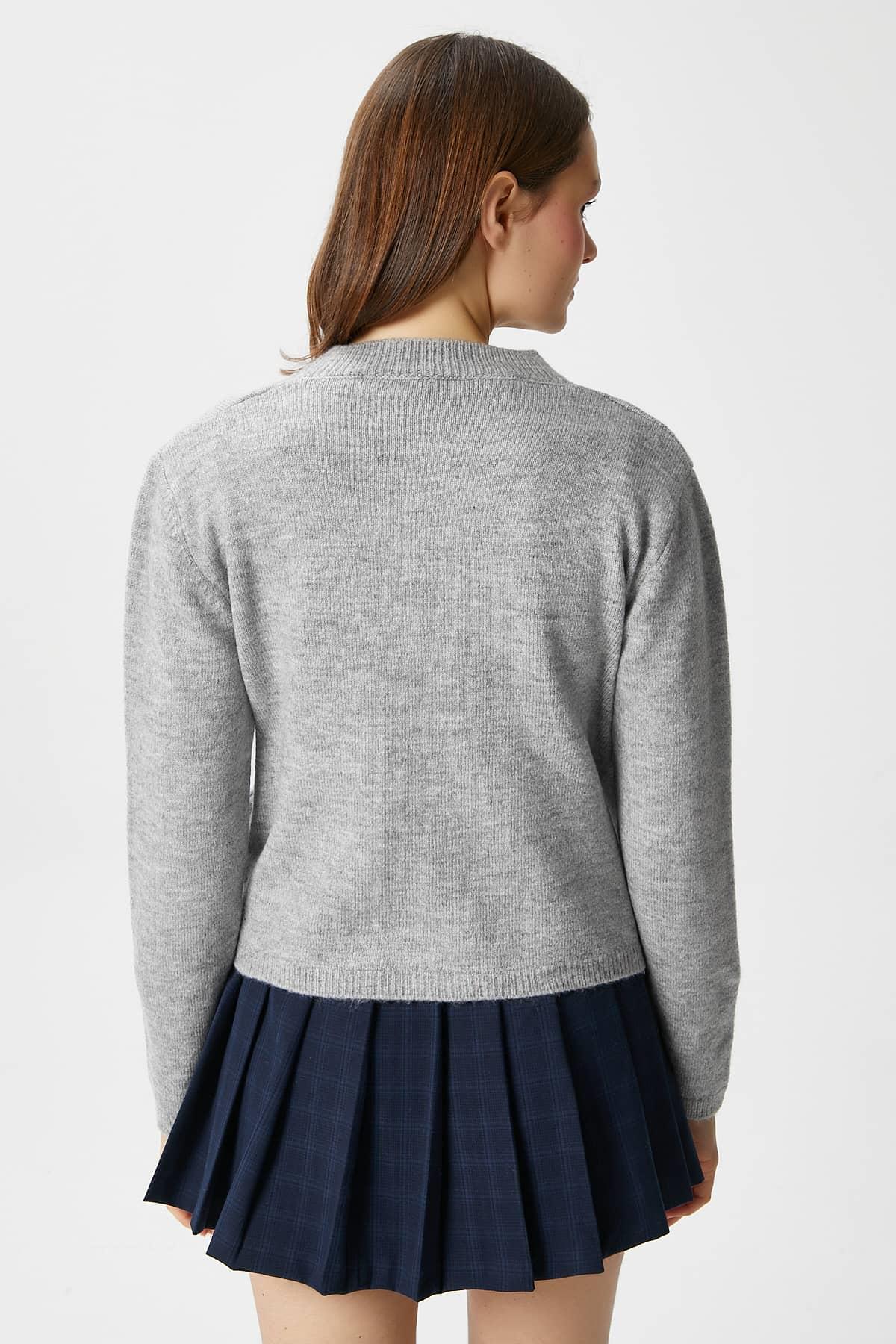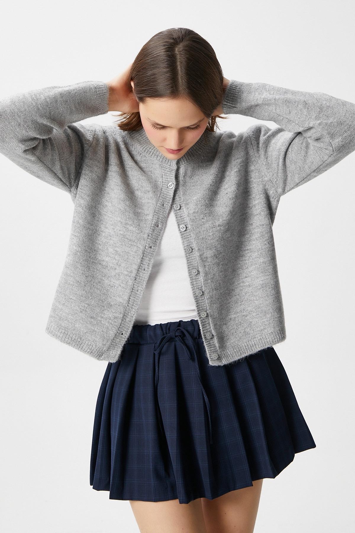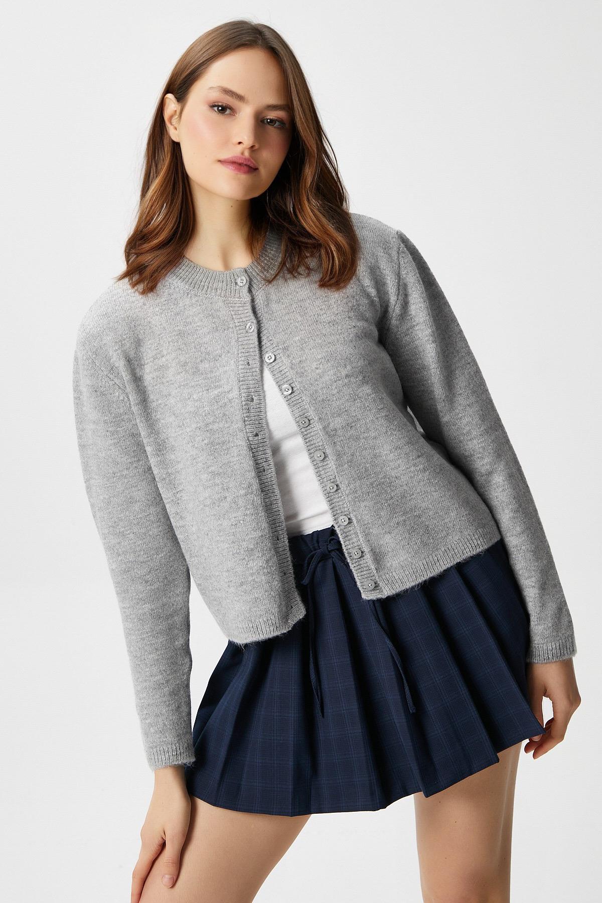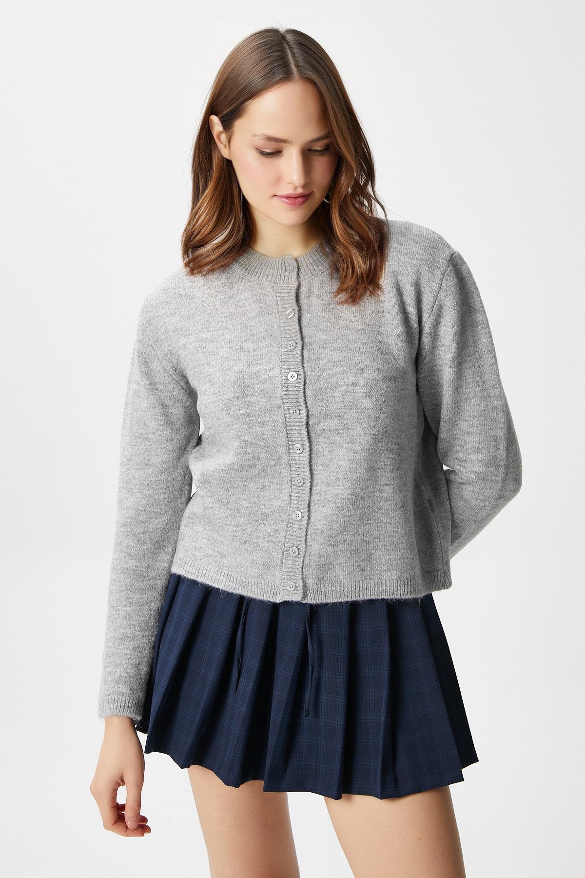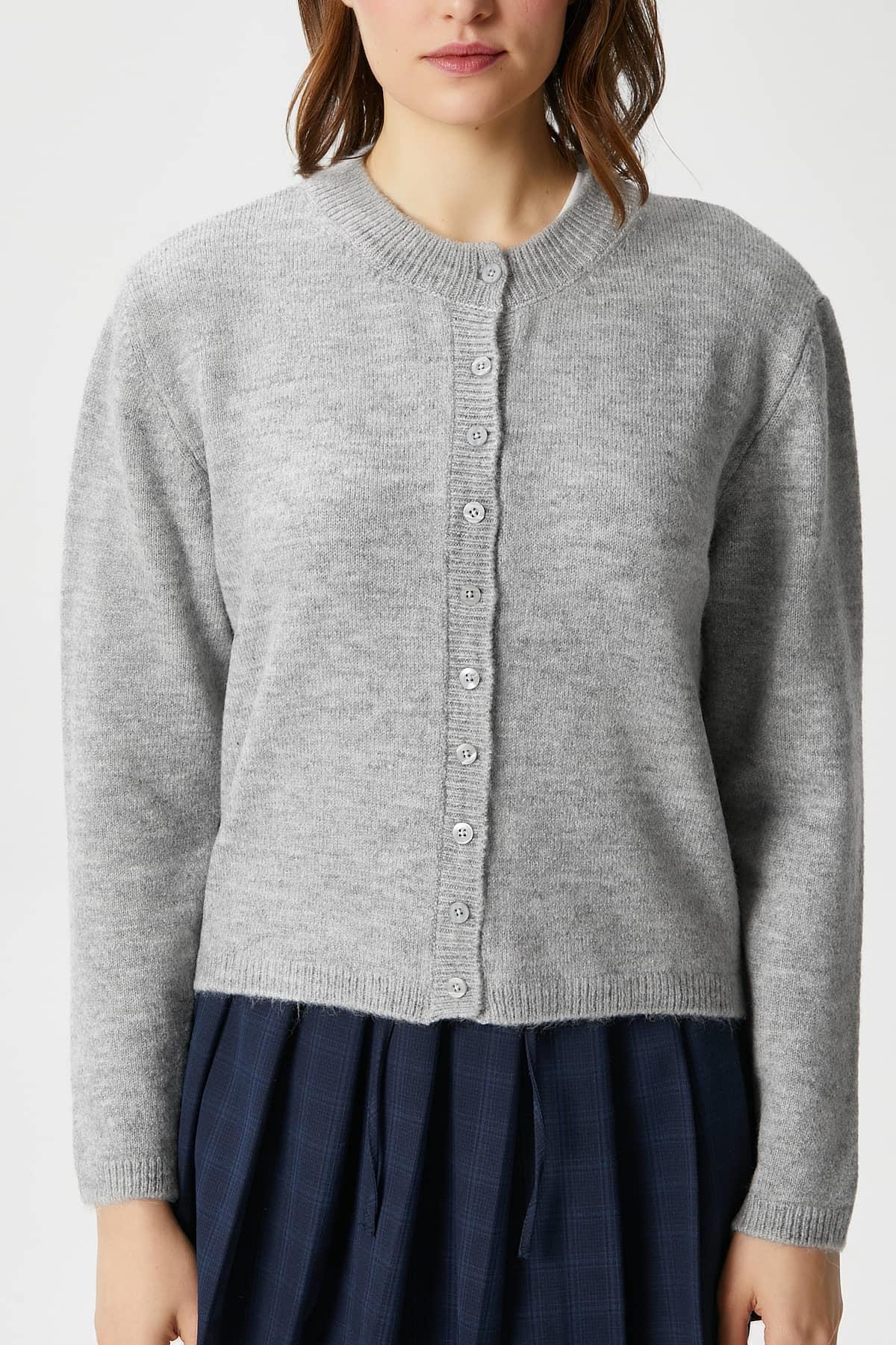 Kadın Nina Bisiklet Yaka Gri Basic Hırka