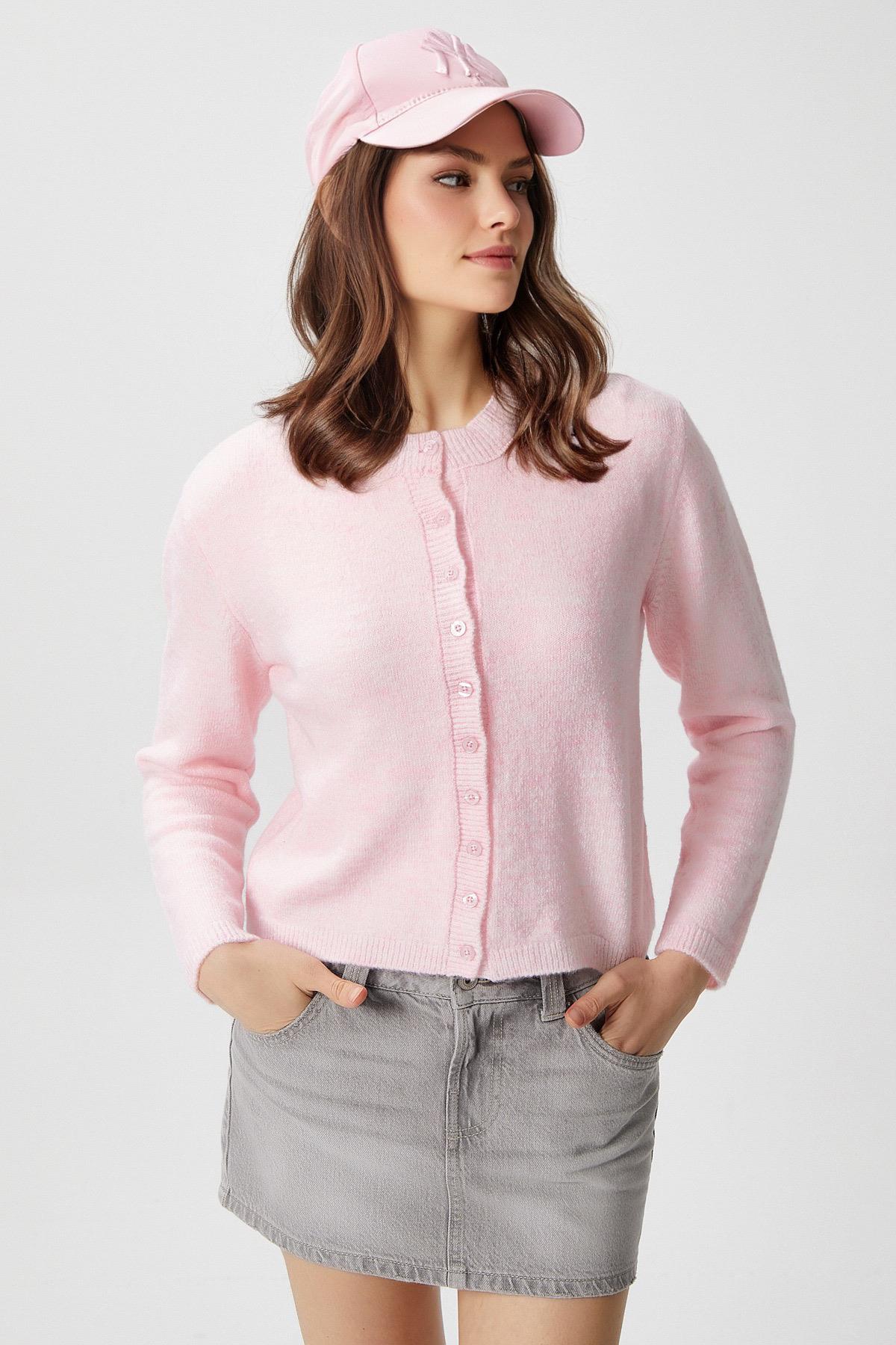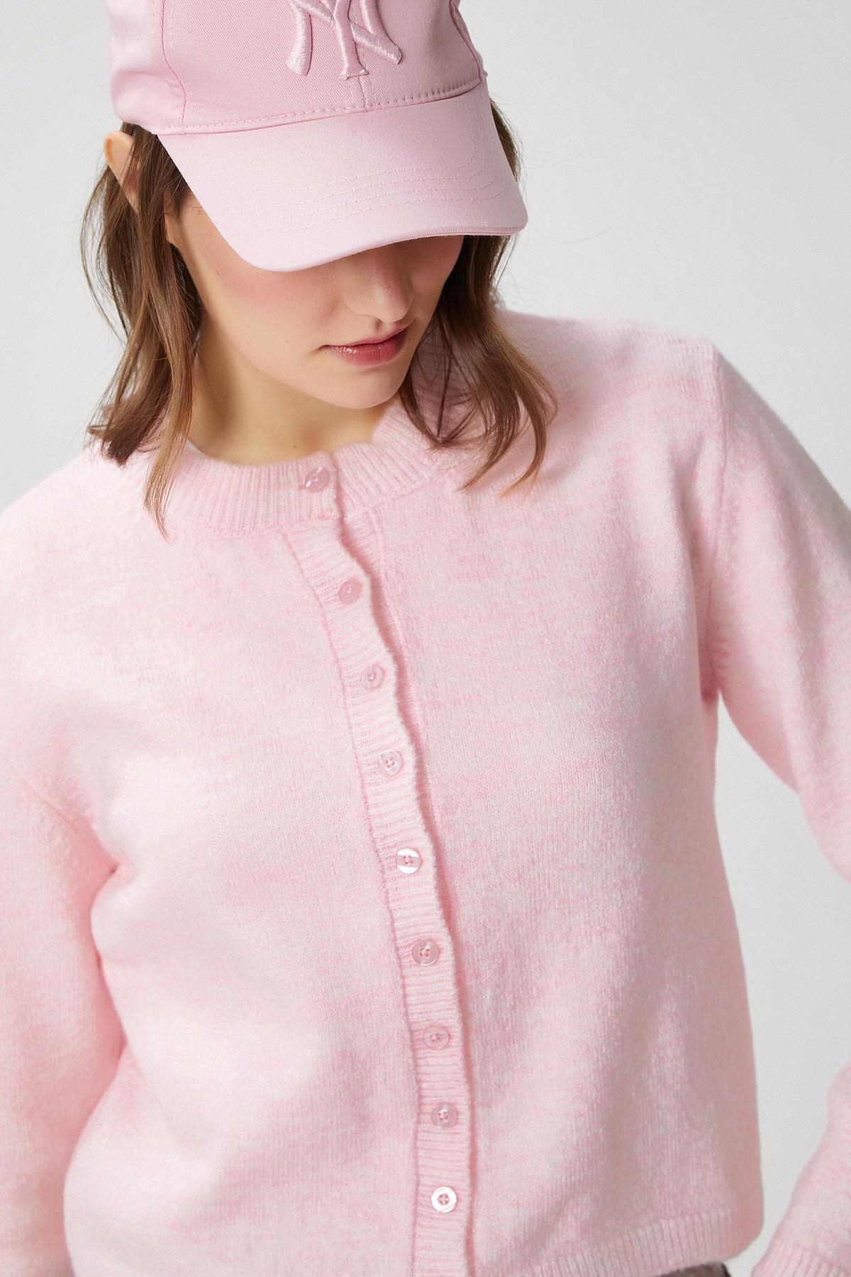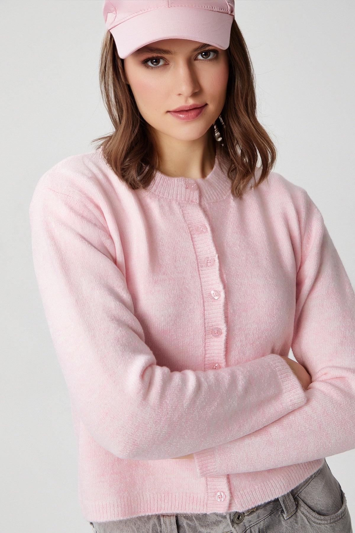 Kadın Nina Bisiklet Yaka Pembe Basic Hırka