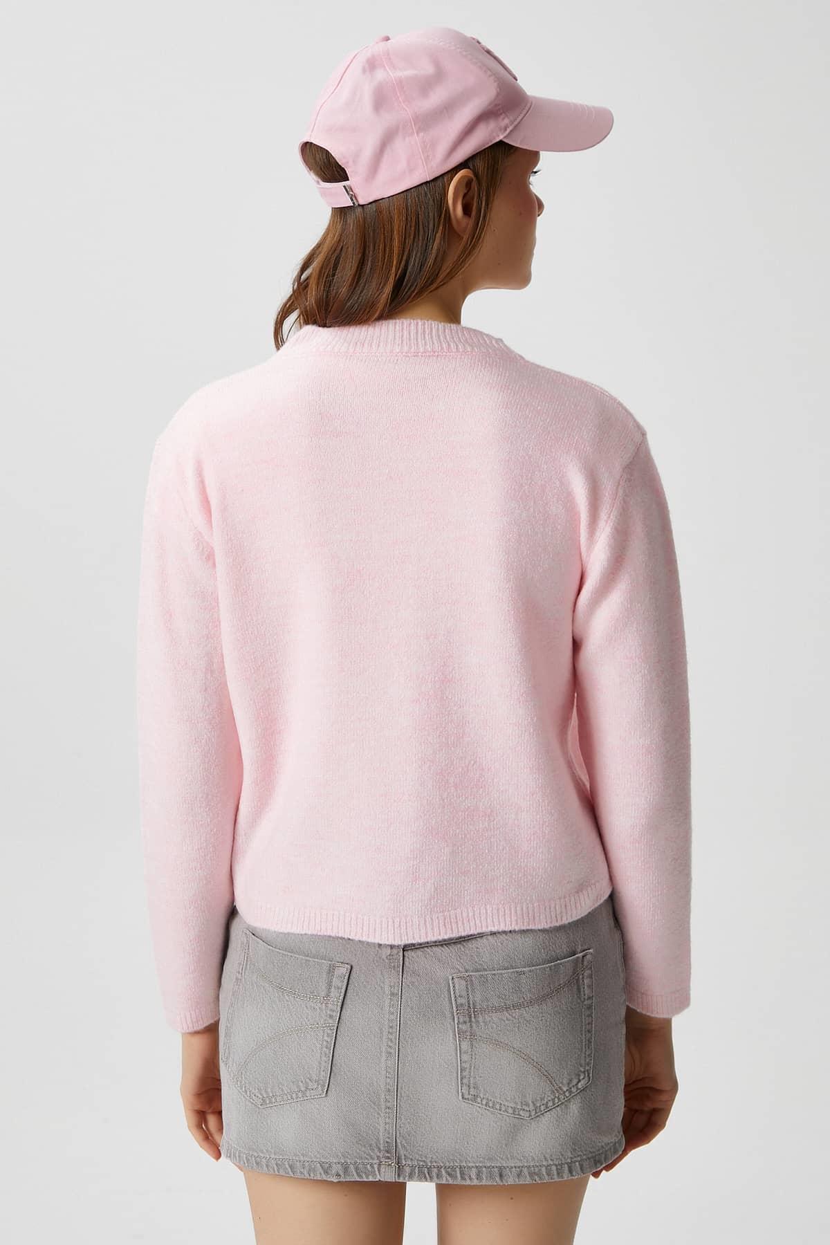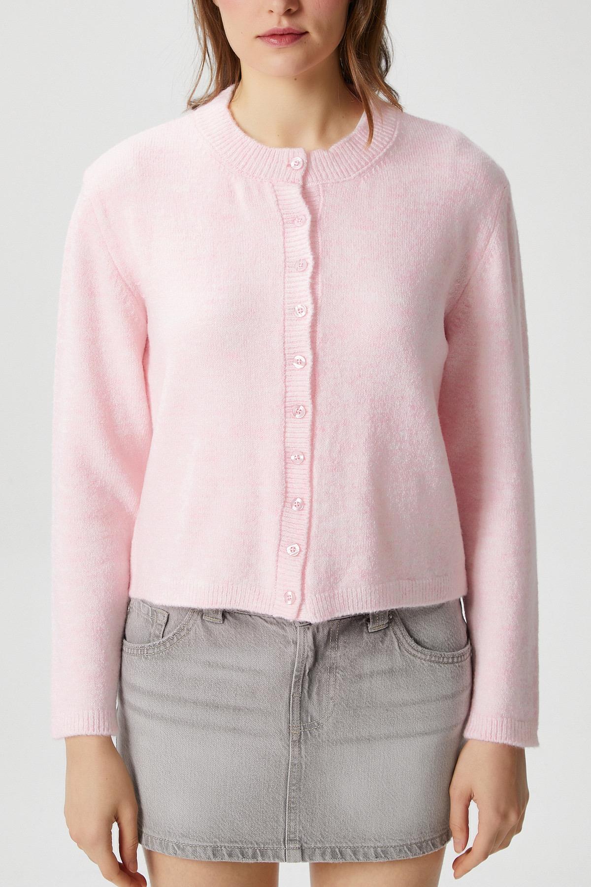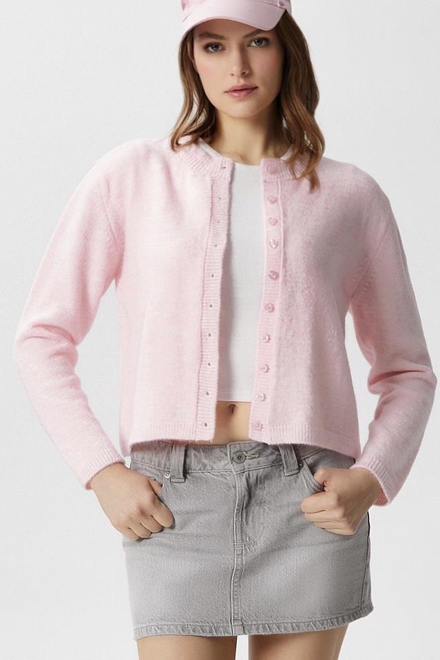 Kadın Nina Bisiklet Yaka Pembe Basic Hırka