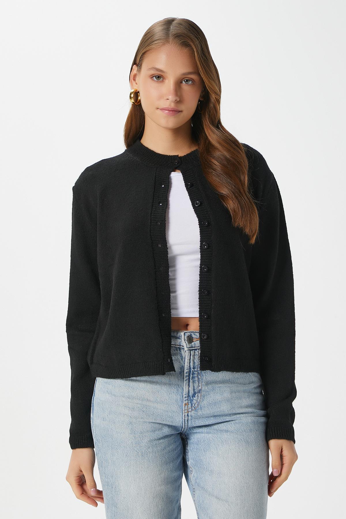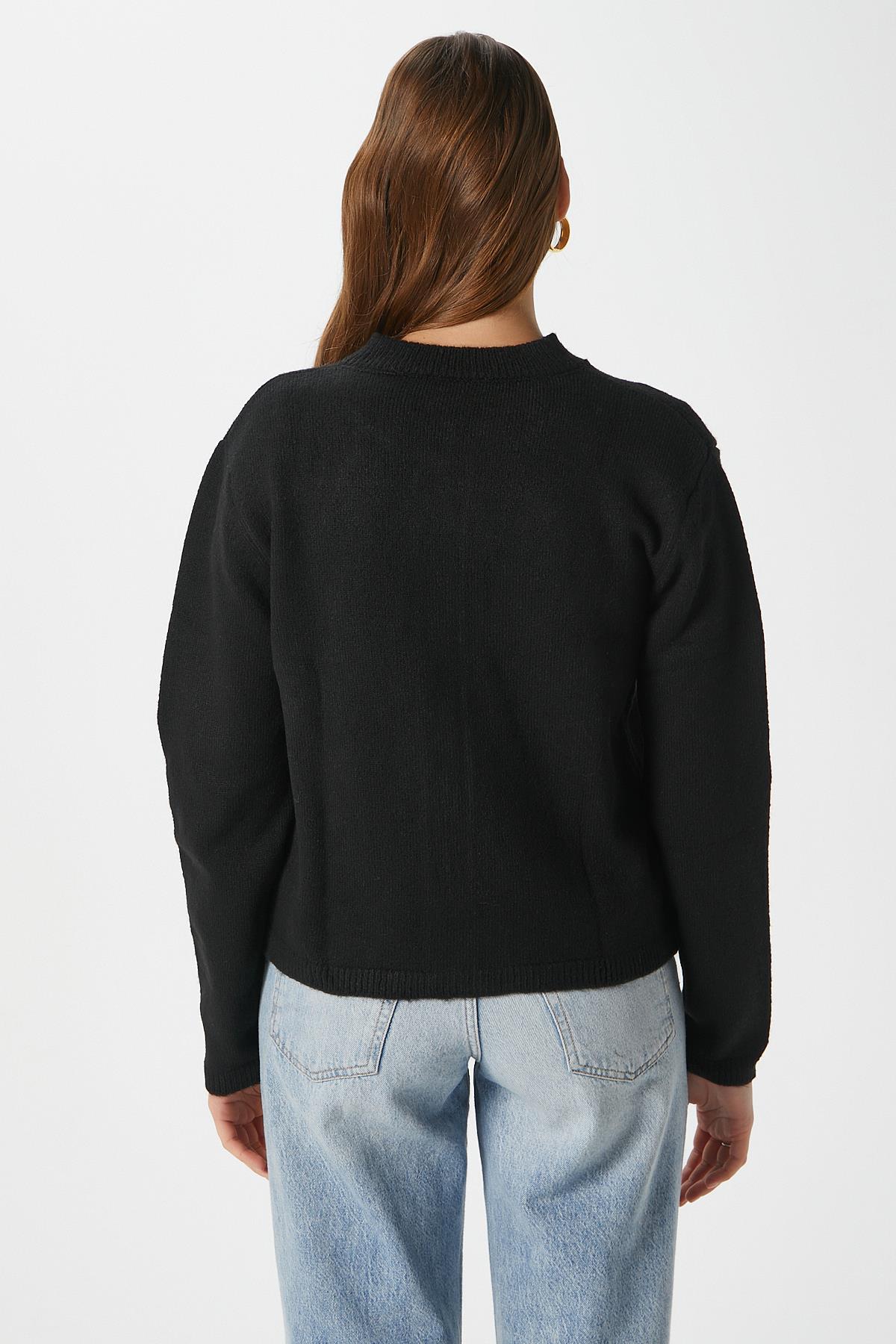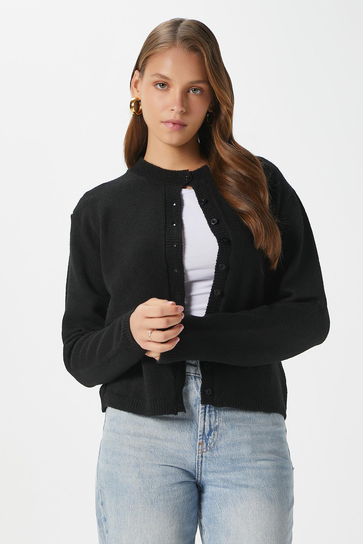 Kadın Nina Bisiklet Yaka Siyah Basic Hırka