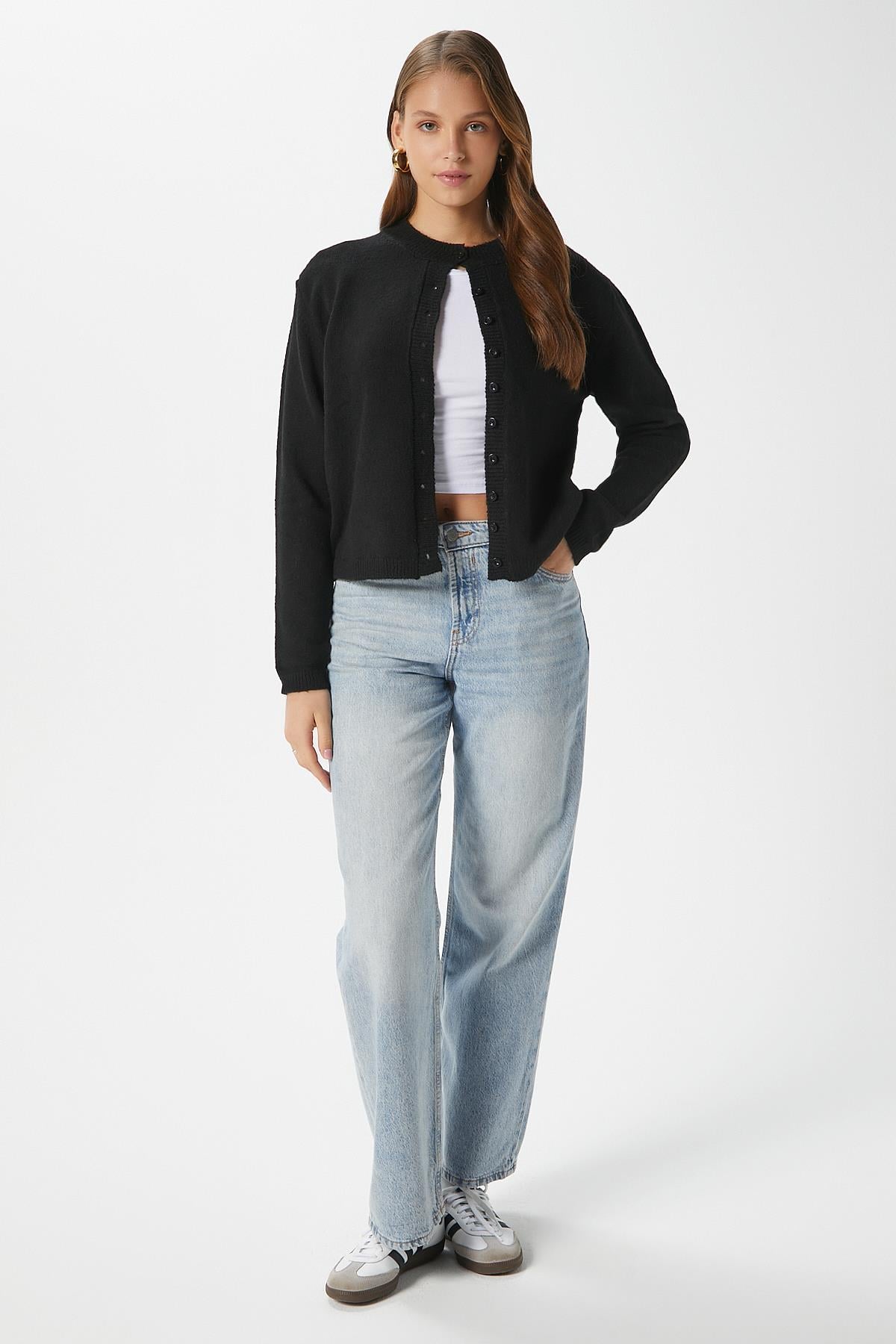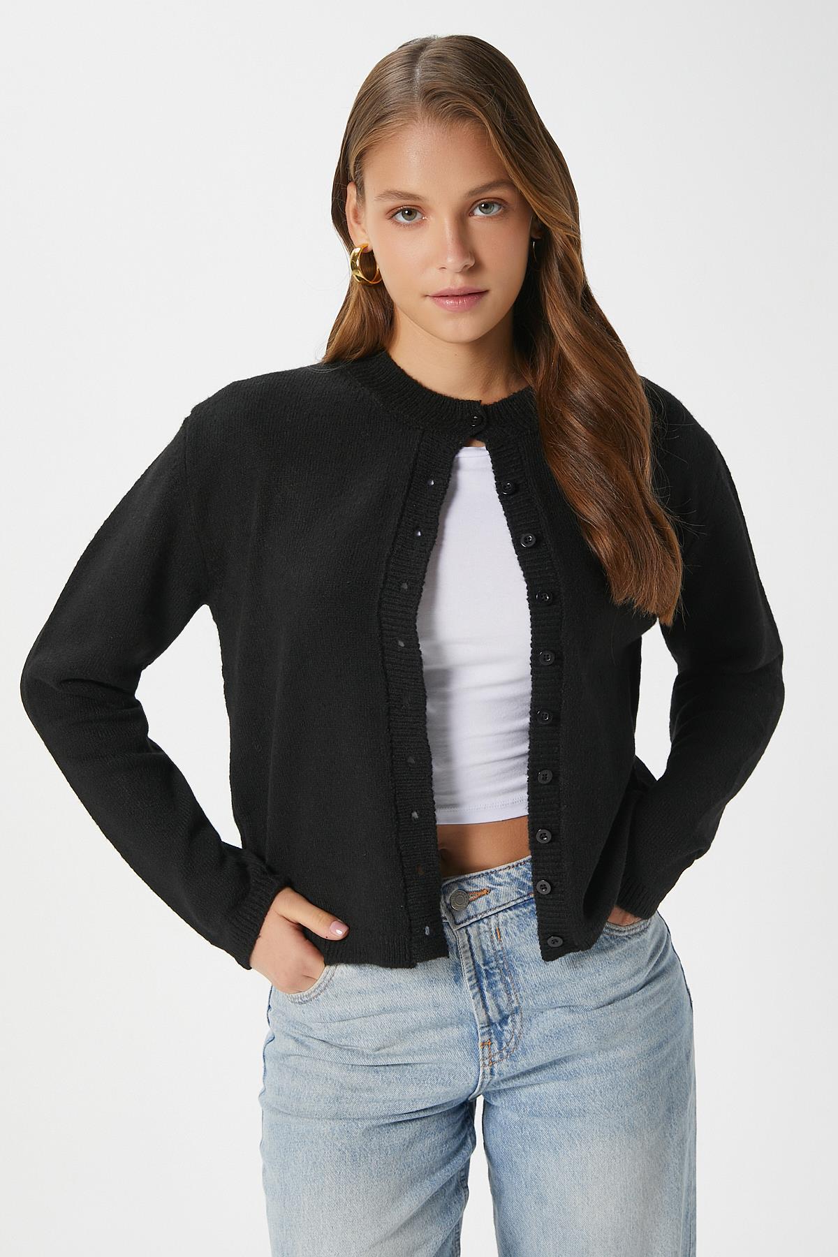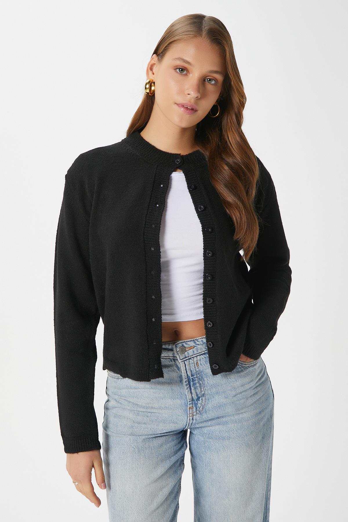 Kadın Nina Bisiklet Yaka Siyah Basic Hırka
