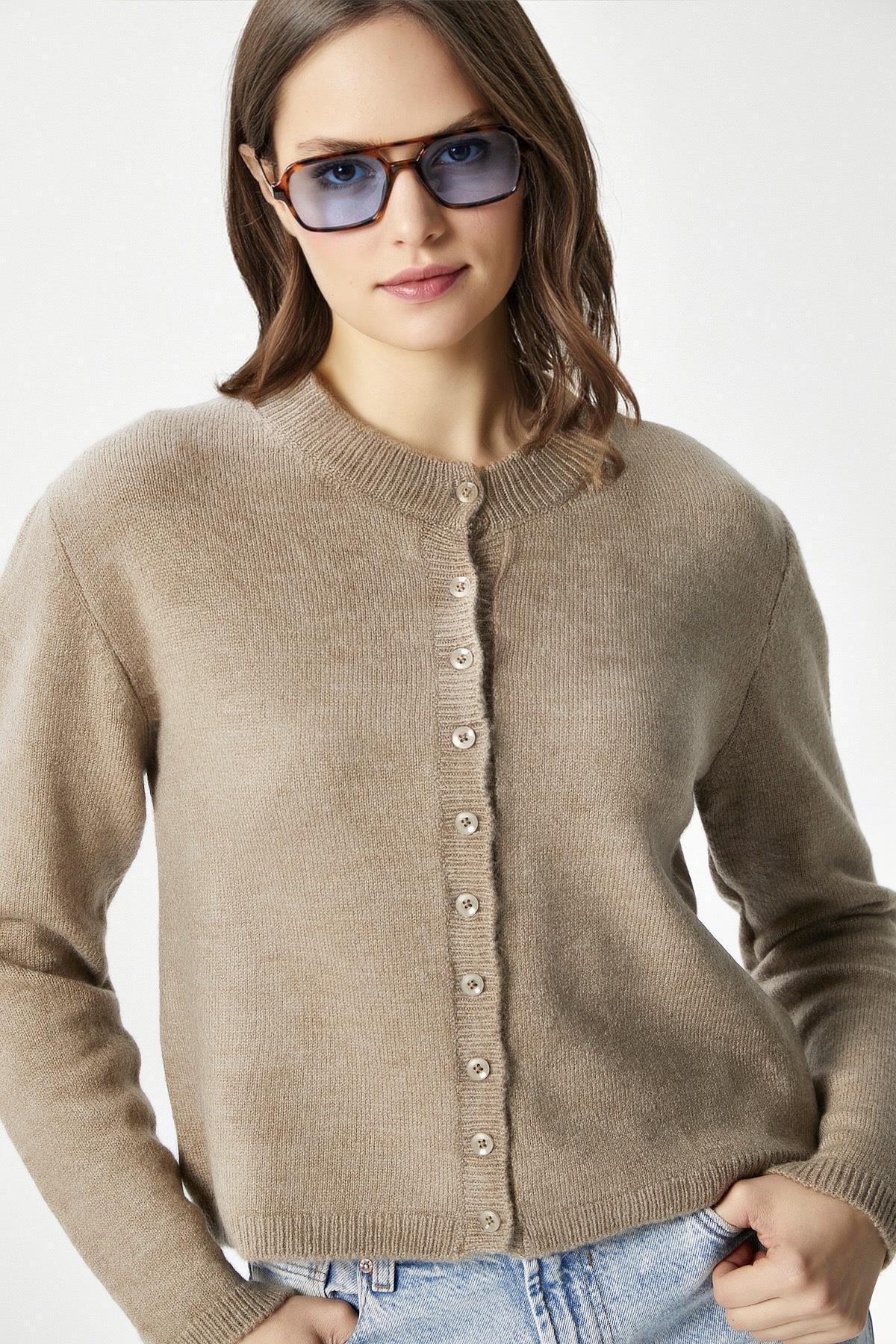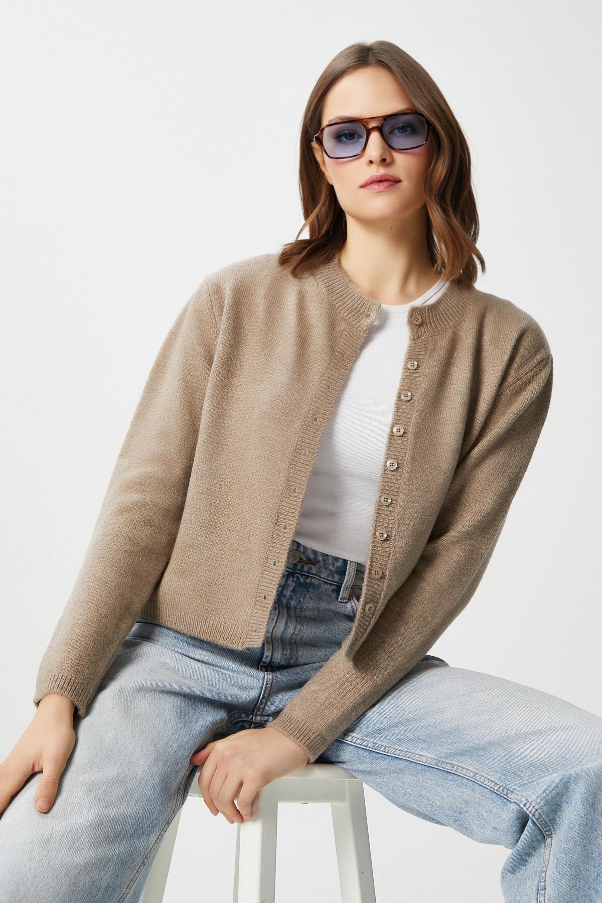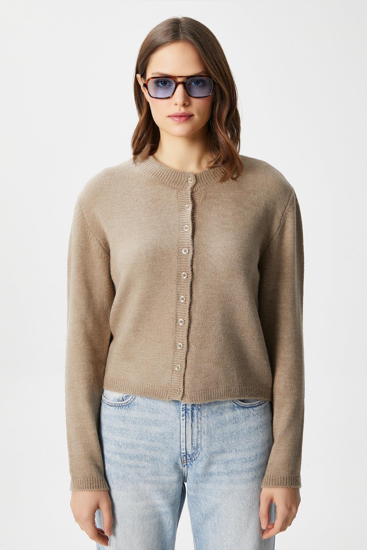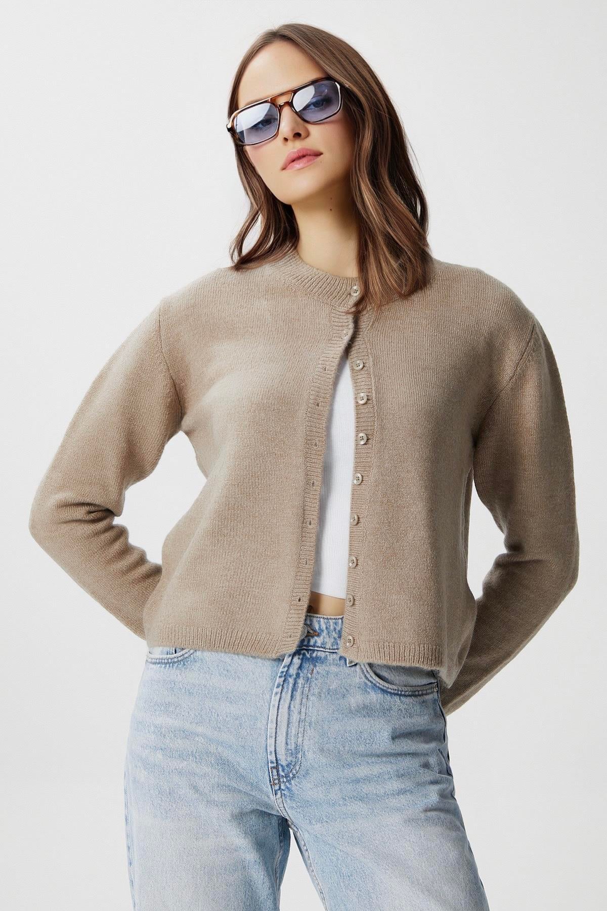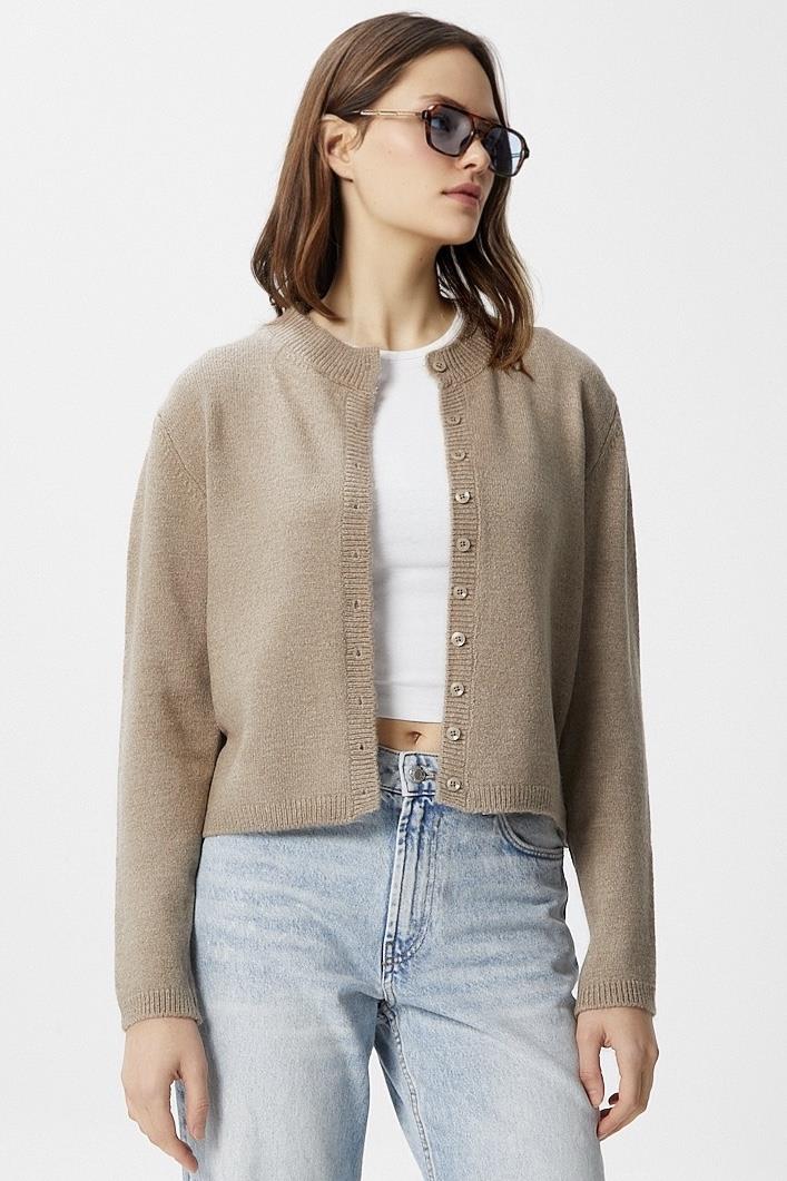 Kadın Nina Bisiklet Yaka Vizon Basic Hırka