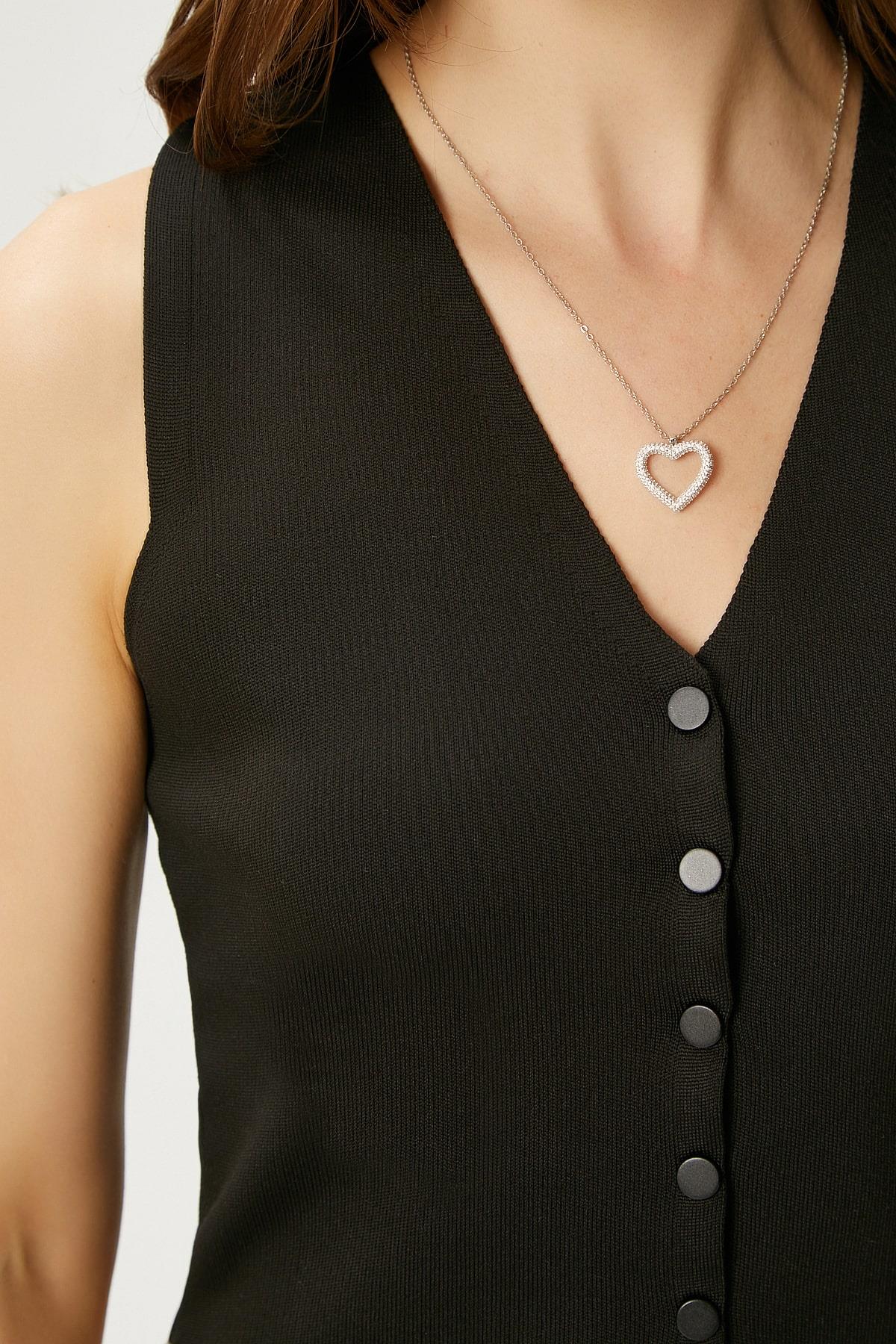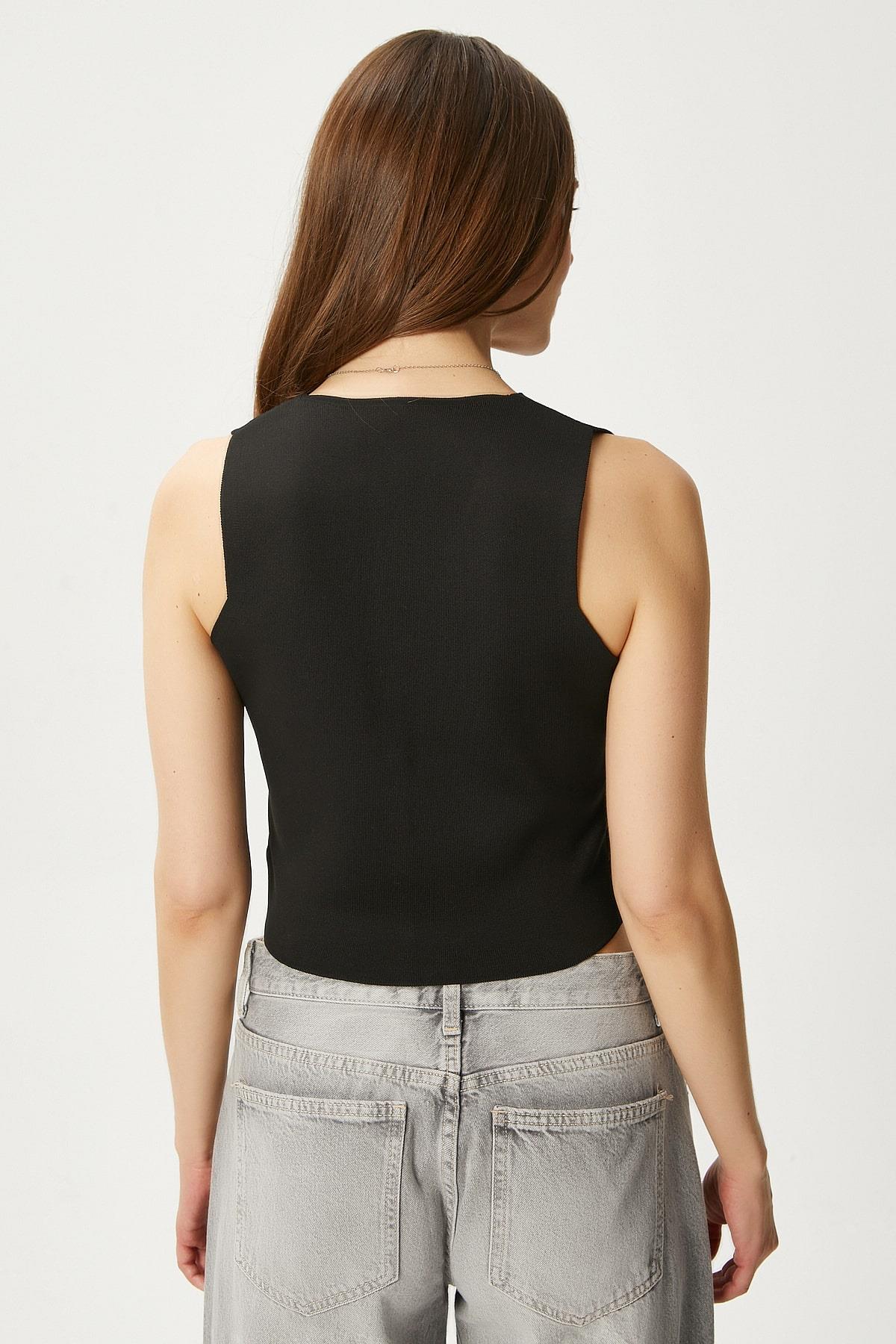 Kadın Petite Çıtçıtlı Crop Siyah Triko Yelek