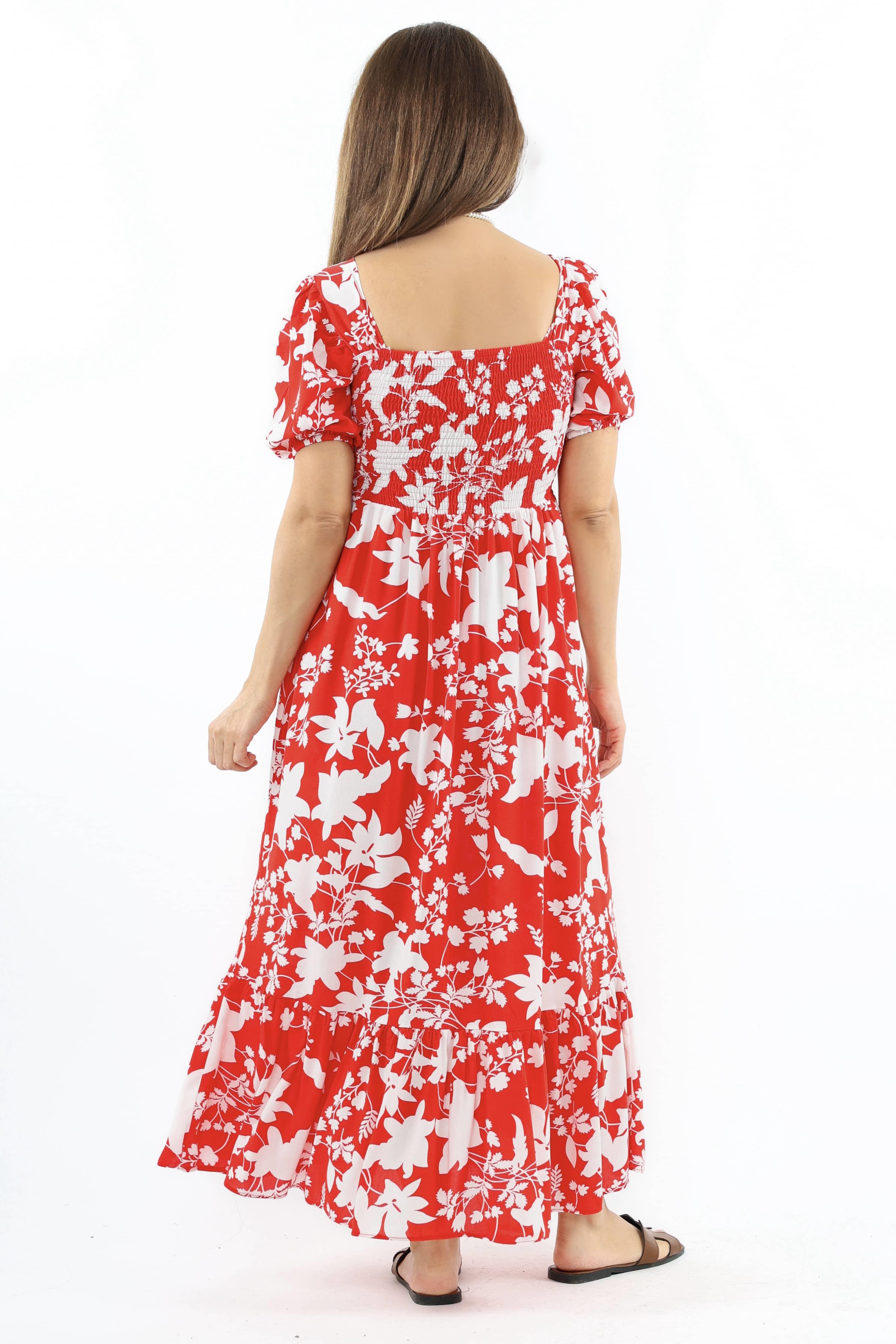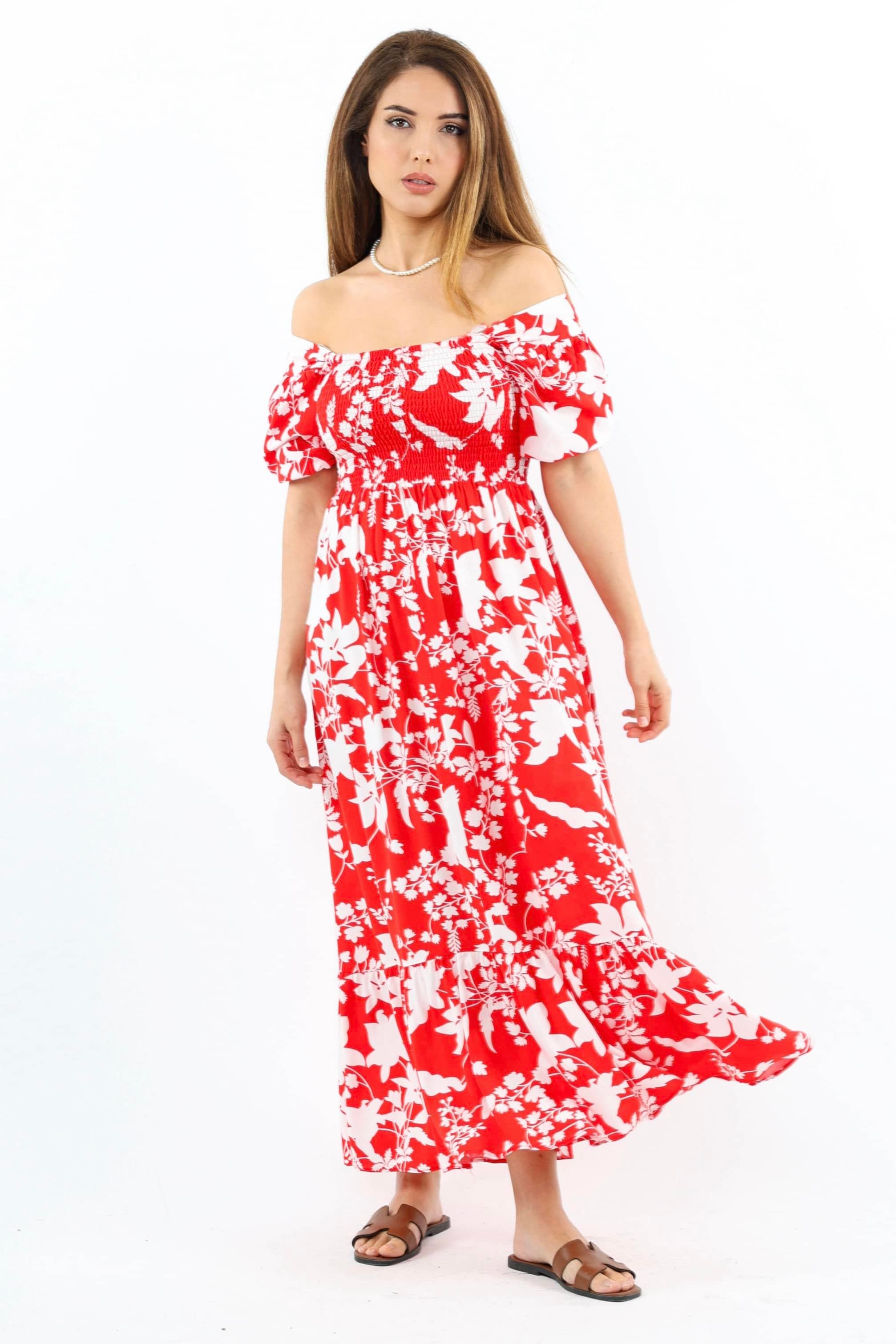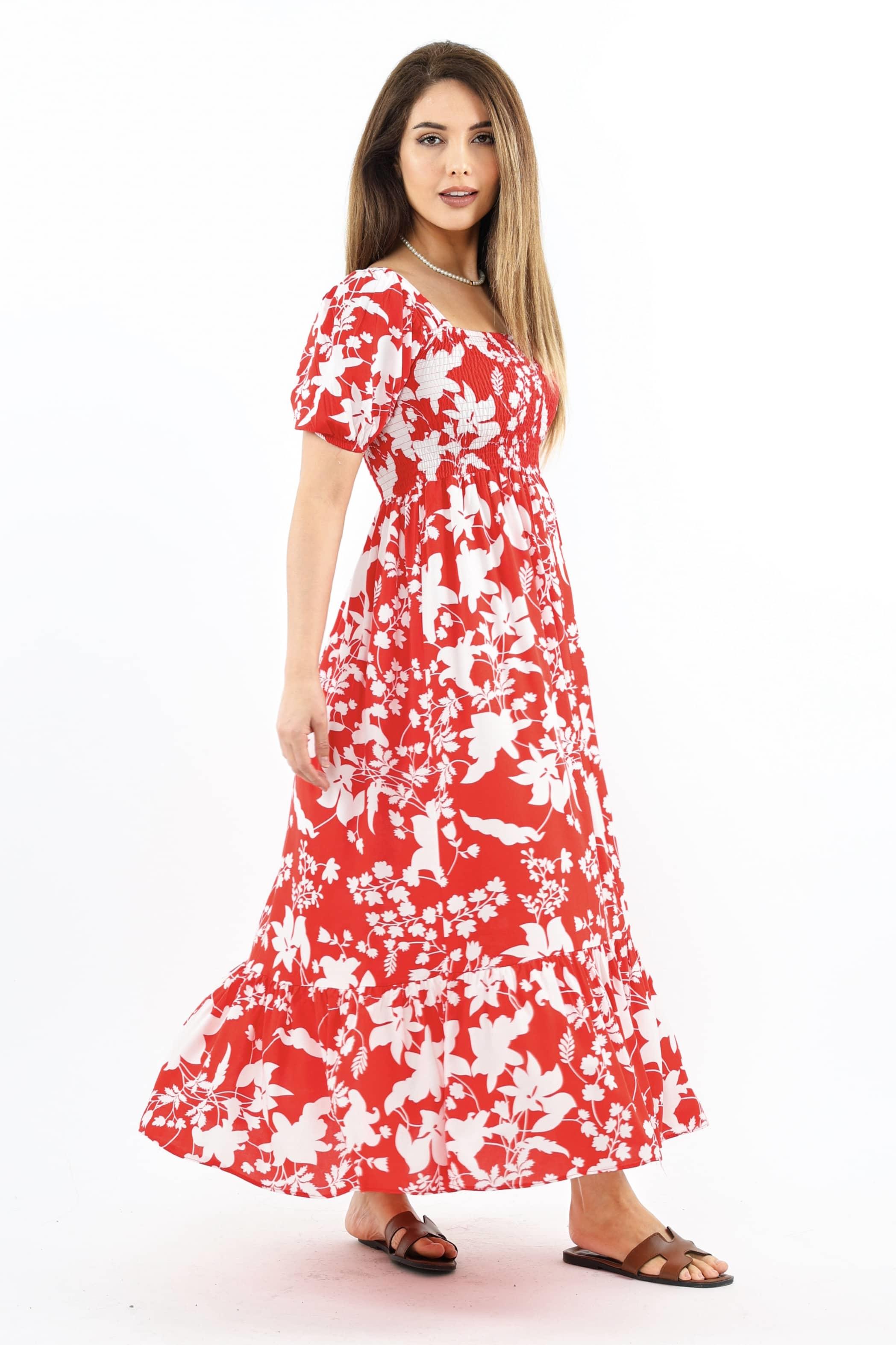 Kadın Positano Kırmızı Gipeli %100 Viskon Uzun Elbise