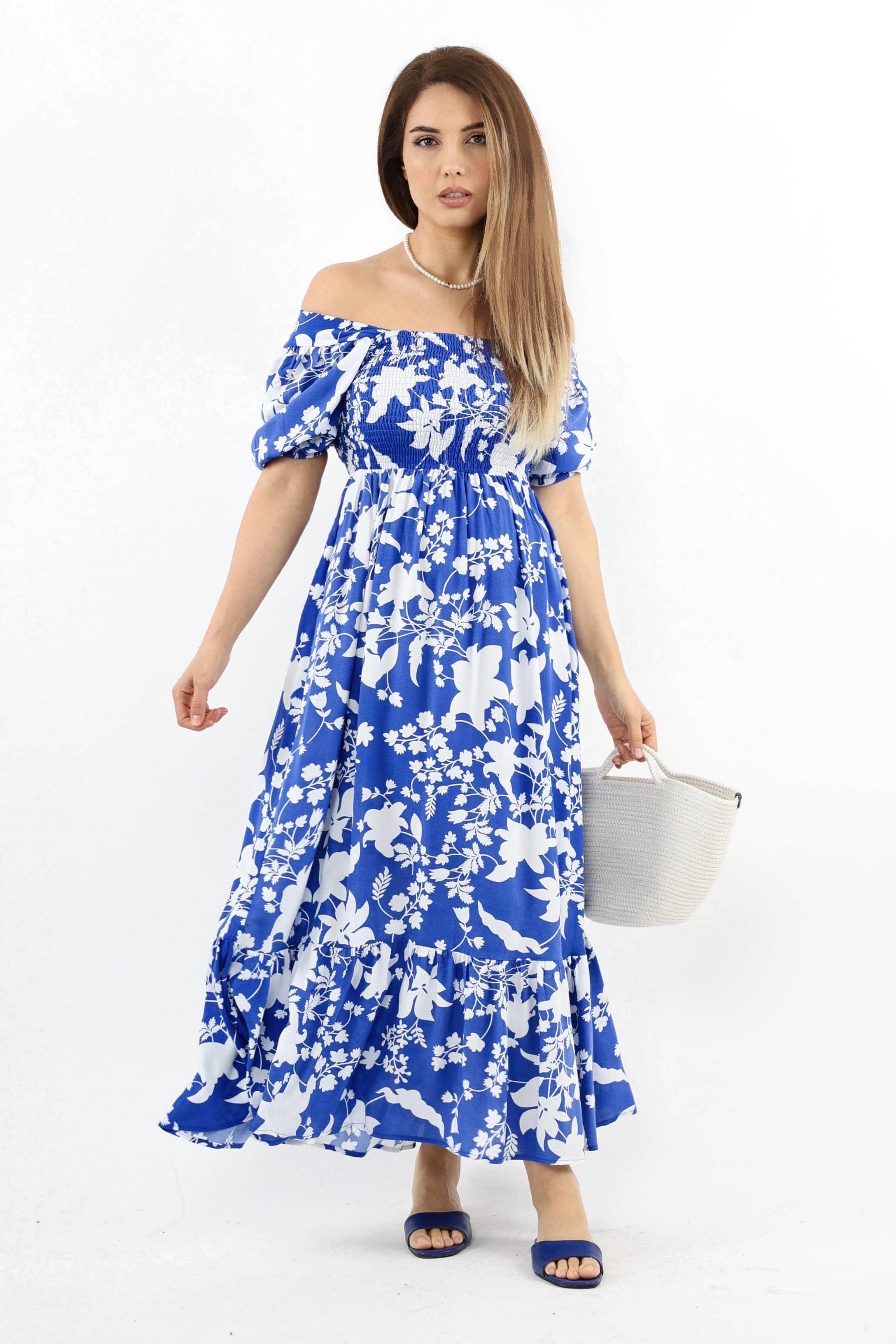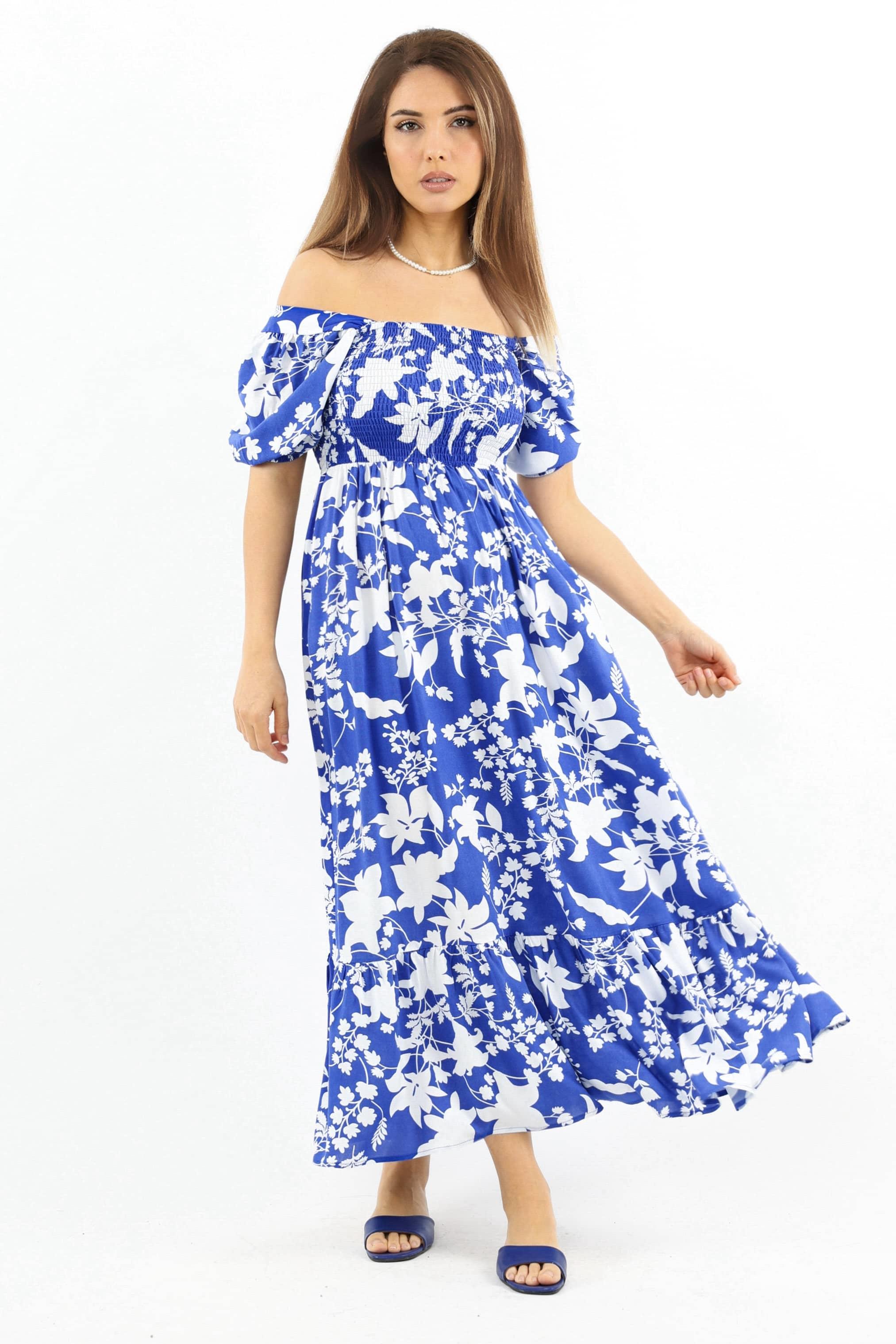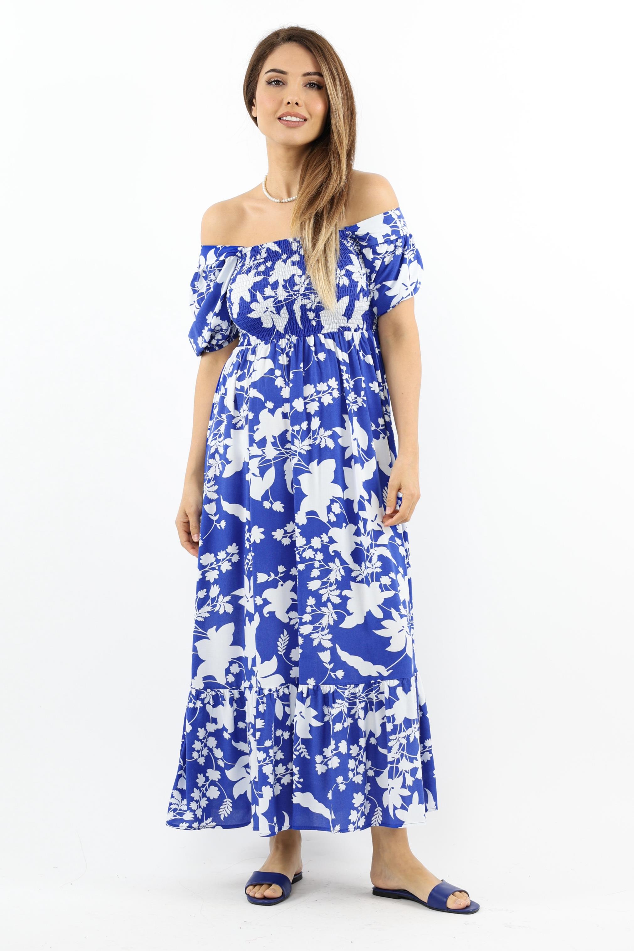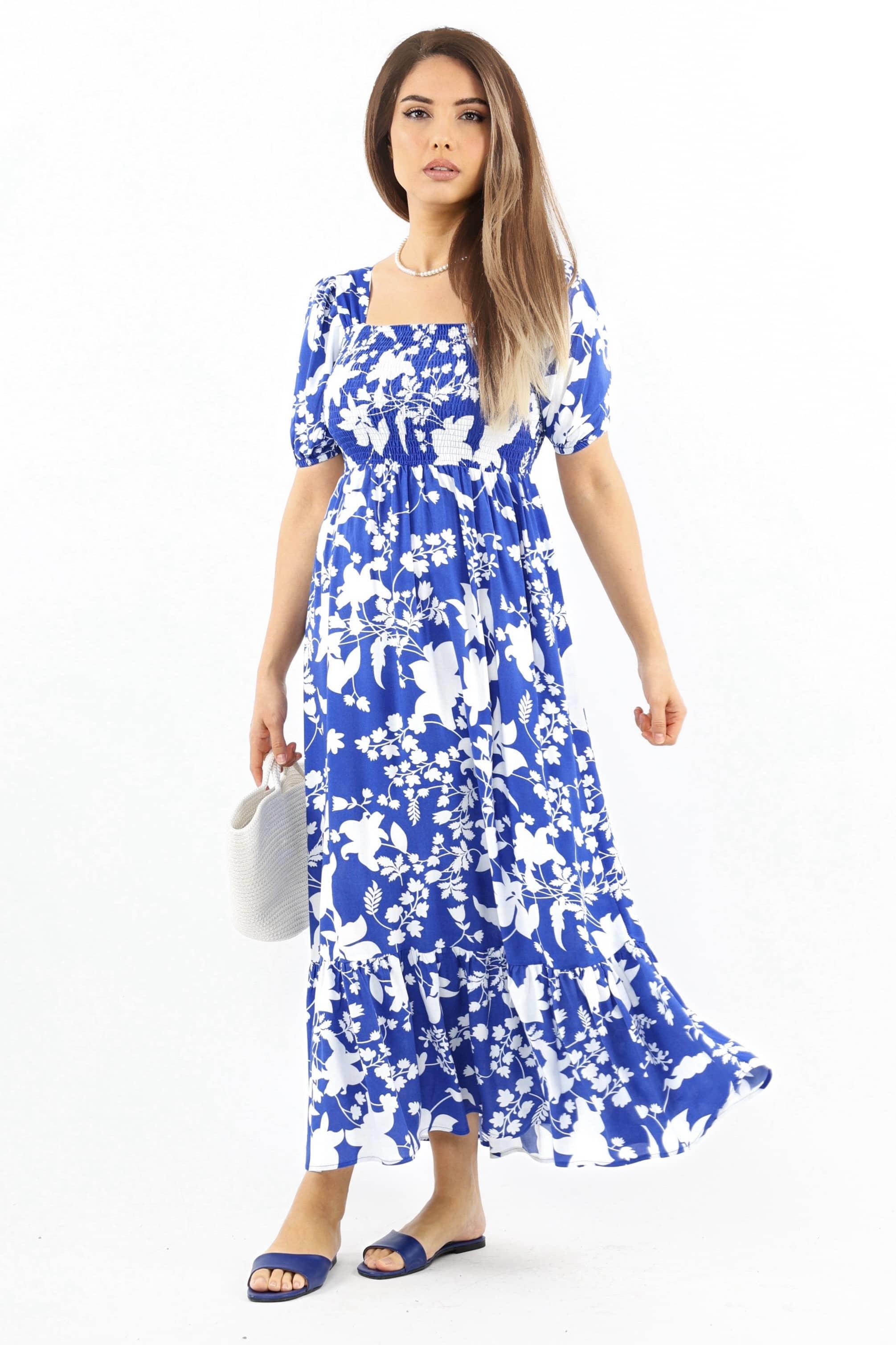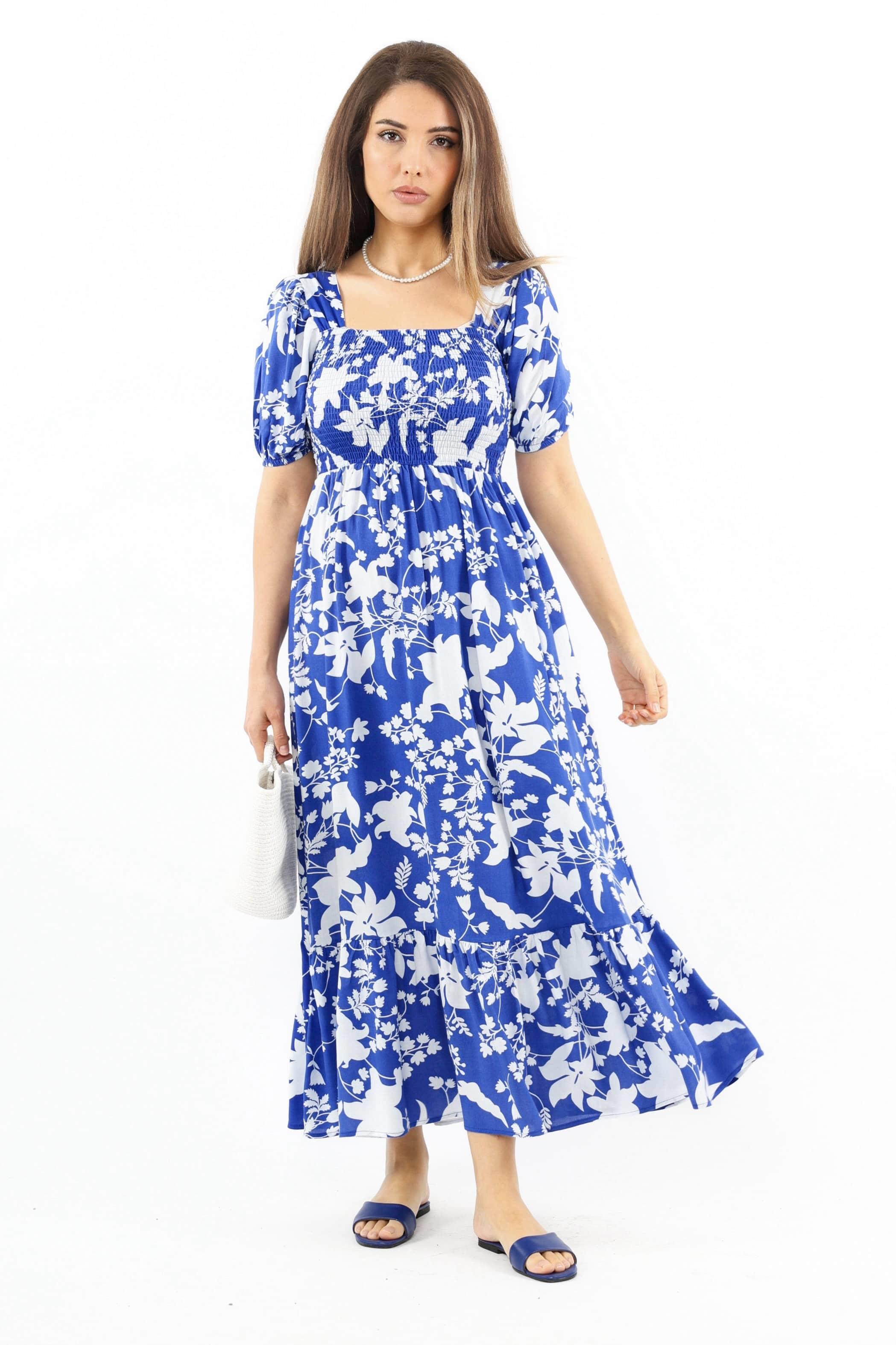 Kadın Positano Mavi Gipeli %100 Viskon Uzun Elbise