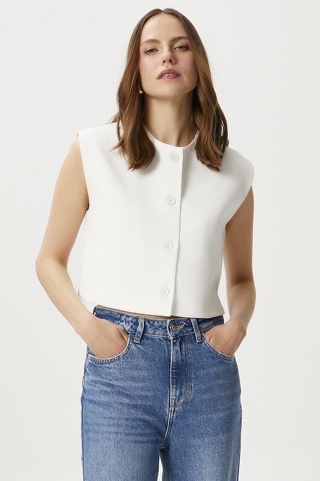 Kadın Power Ekru Astarlı Dokuma Yelek