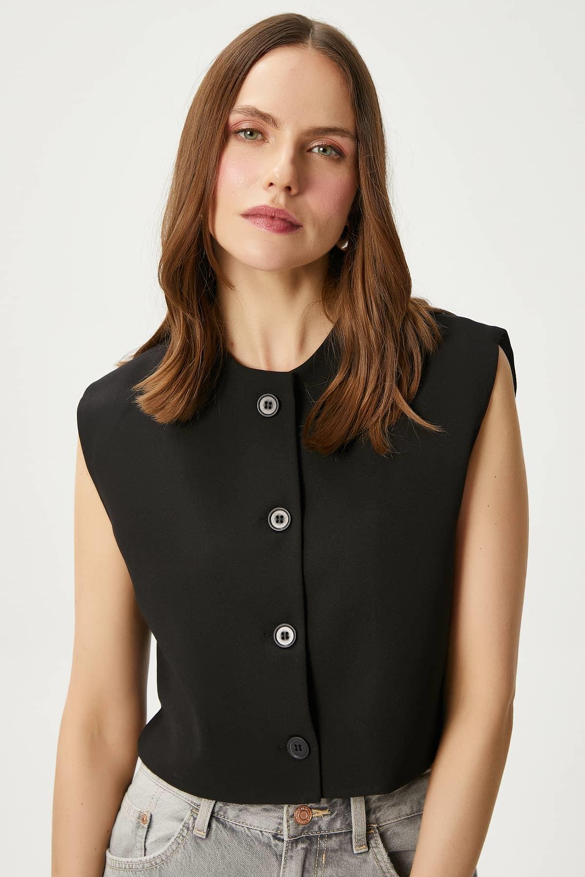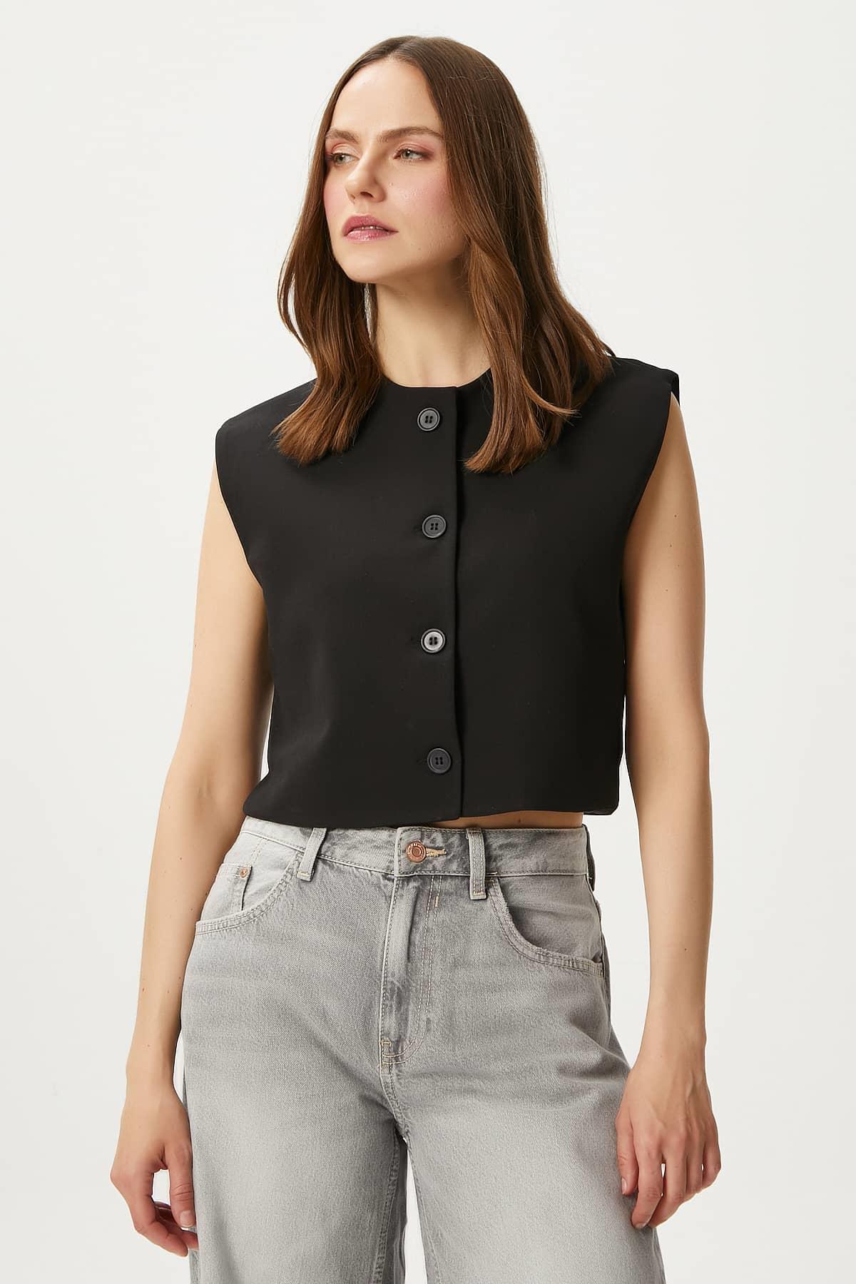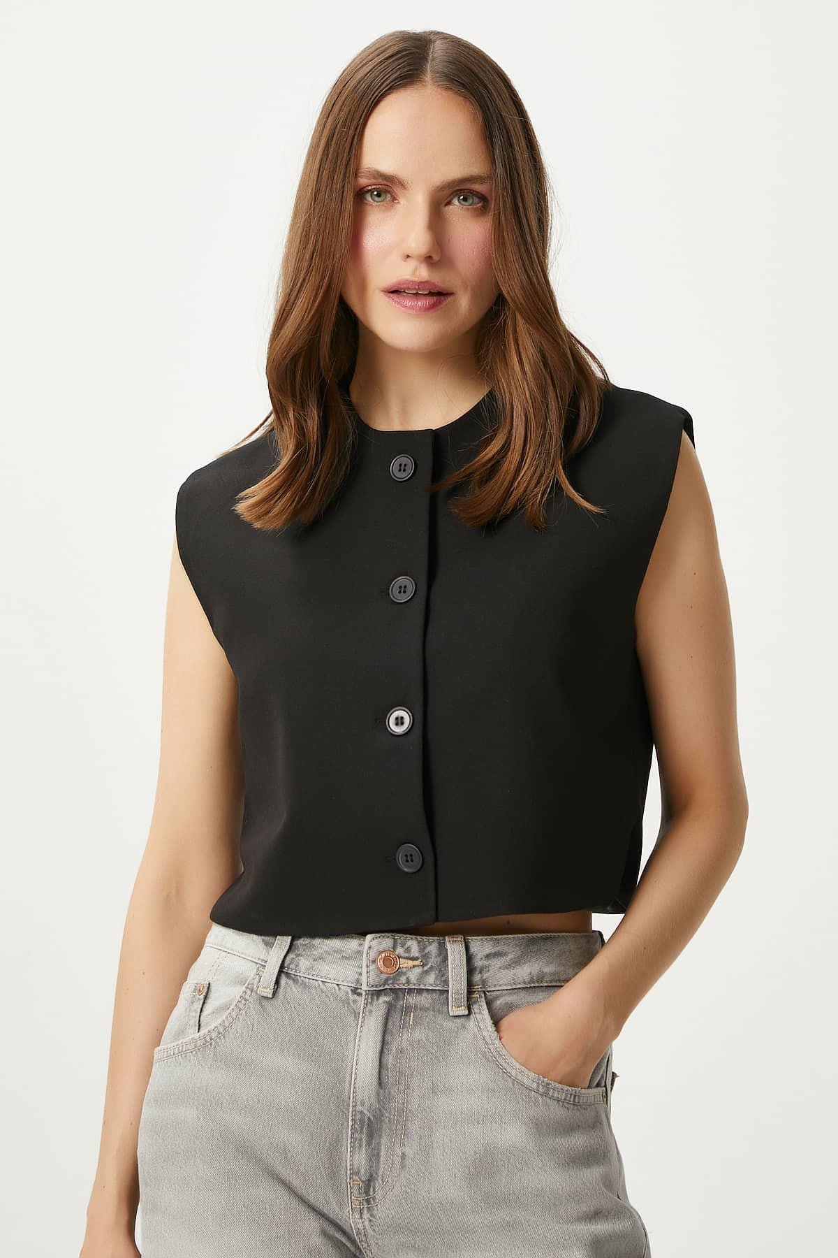 Kadın Power Siyah Astarlı Dokuma Yelek