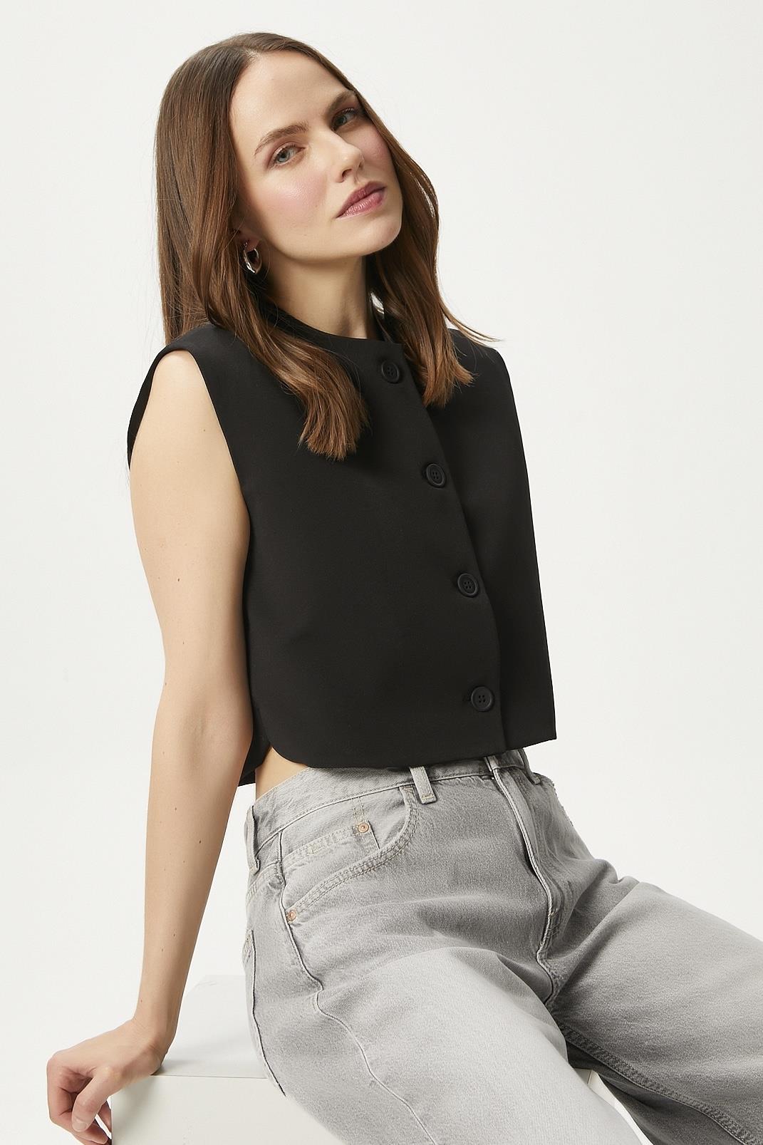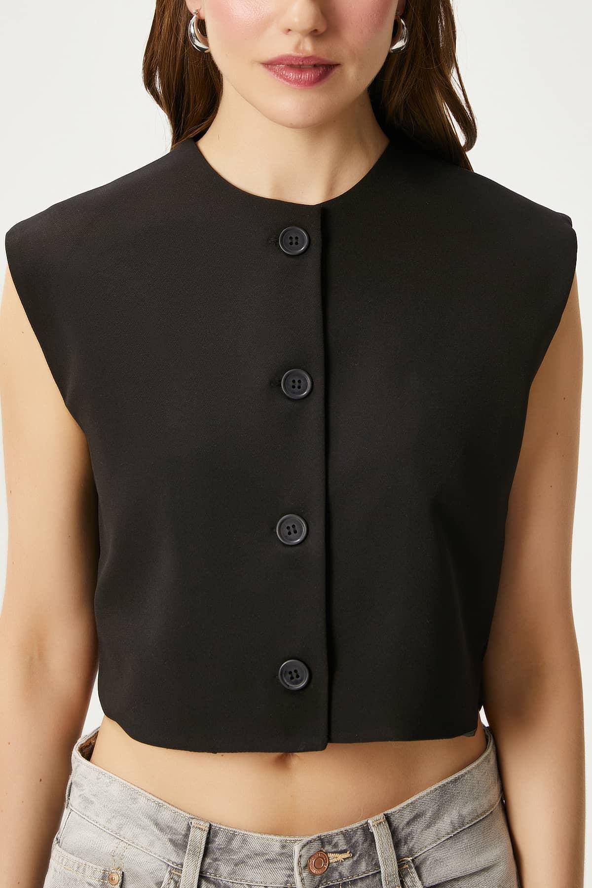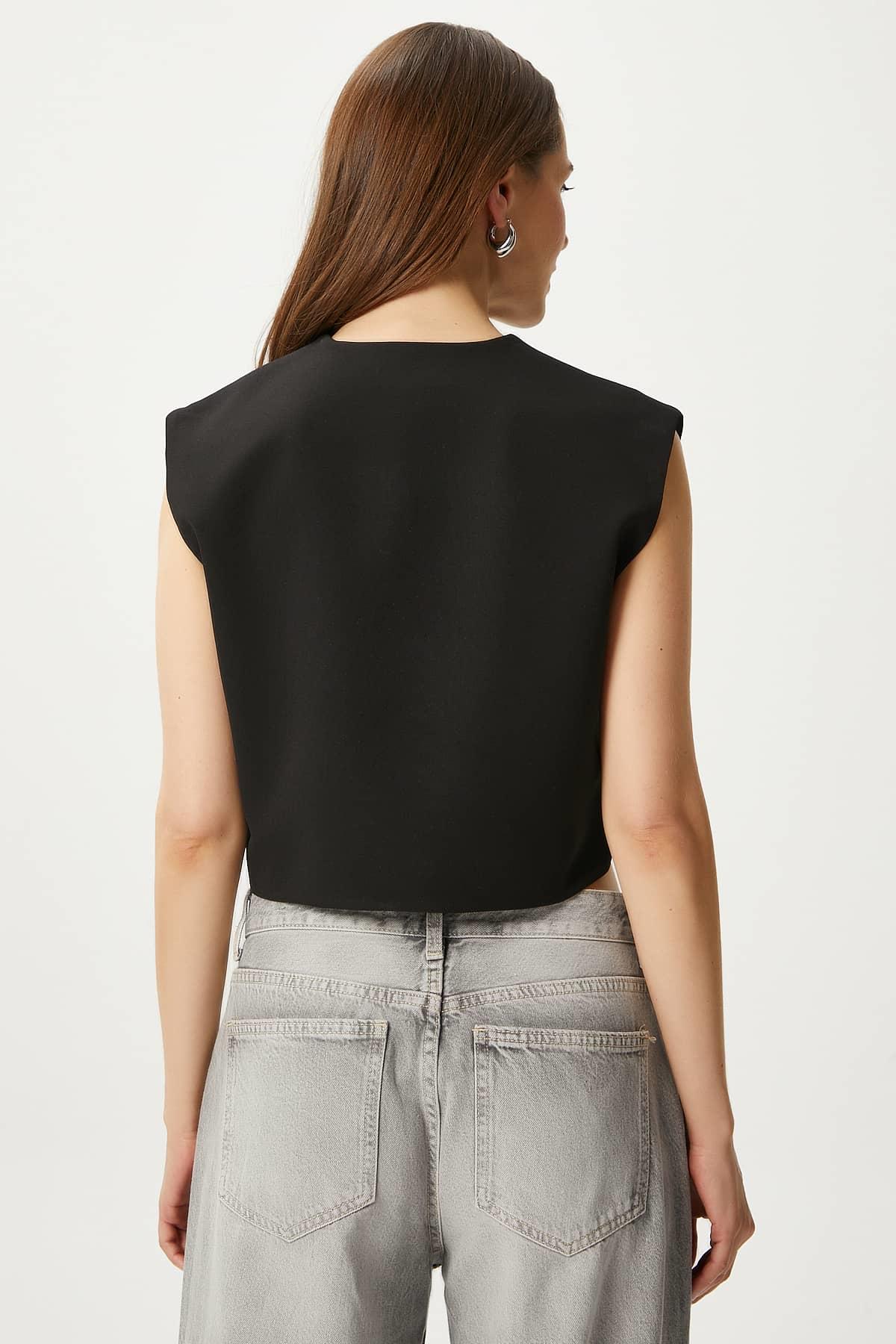 Kadın Power Siyah Astarlı Dokuma Yelek