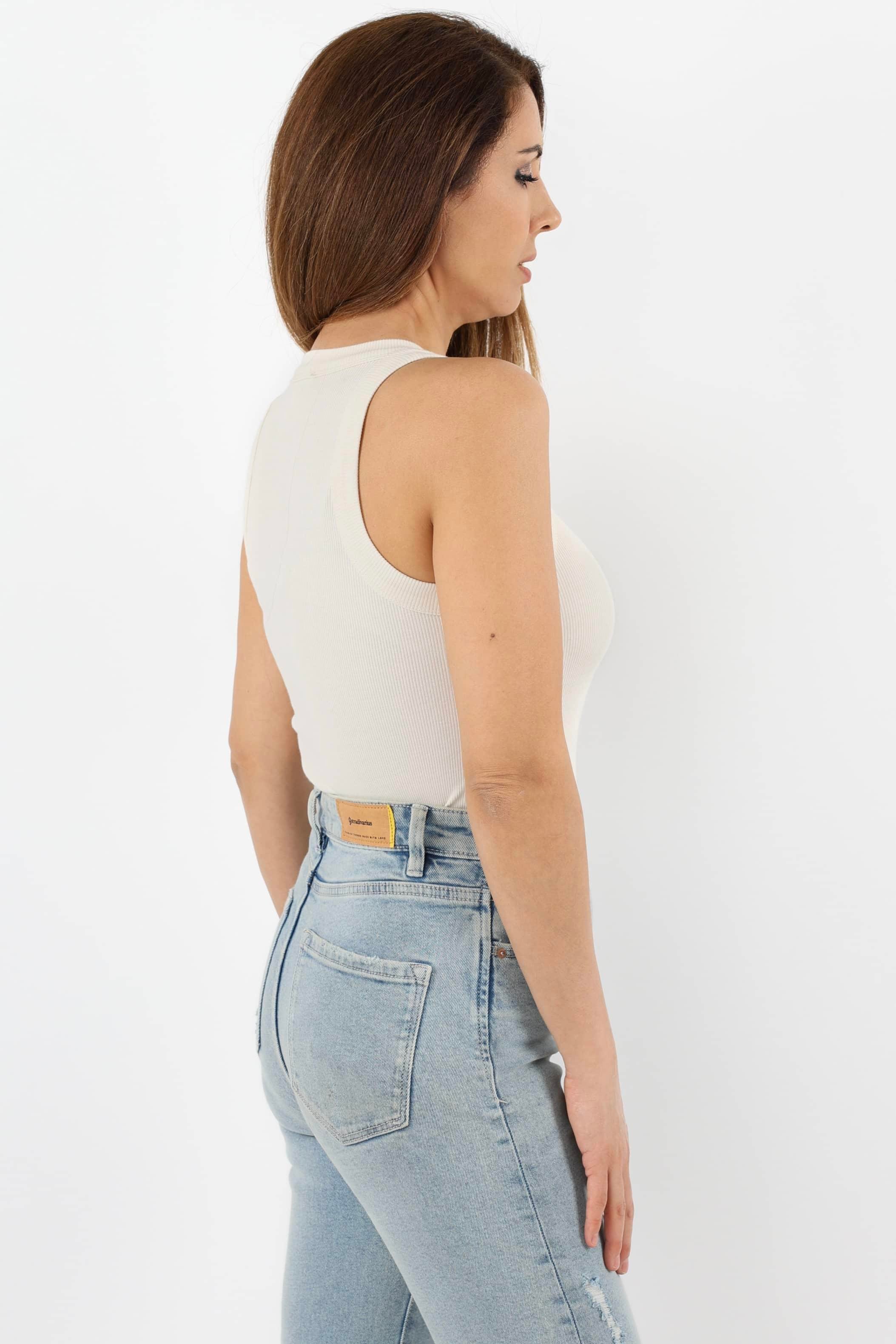 Kadın Premium Doku Krem Fitilli Pamuklu Atlet