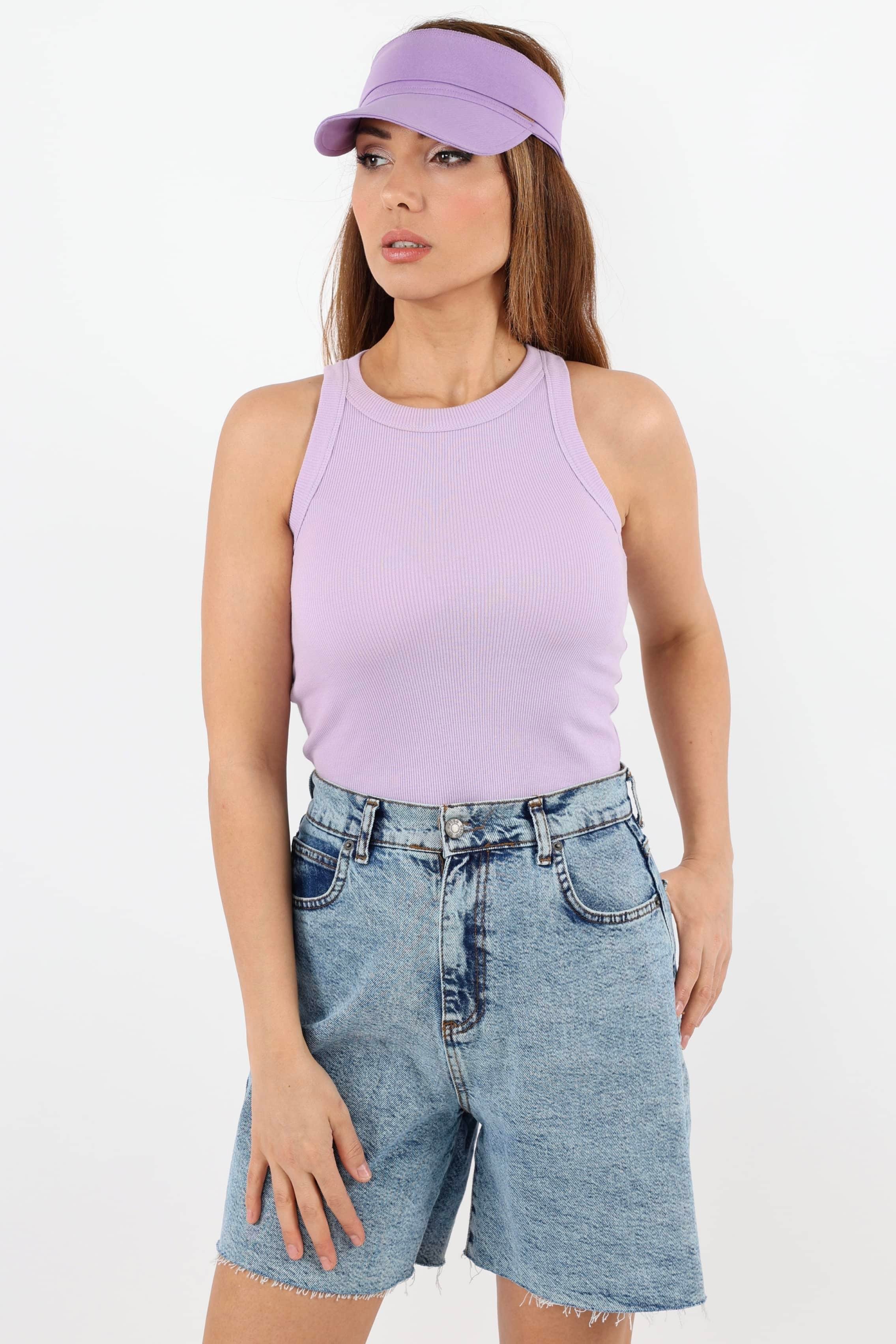 Kadın Premium Doku Lila Fitilli Pamuklu Atlet