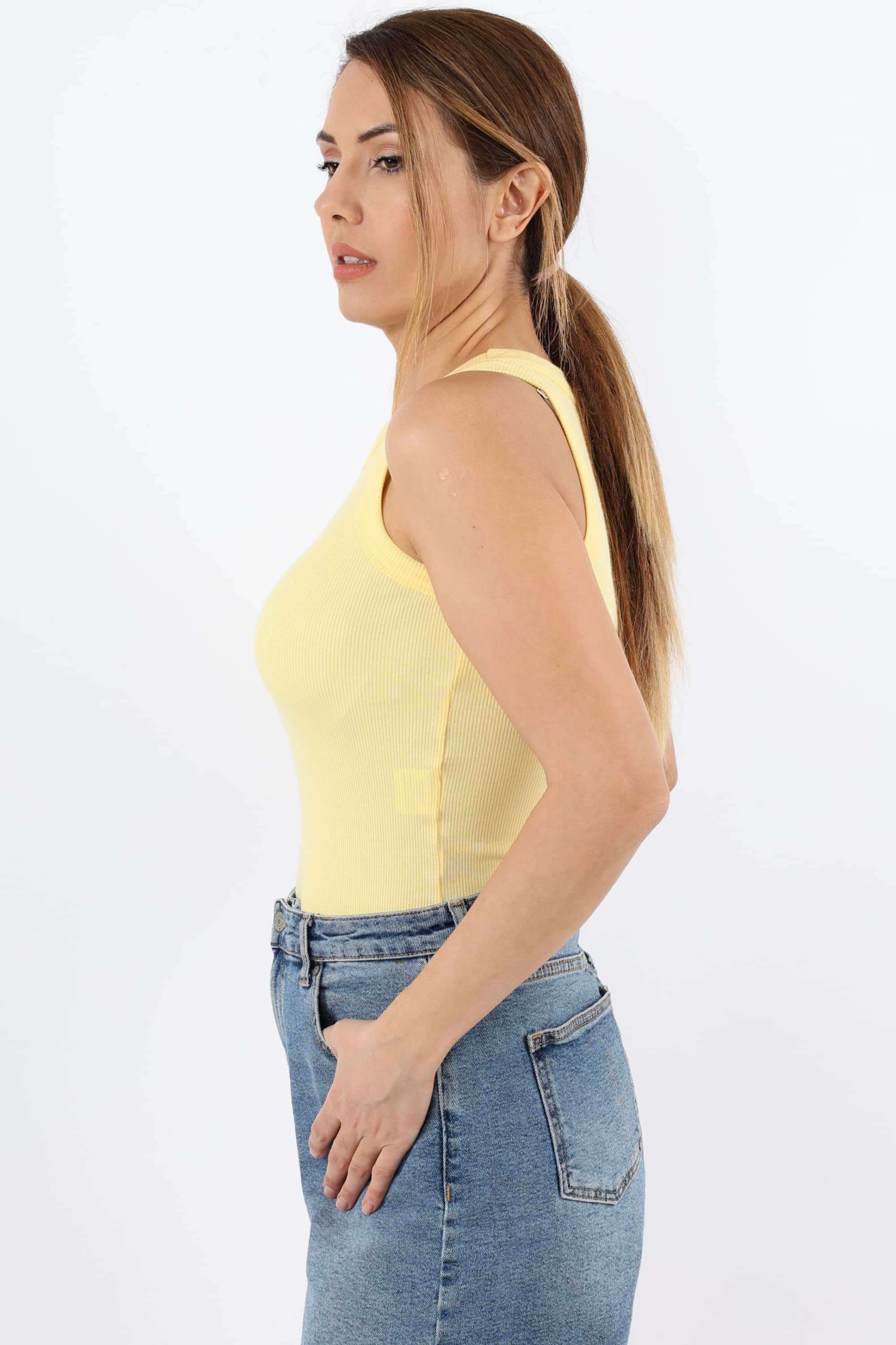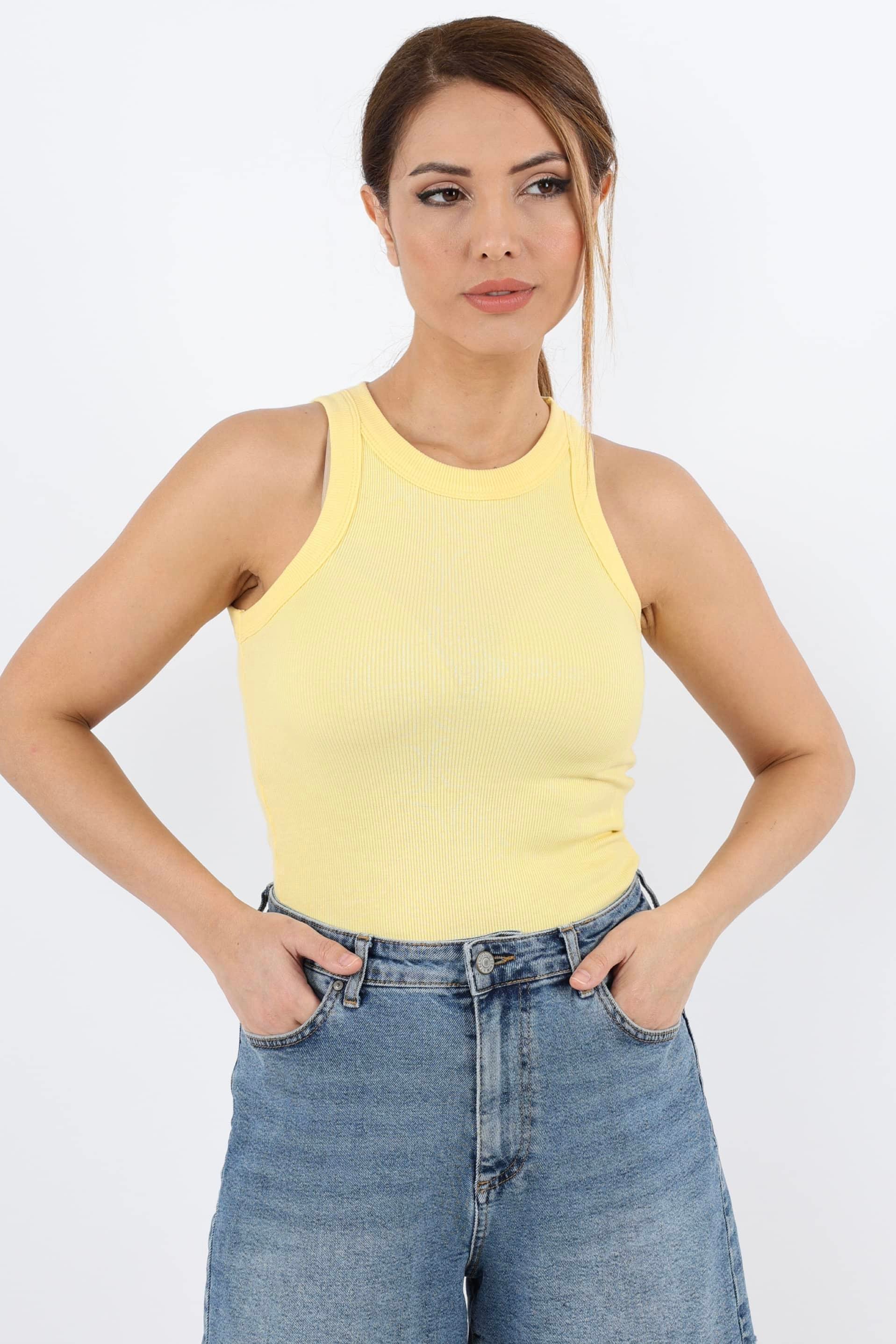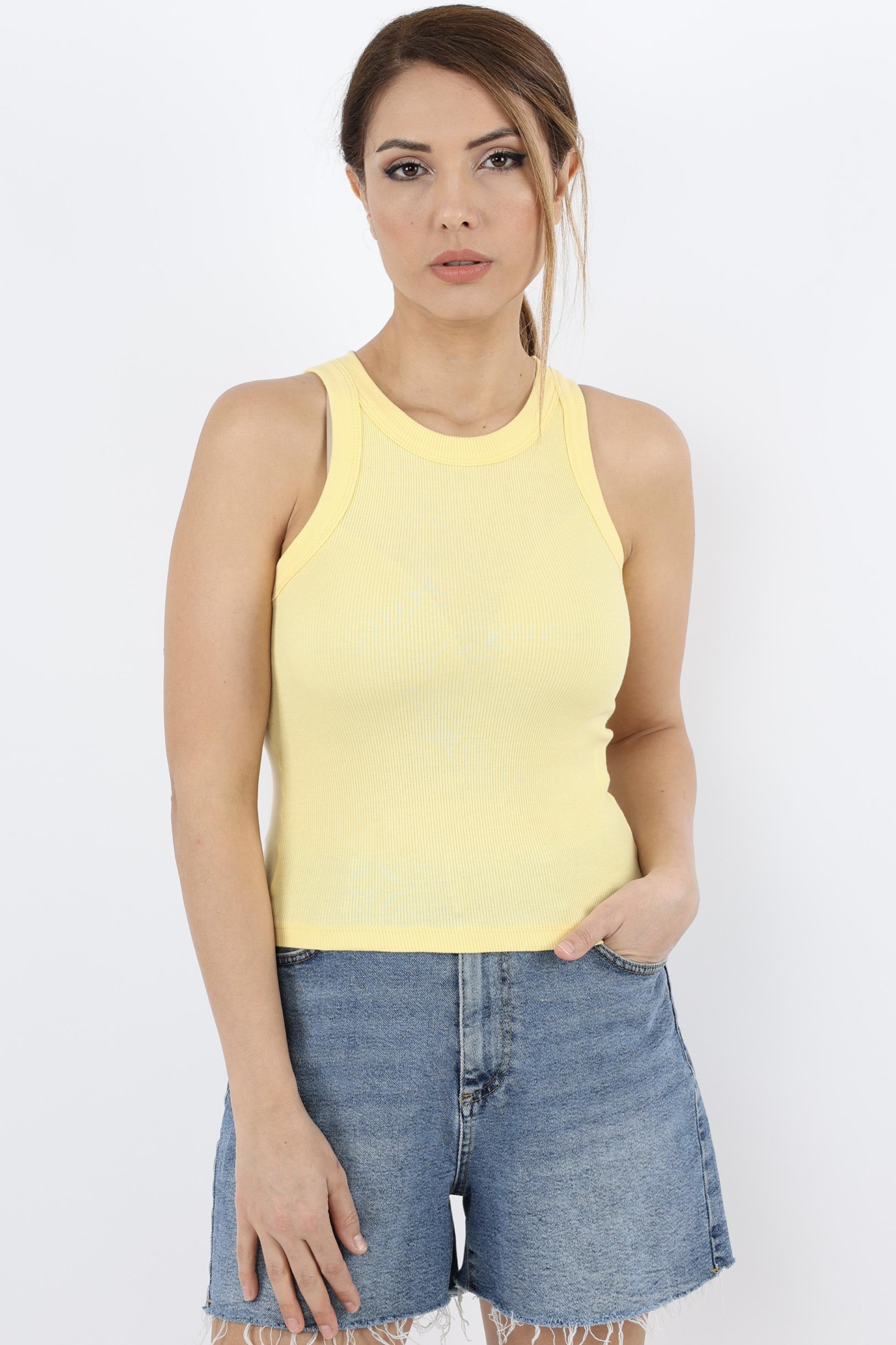 Ürün içeriği %95 pamuk %5 likraÜrün boyu 52 cmModel Boy 170 cm Kilo 56 kgÇekimde kullanılan ürün S bedenHalter Yaka, Fitilli, Likralı AtletStüdyo Çekimlerinde Renkler Işık Farklılıklarından Dolayı Değişiklik Gösterebilir.