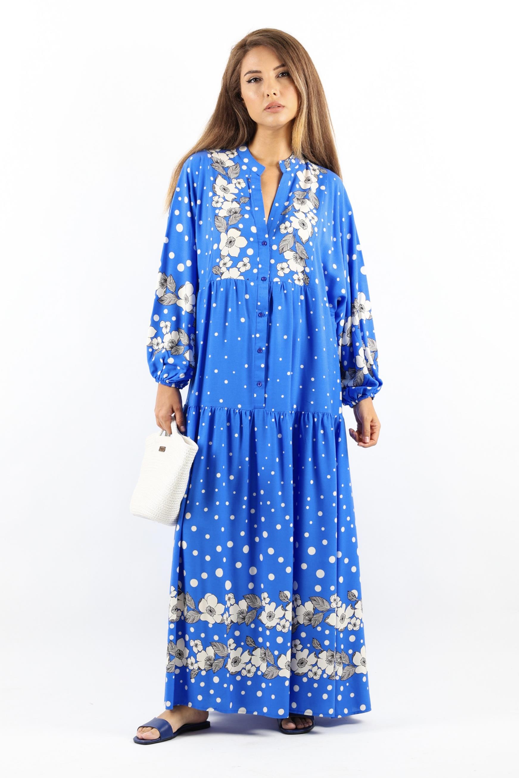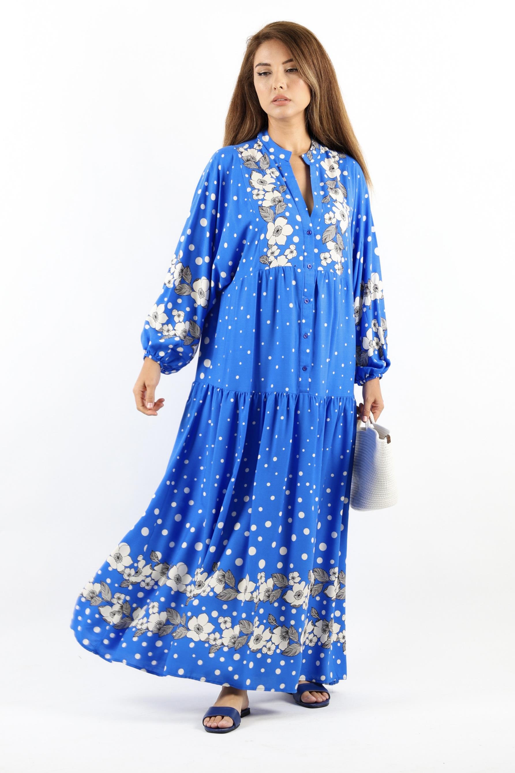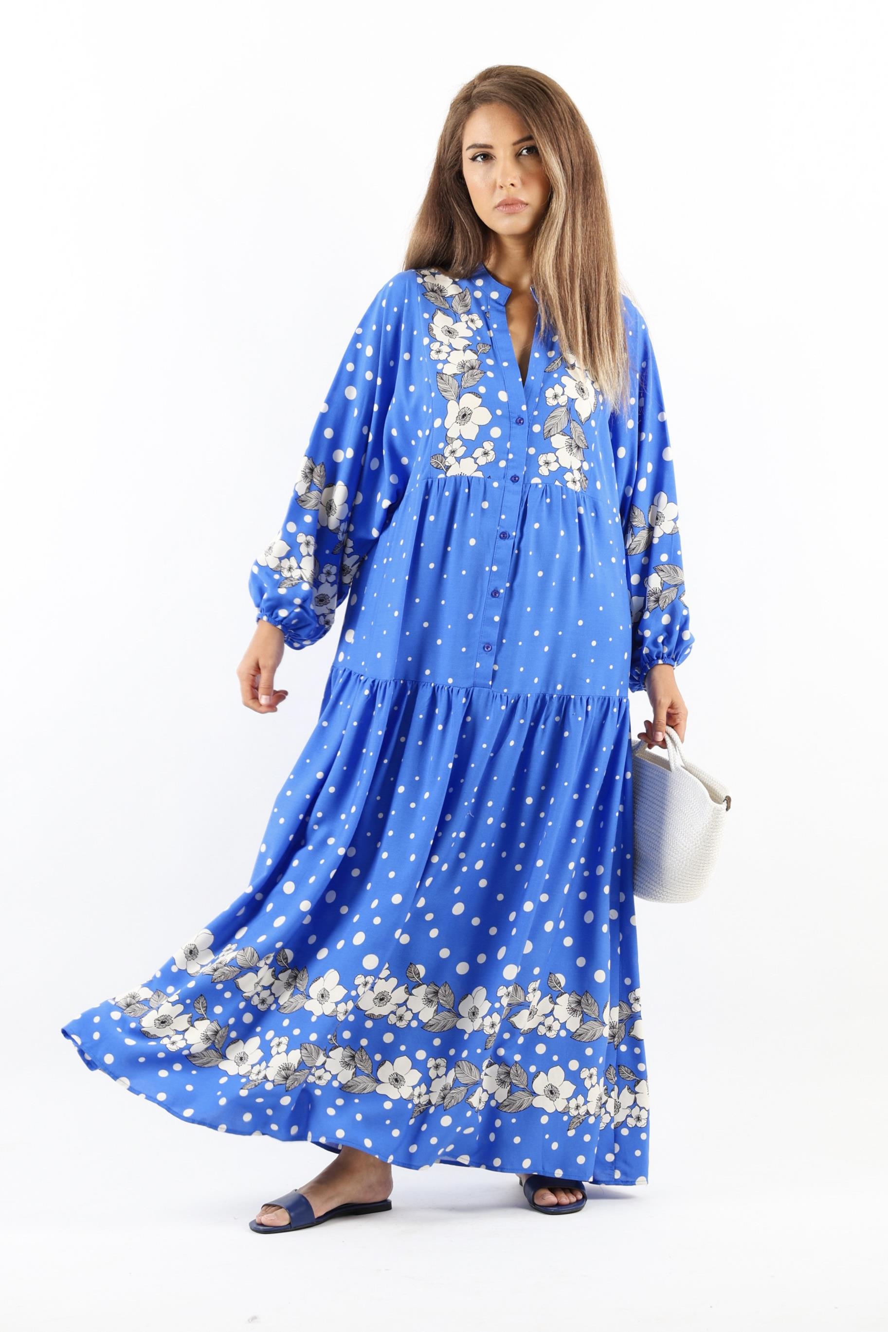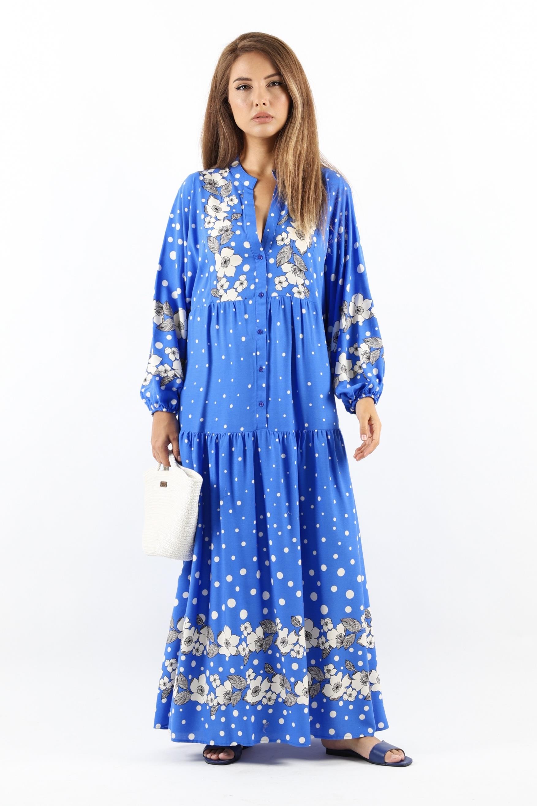 Kadın Prive Dreamy %100 Viskon Mavi Maksi Boy Uzun Yazlık Elbise