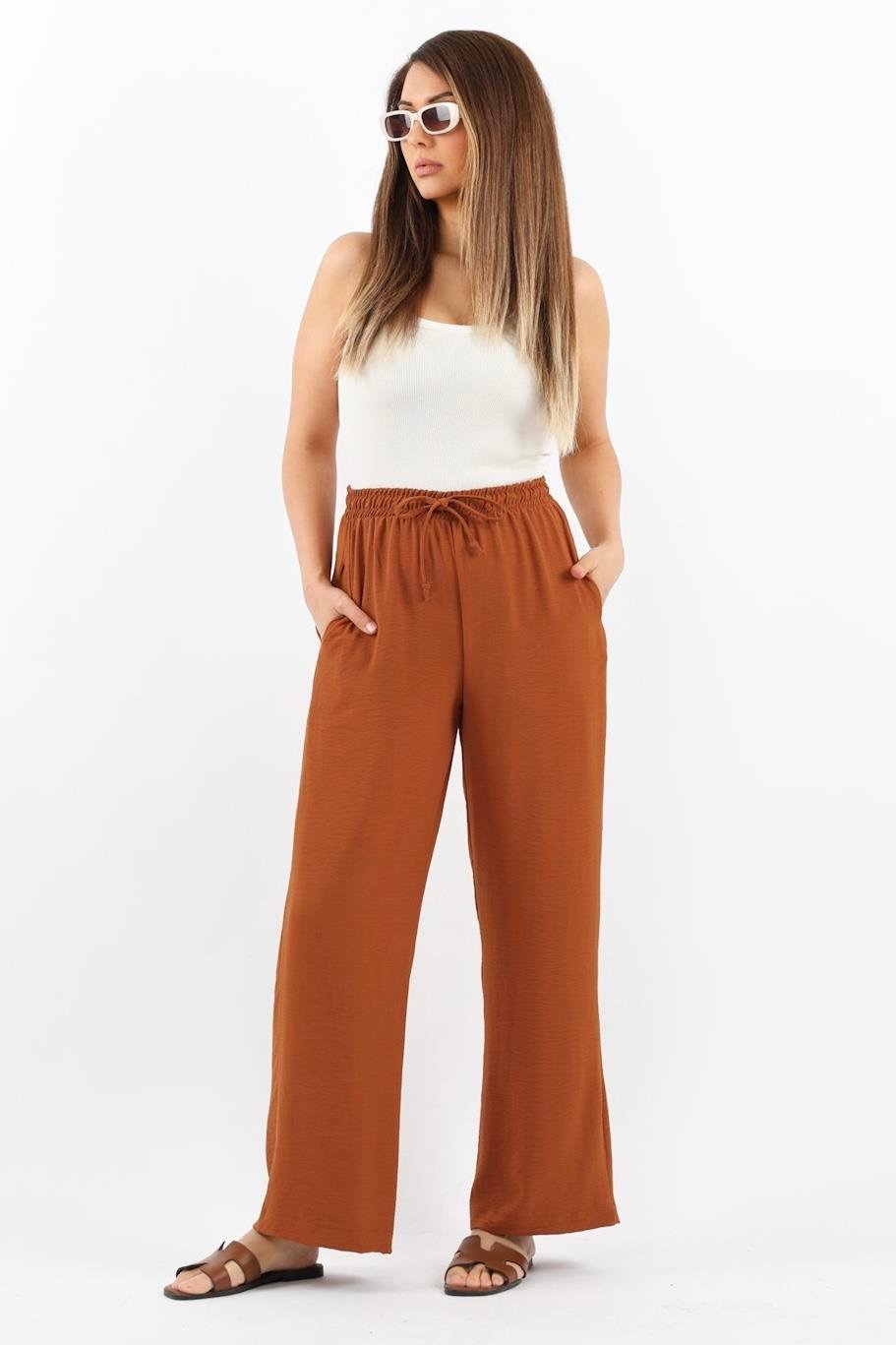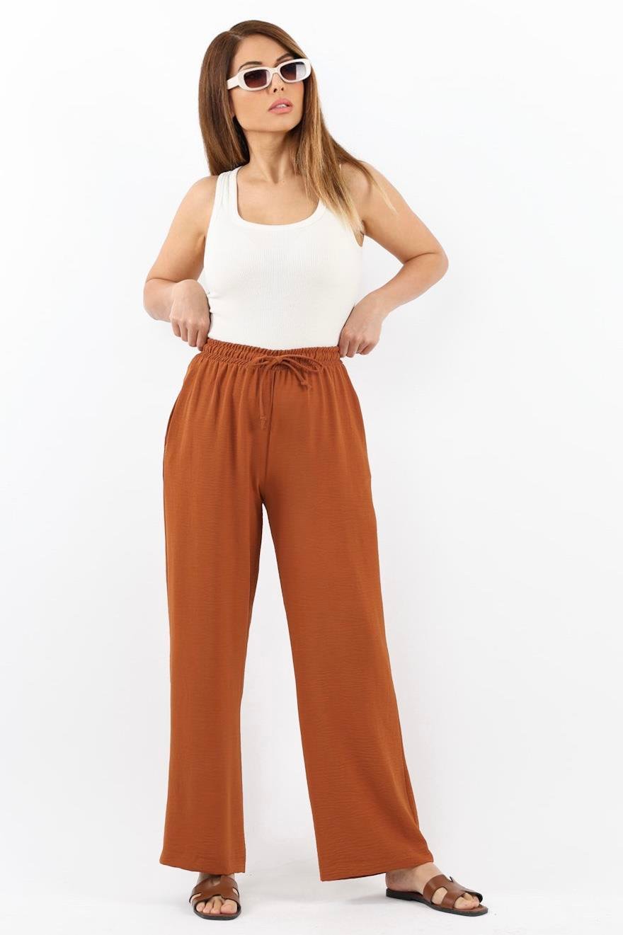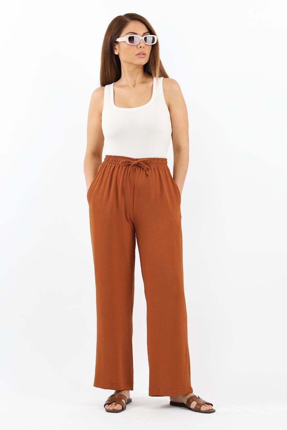 Kadın Relaxed Bel Lastikli Düz Kesim Cepli Ayrobin Pantolon