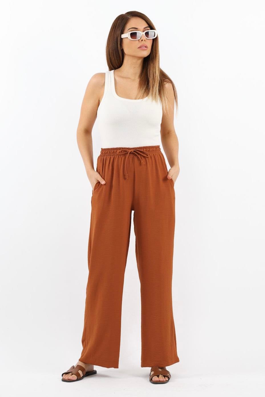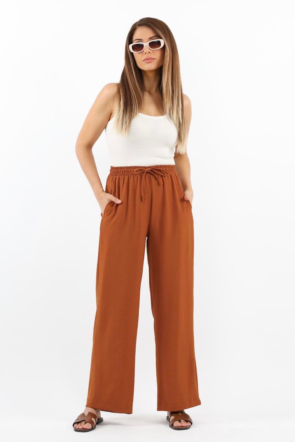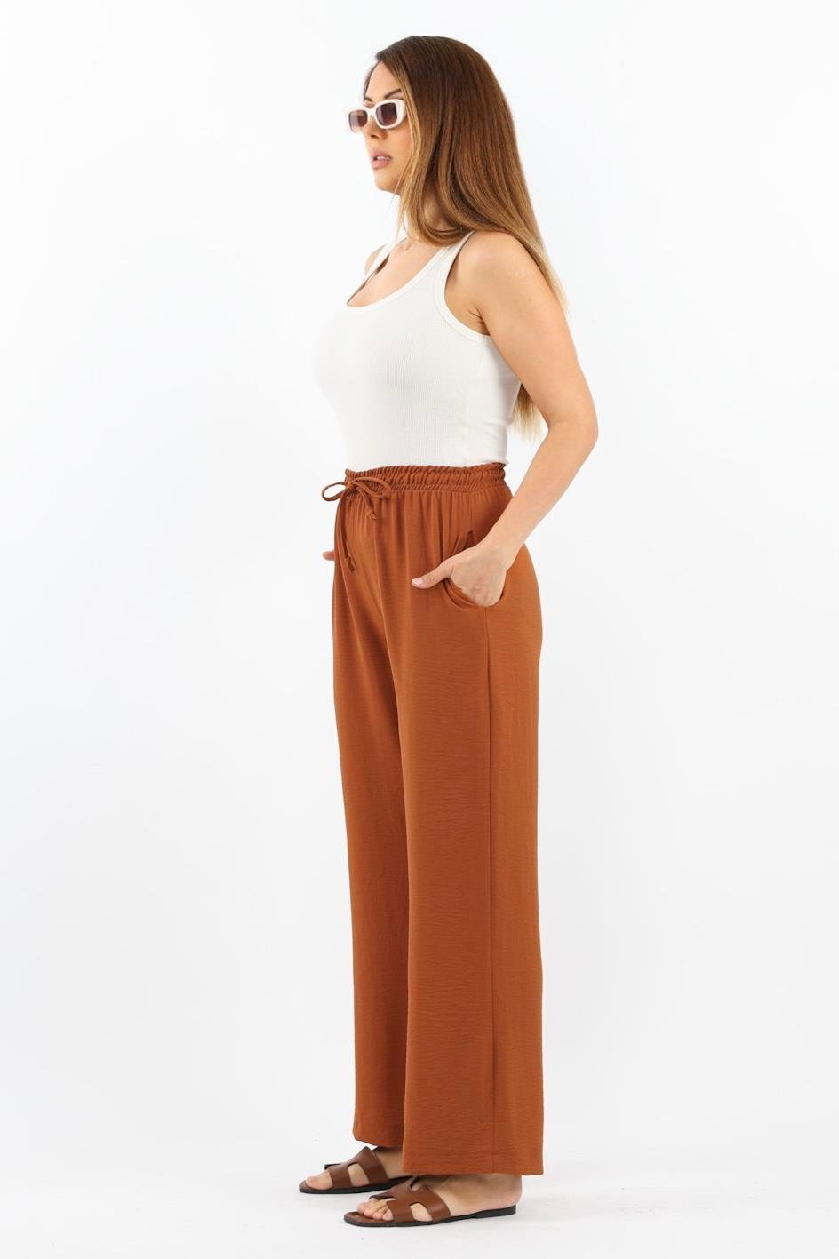 Kadın Relaxed Bel Lastikli Düz Kesim Cepli Ayrobin Pantolon