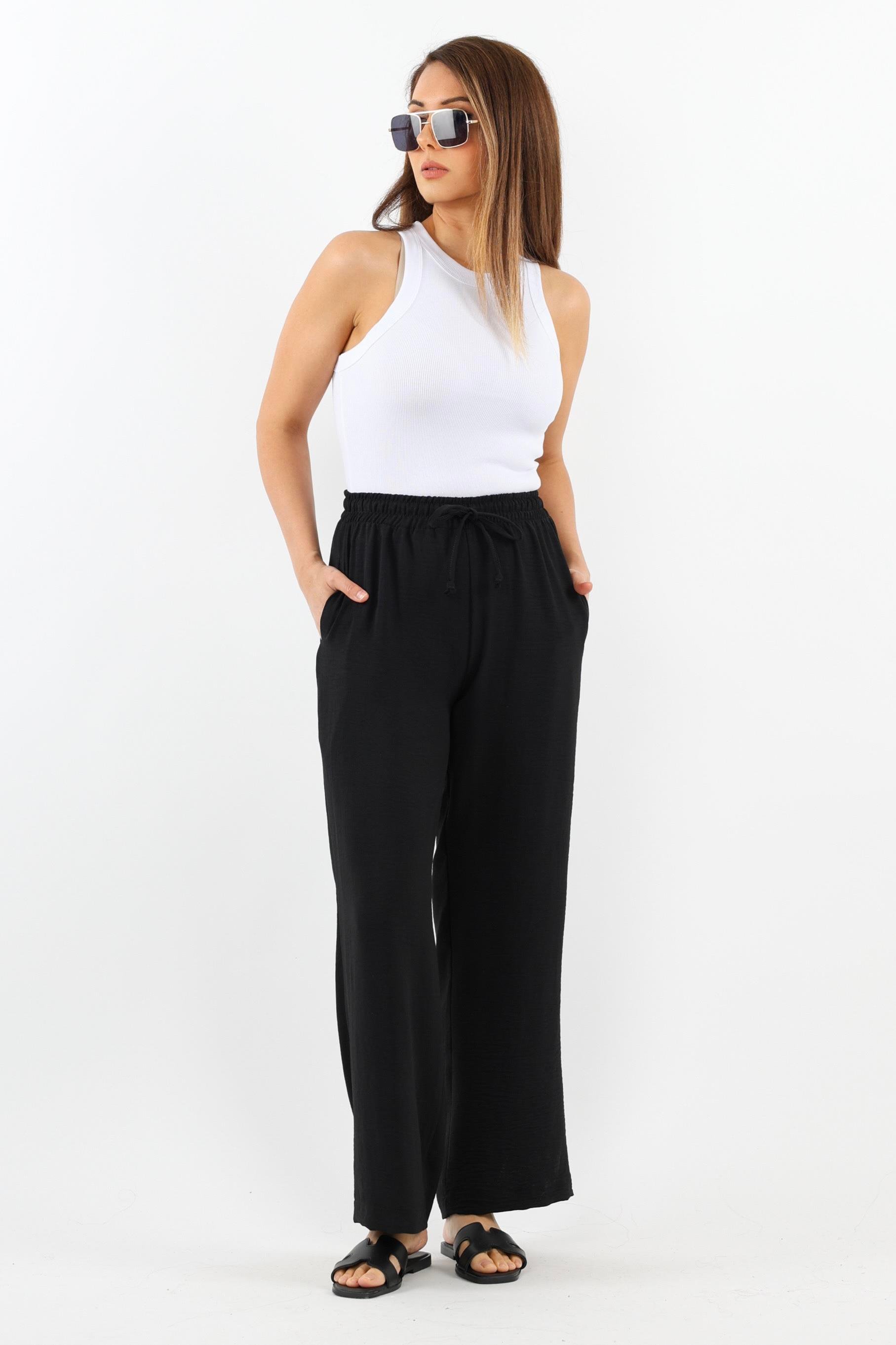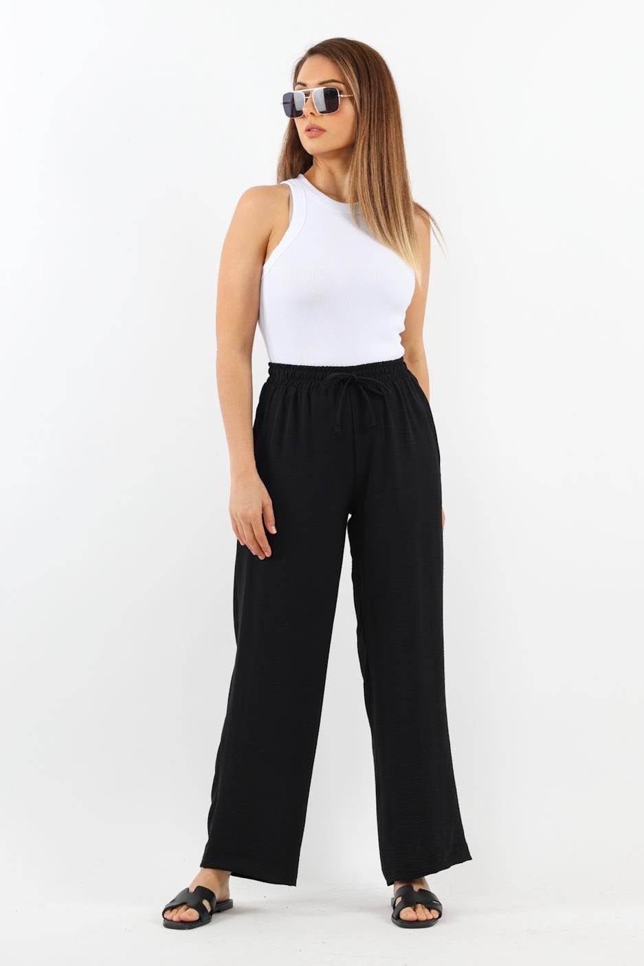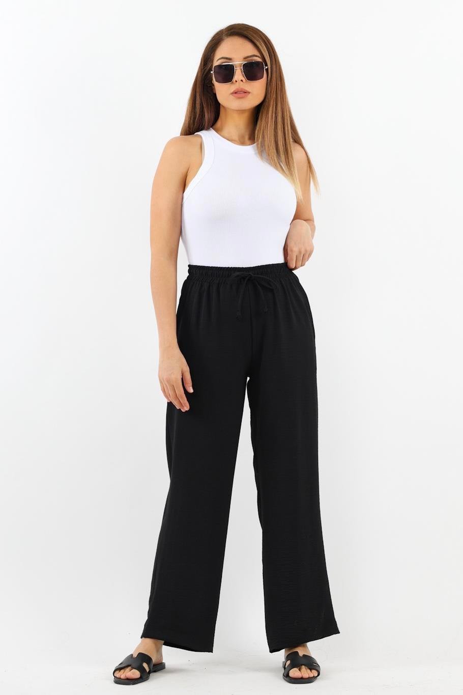 Kadın Relaxed Siyah Bel Lastikli Düz Kesim Cepli Ayrobin Pantolon
