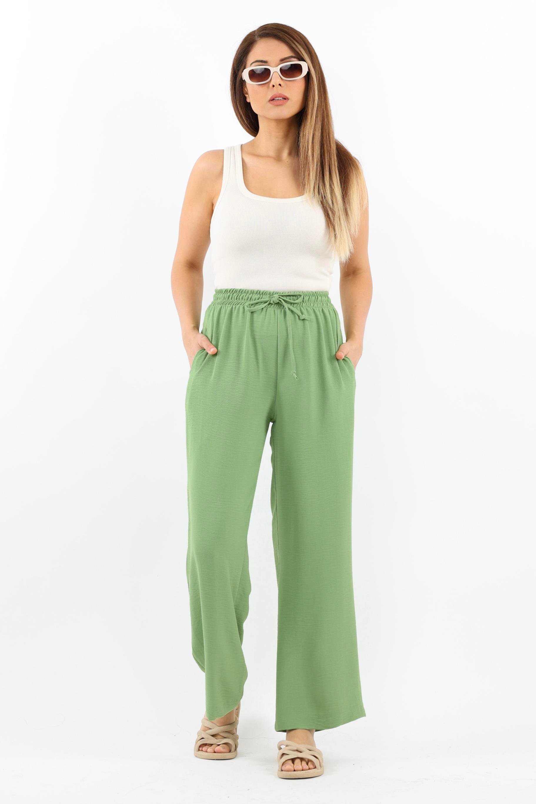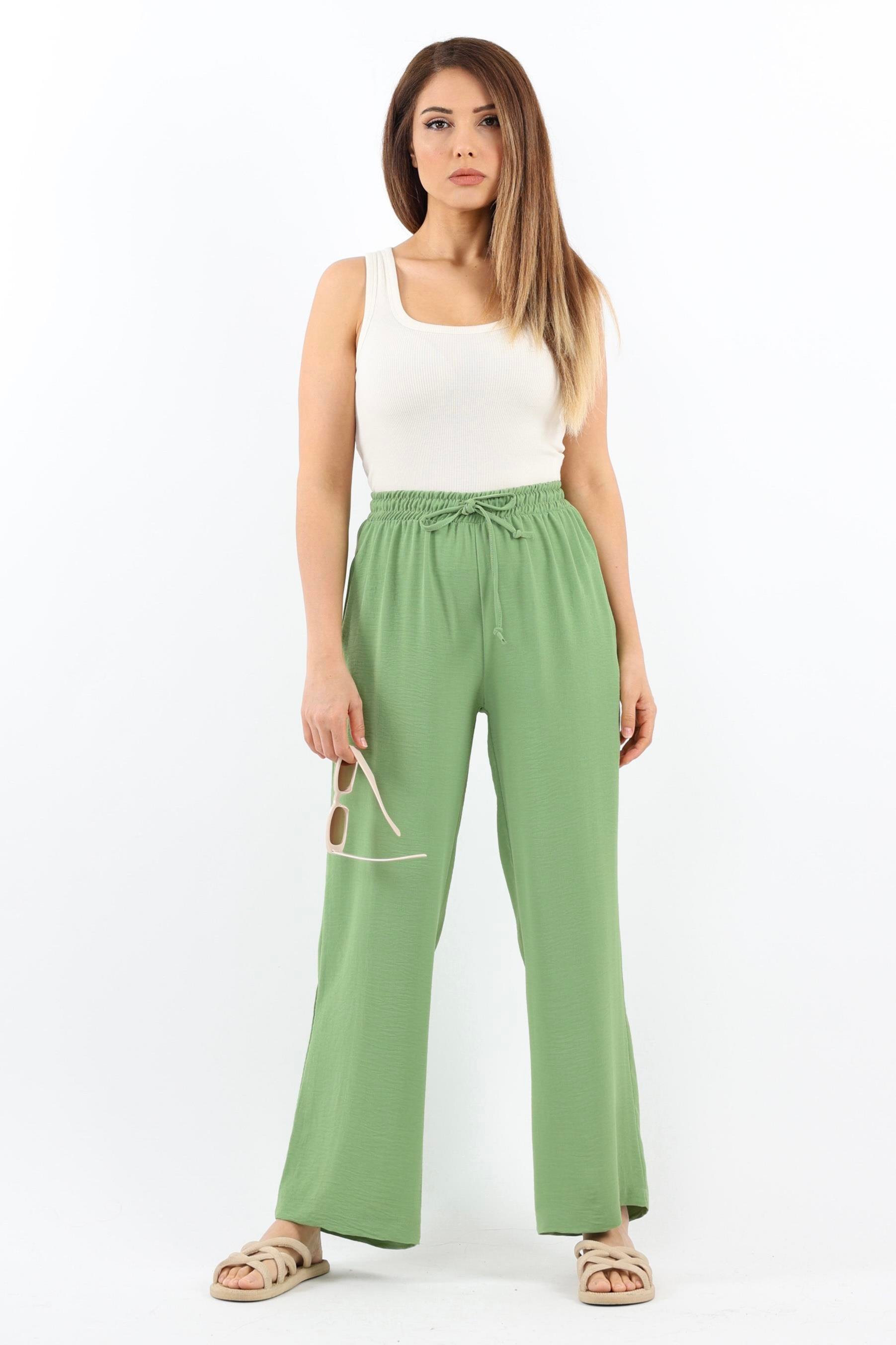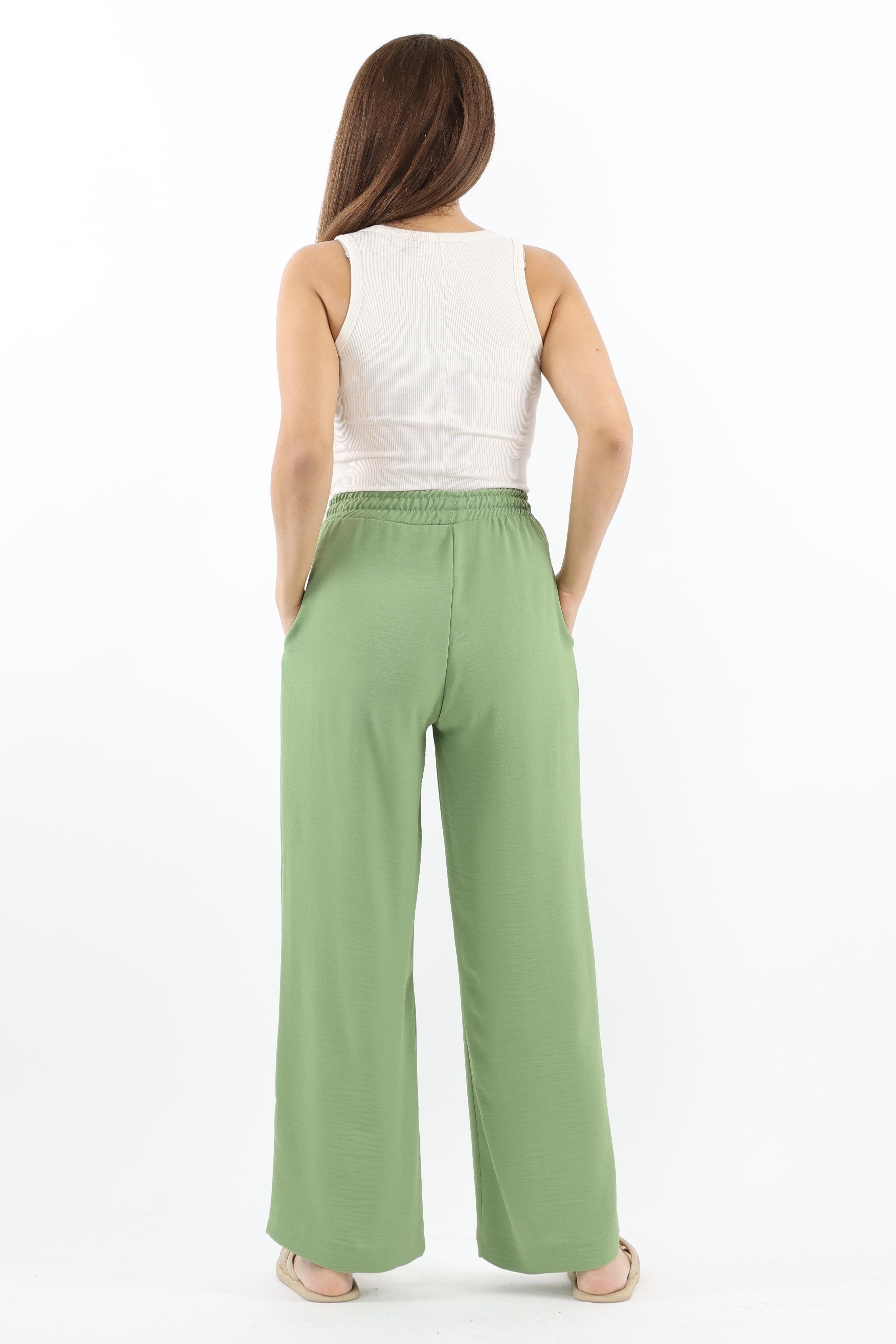 Kadın Relaxed Bel Lastikli Düz Kesim Cepli Ayrobin Pantolon