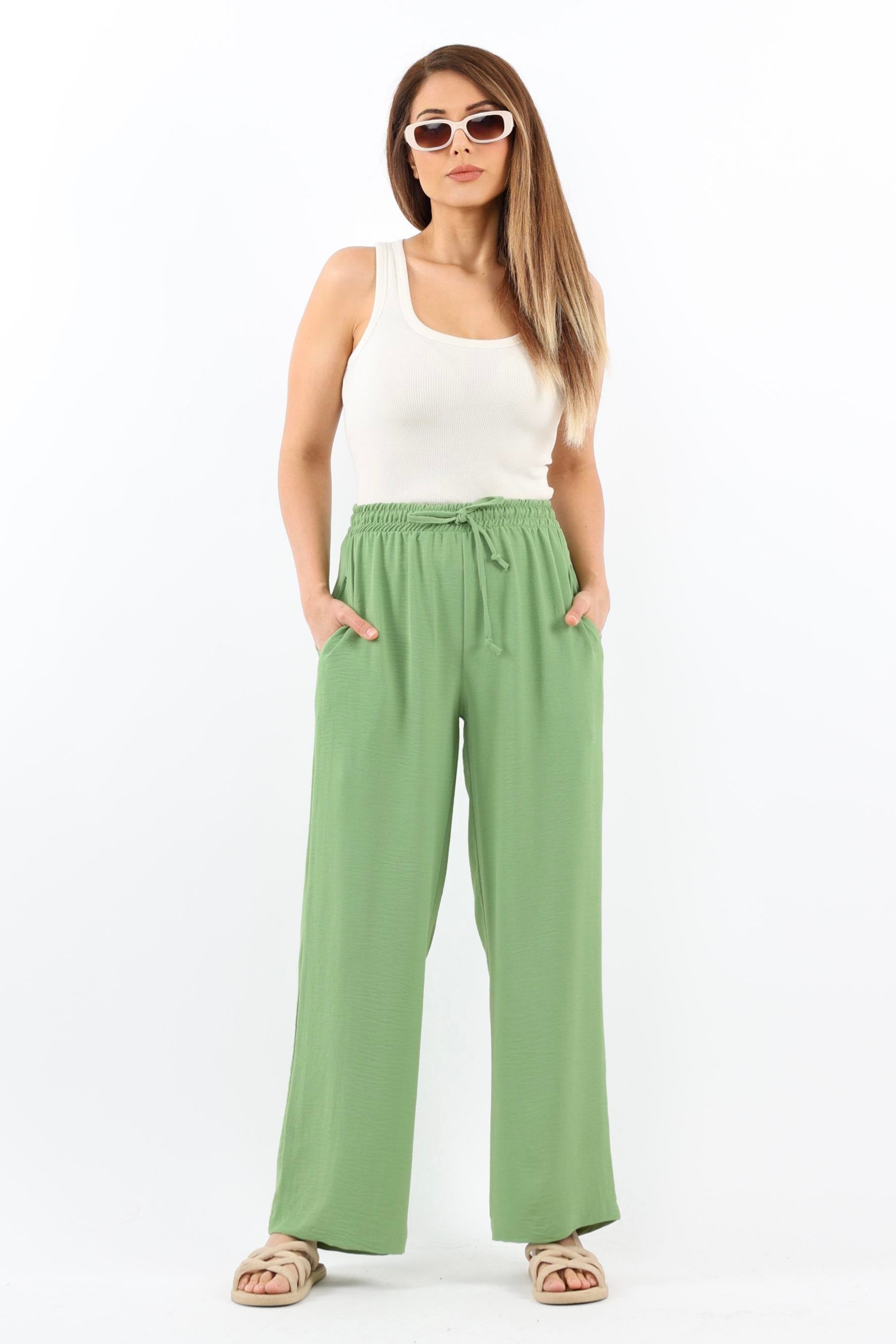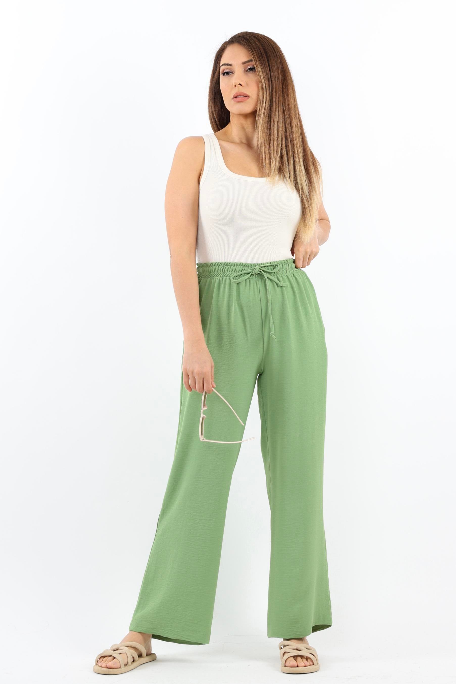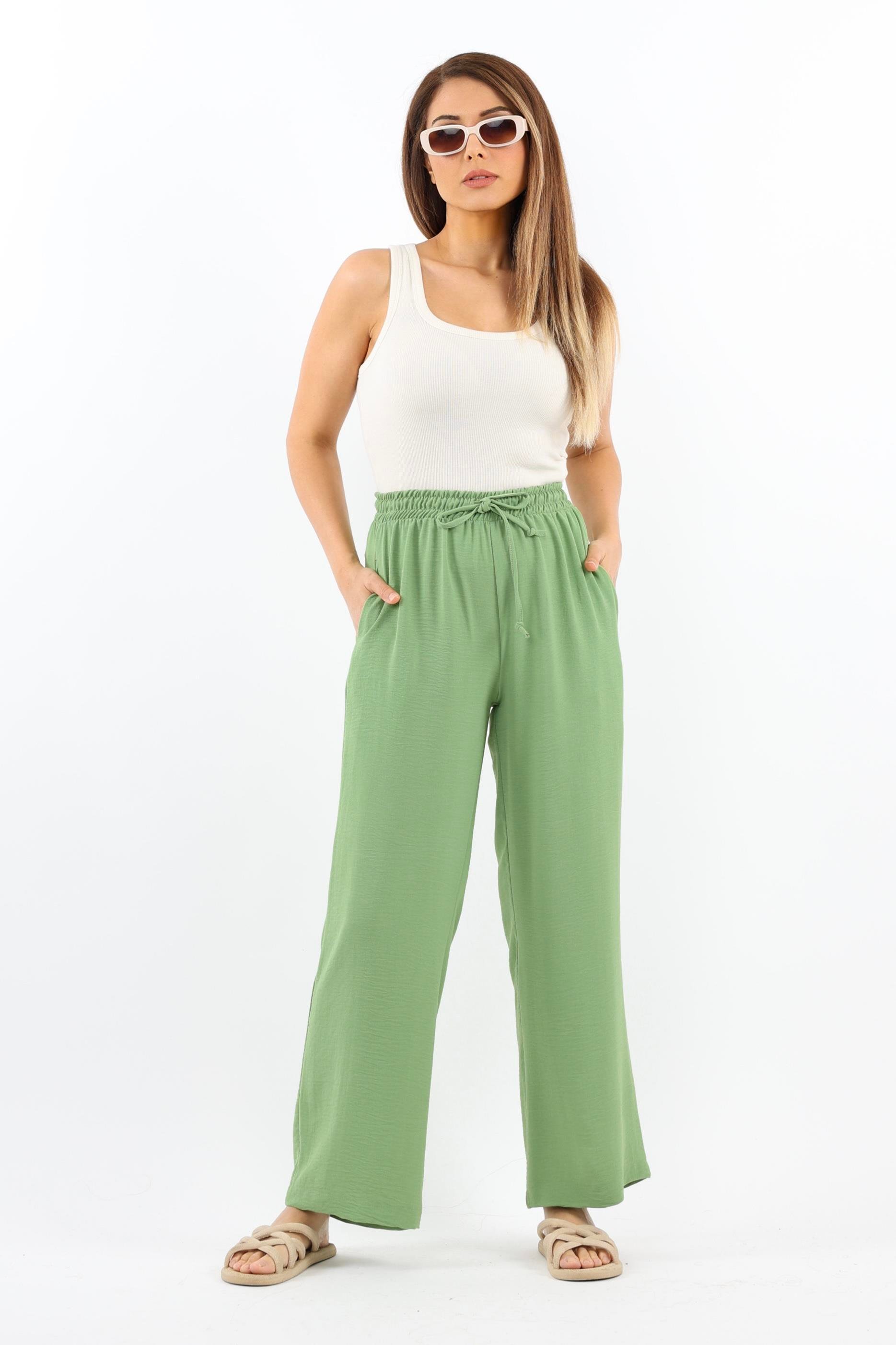 Kadın Relaxed Bel Lastikli Düz Kesim Cepli Ayrobin Pantolon