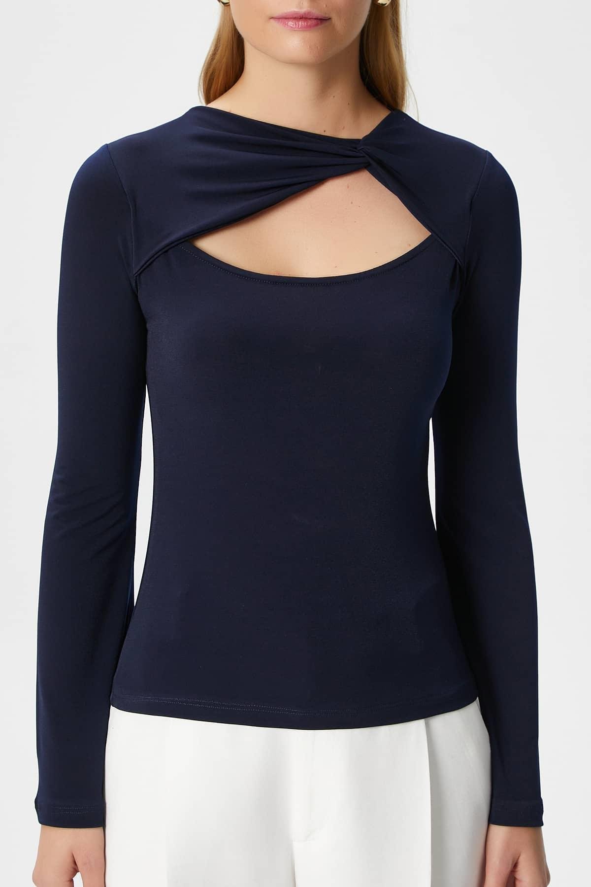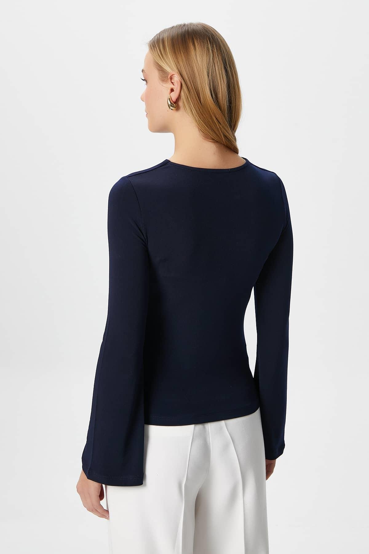 - Lacivert rengiyle dikkat çeken bu kadın bluz, şıklığınızı ön plana çıkarır.
