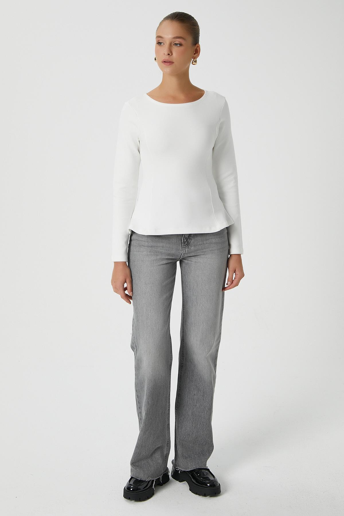 Kadın Runa Premium Ekru Peplum Bluz: İçerik: %80 cotton - %15 Polyester / %5 Elasthan . Ölçüler: S: Boy 55, Göğüs:70, Kol: 60 , M: Boy 56, Göğüs:74, Kol: 60 , L: Boy 57, Göğüs:78, Kol: 60 .