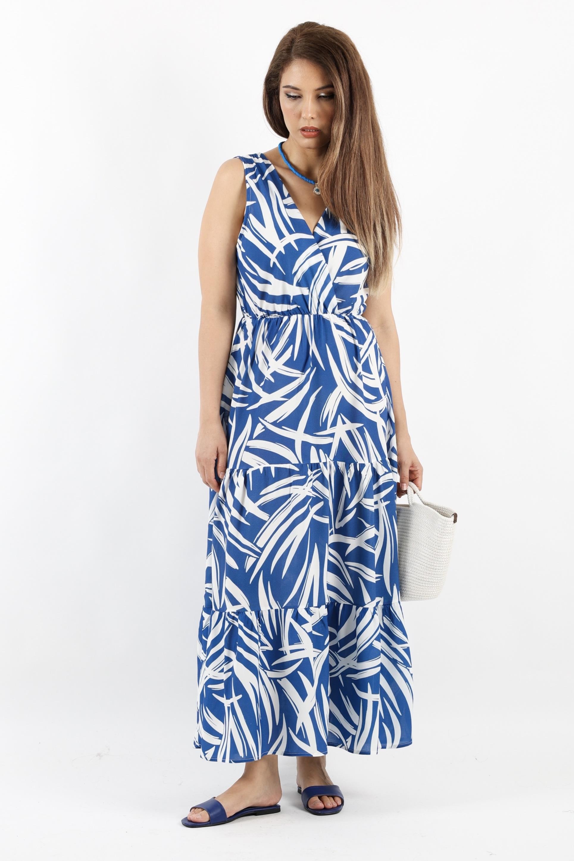 Kadın Santorini Bel Lastikli Mavi Viskon Elbise