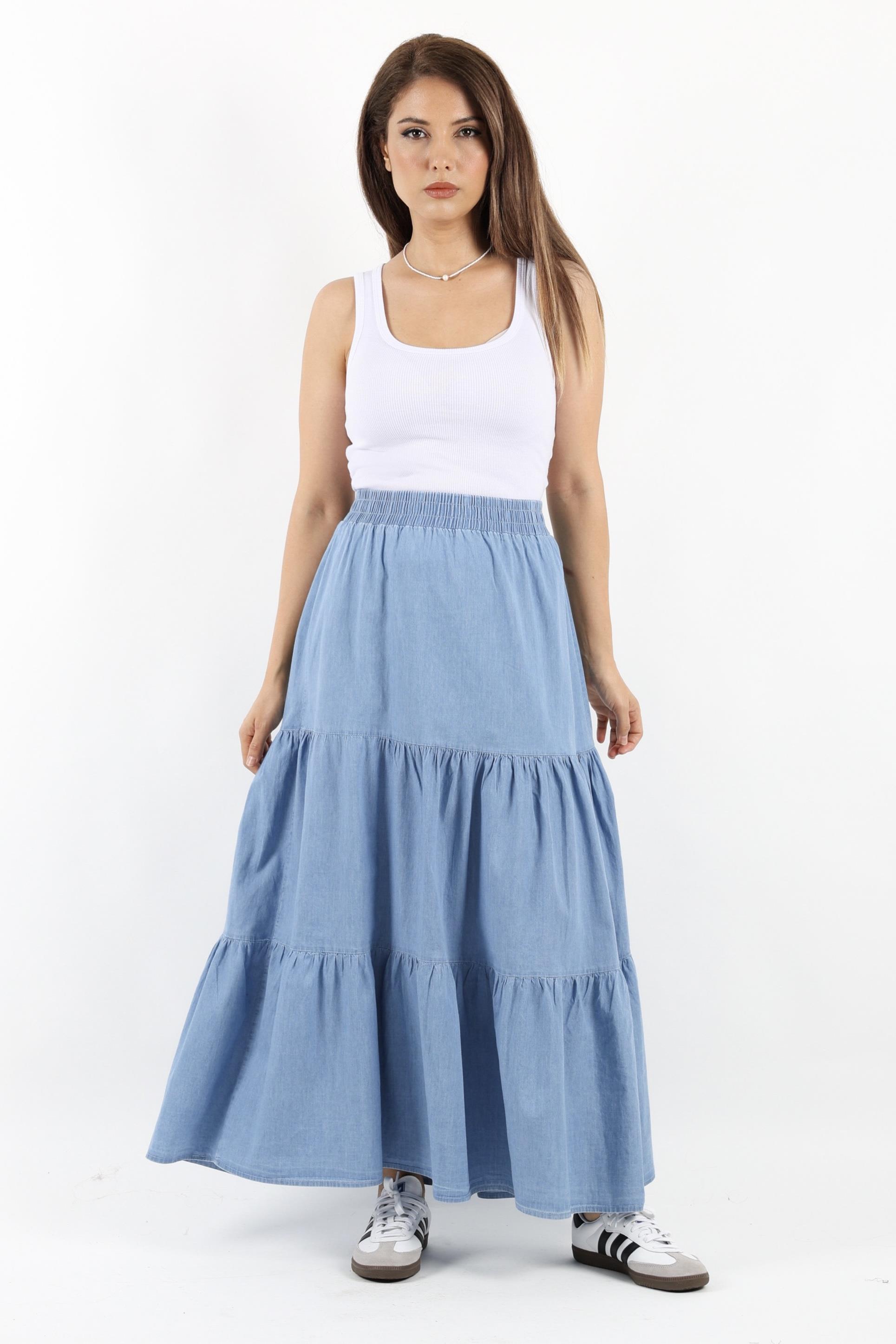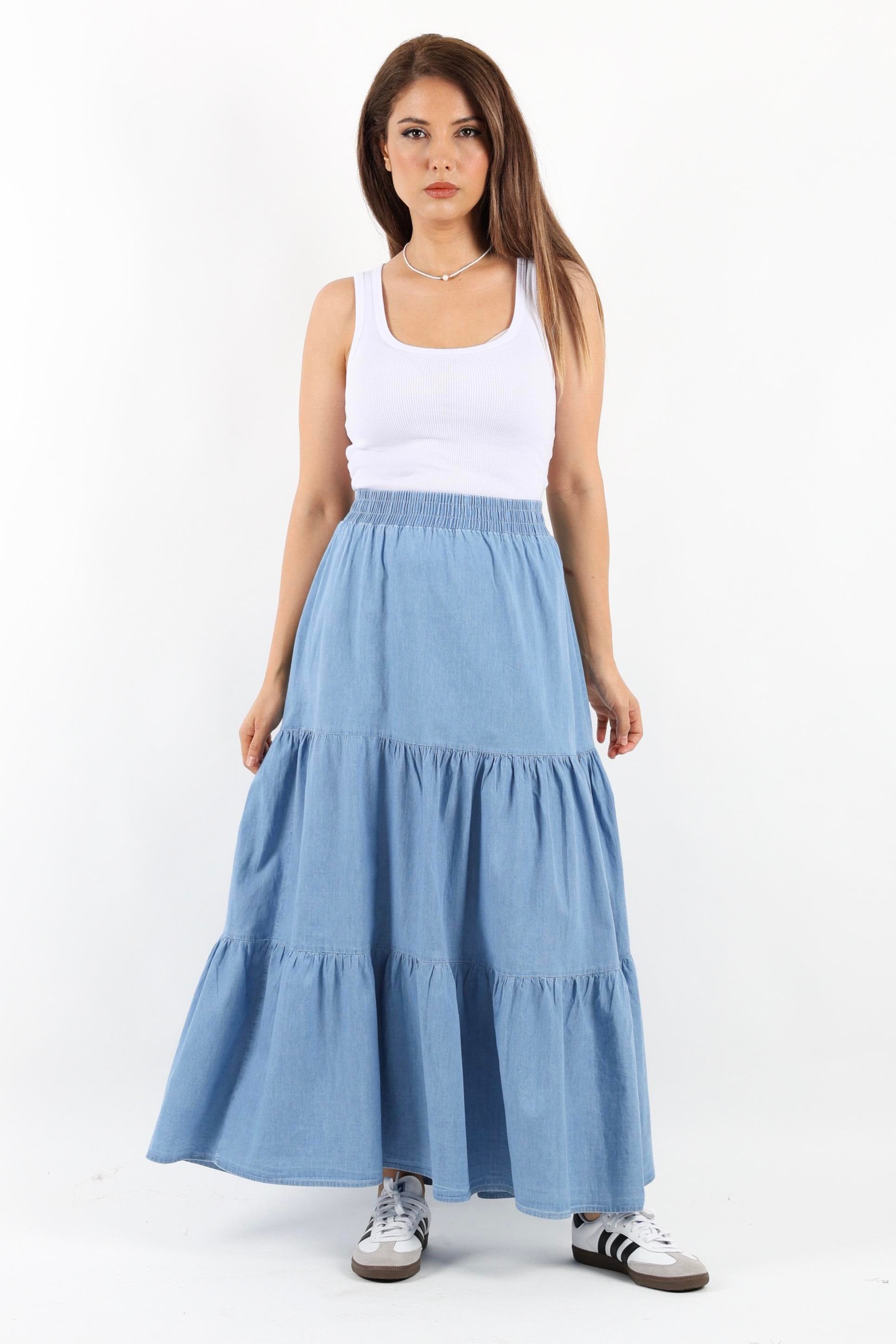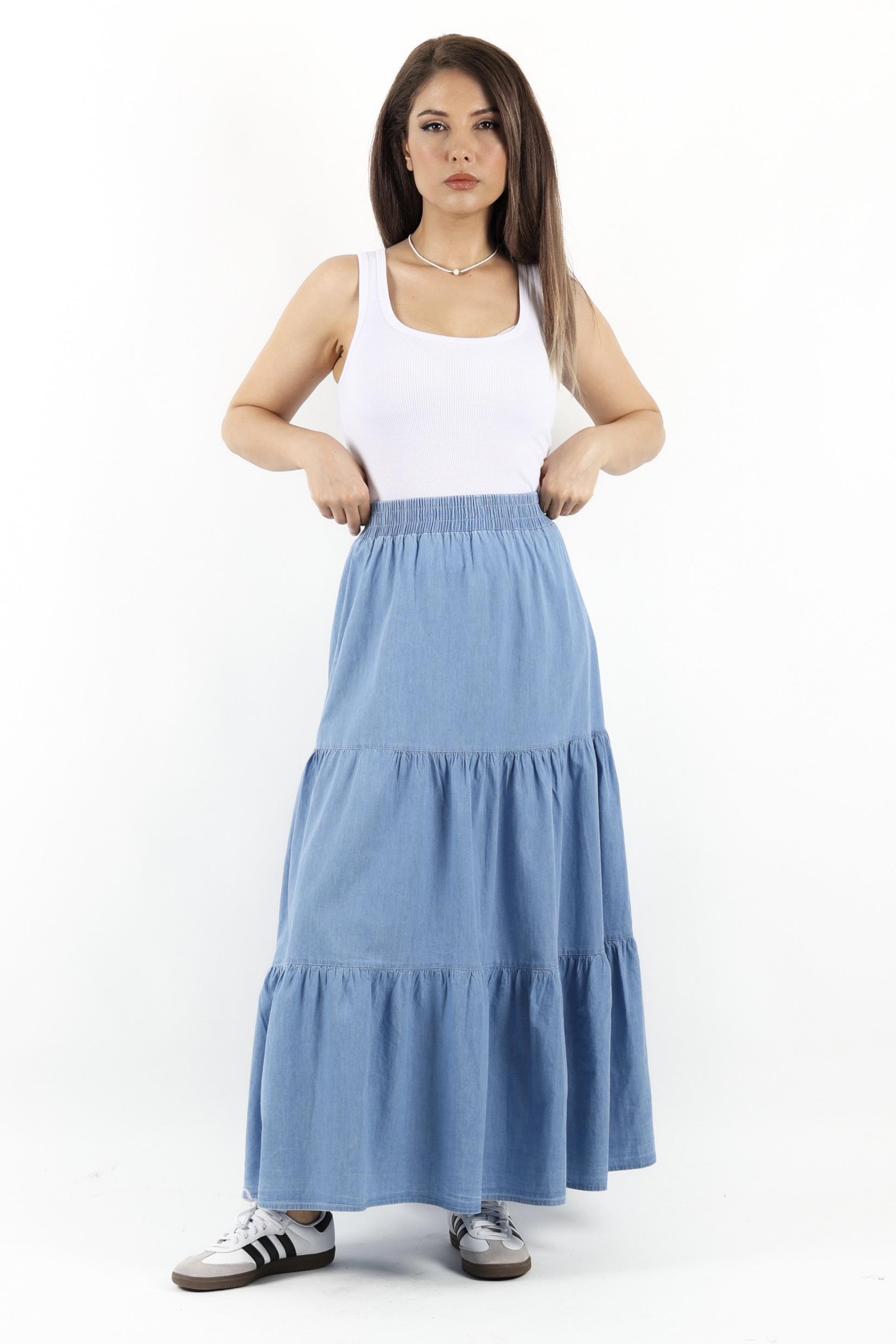 Kadın Sporty Açık Mavi Uzun Yumuşak Jean Etek
