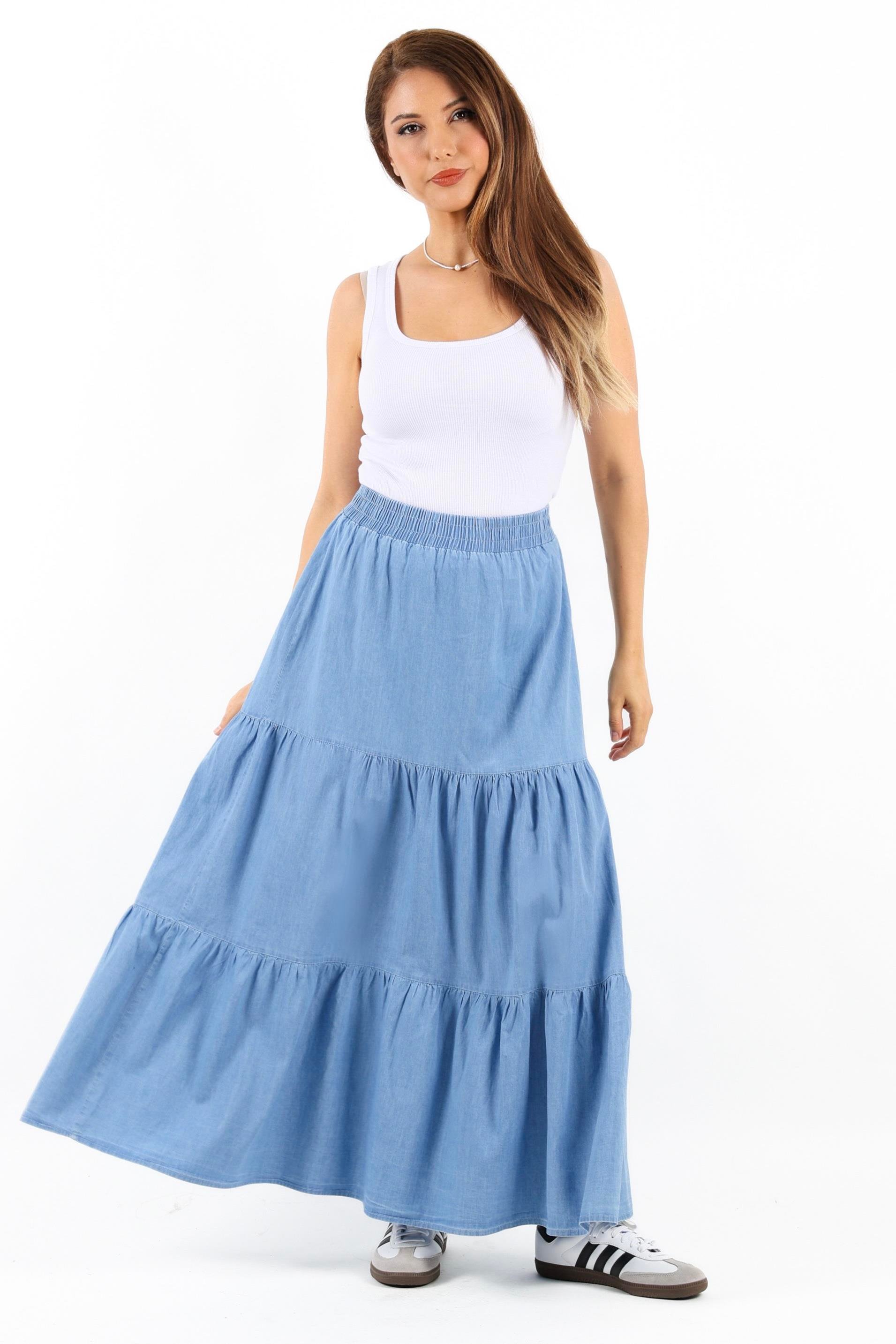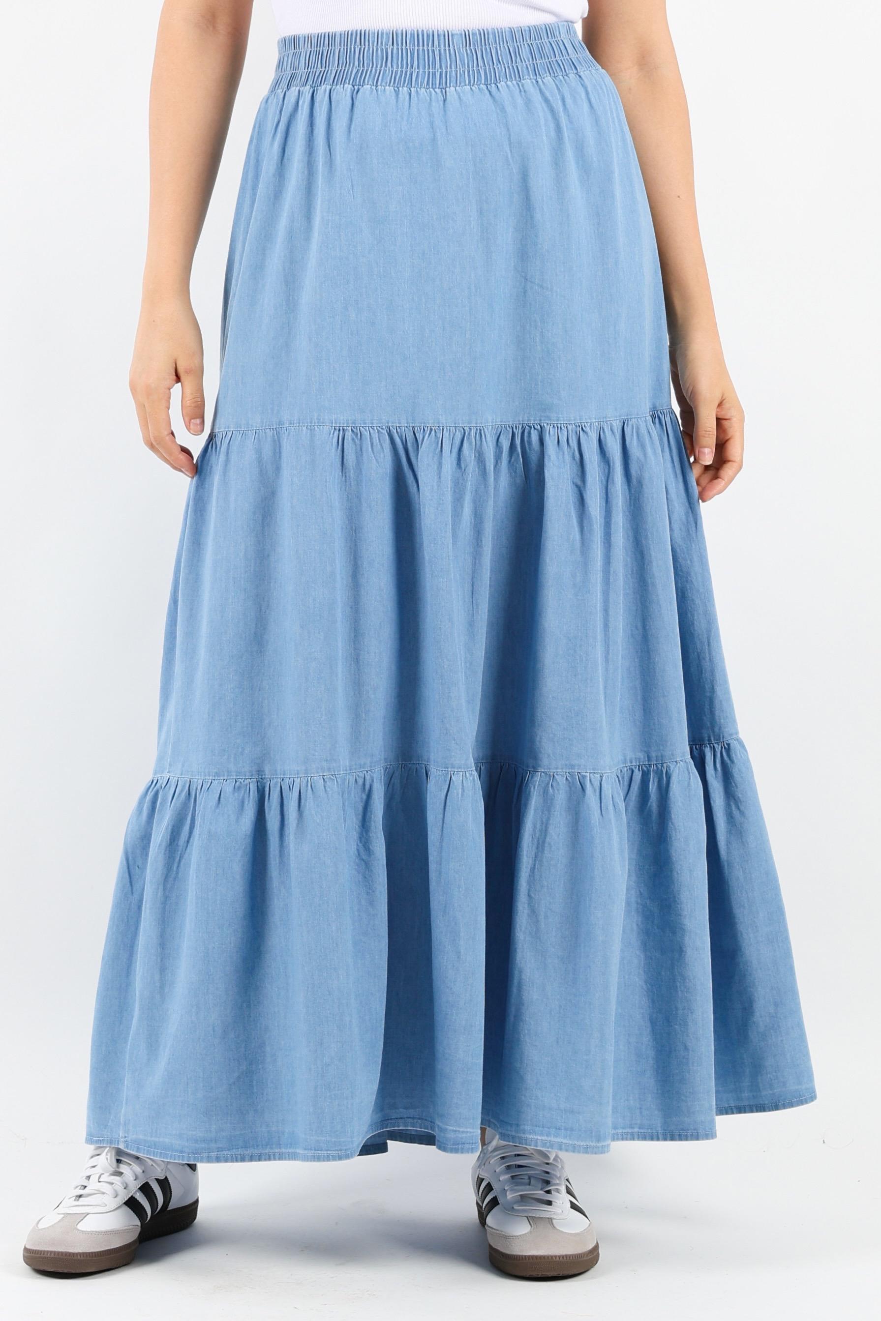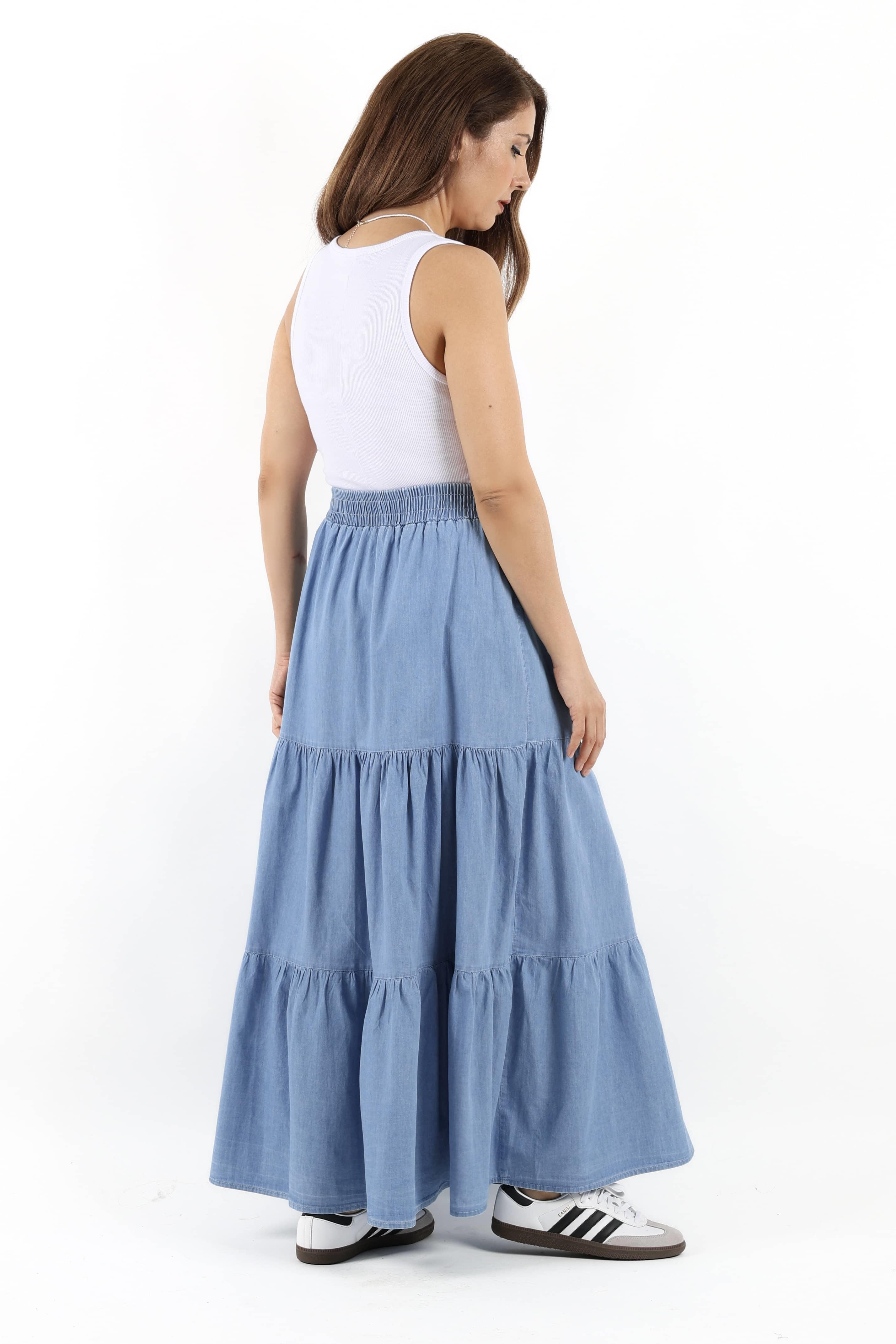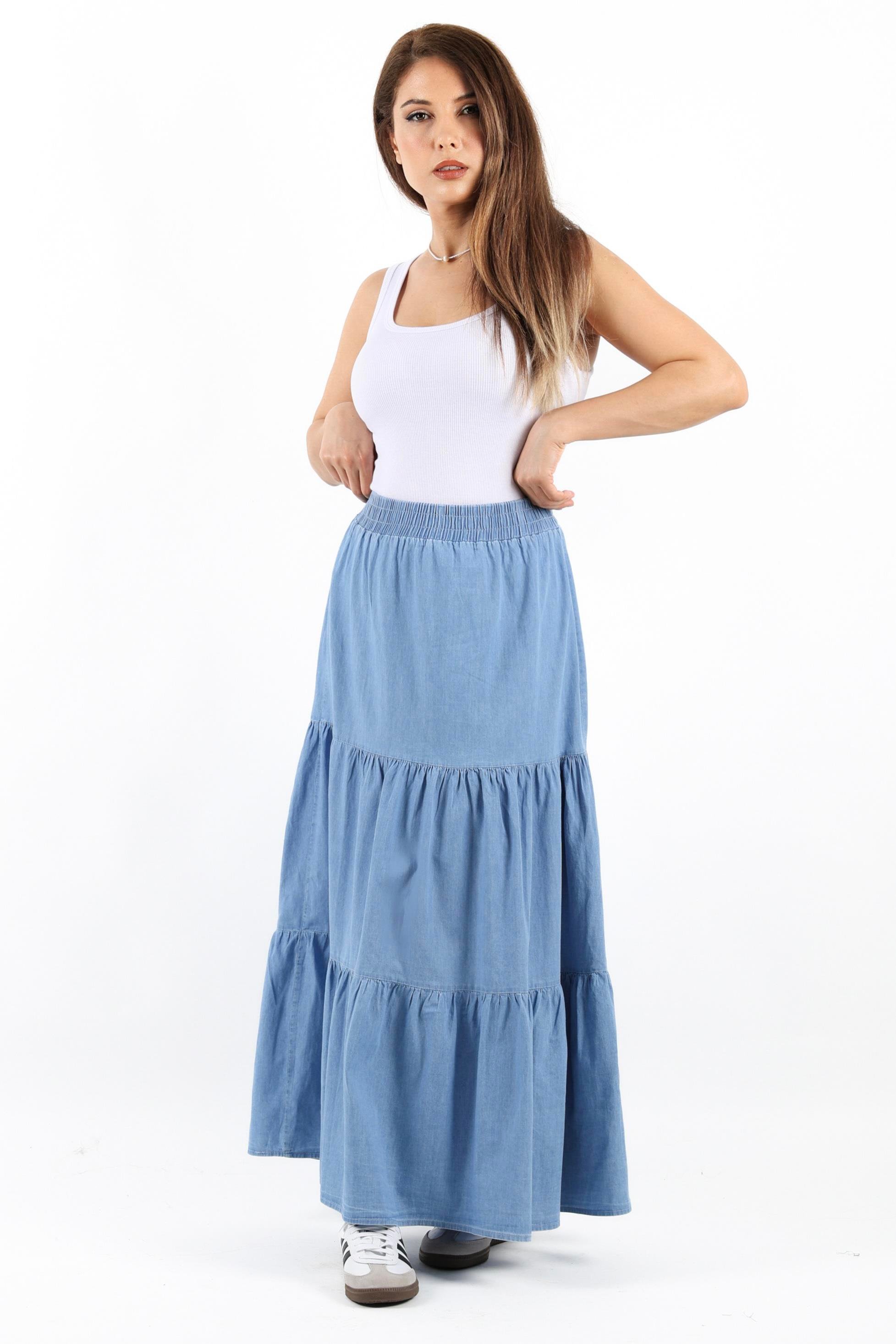 Kadın Sporty Açık Mavi Uzun Yumuşak Jean Etek