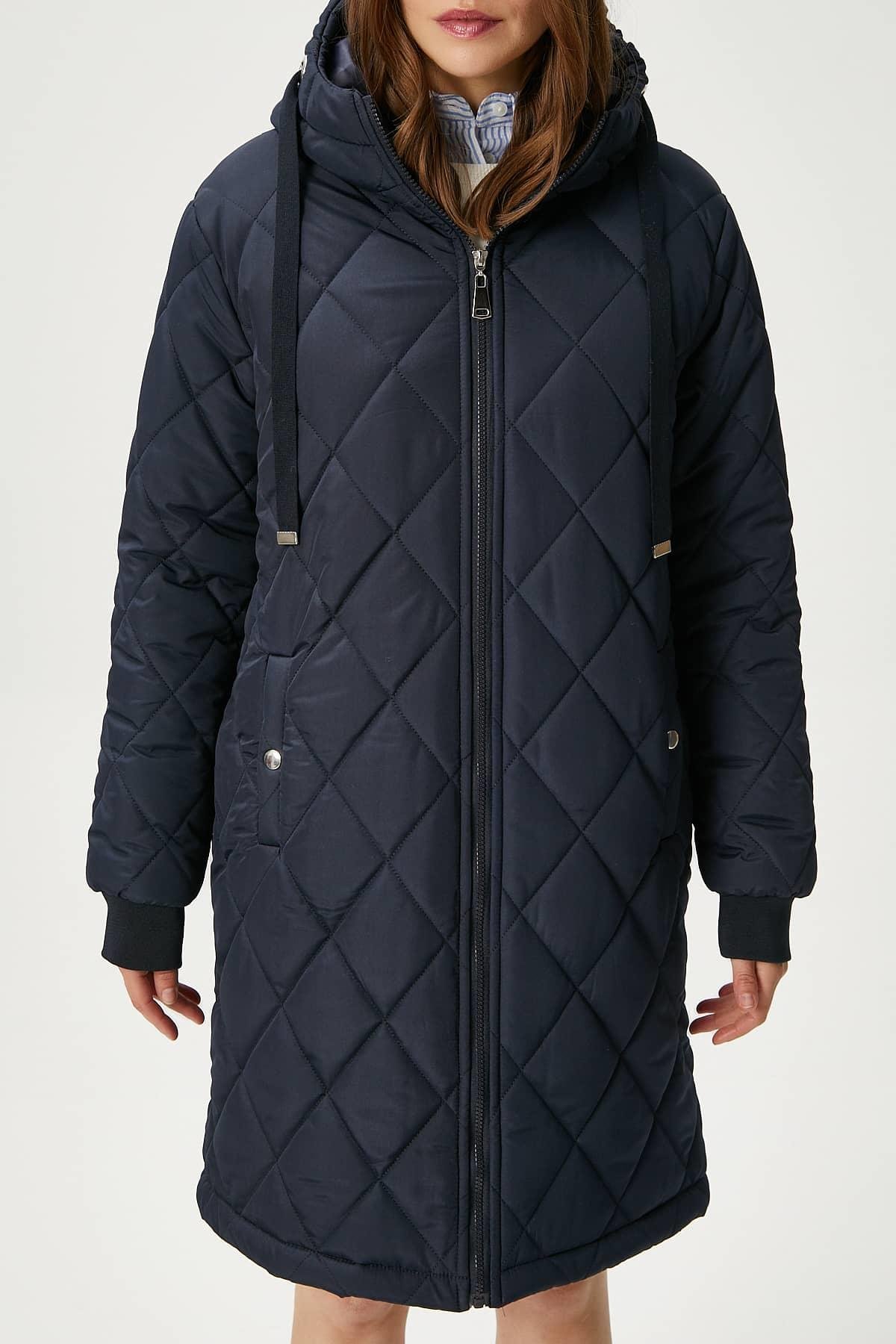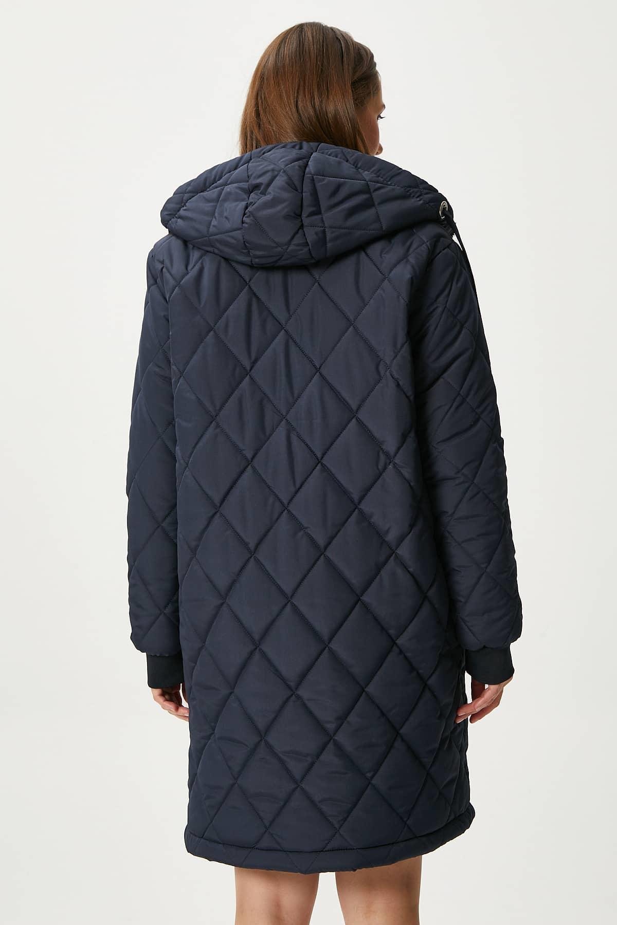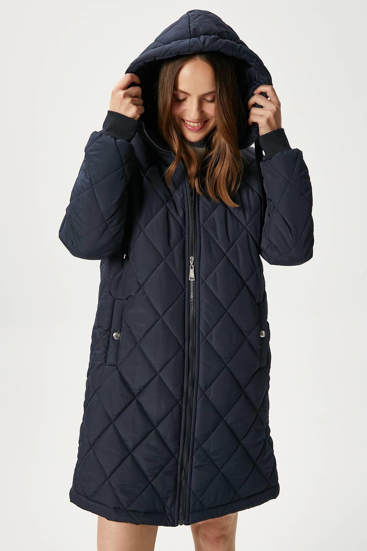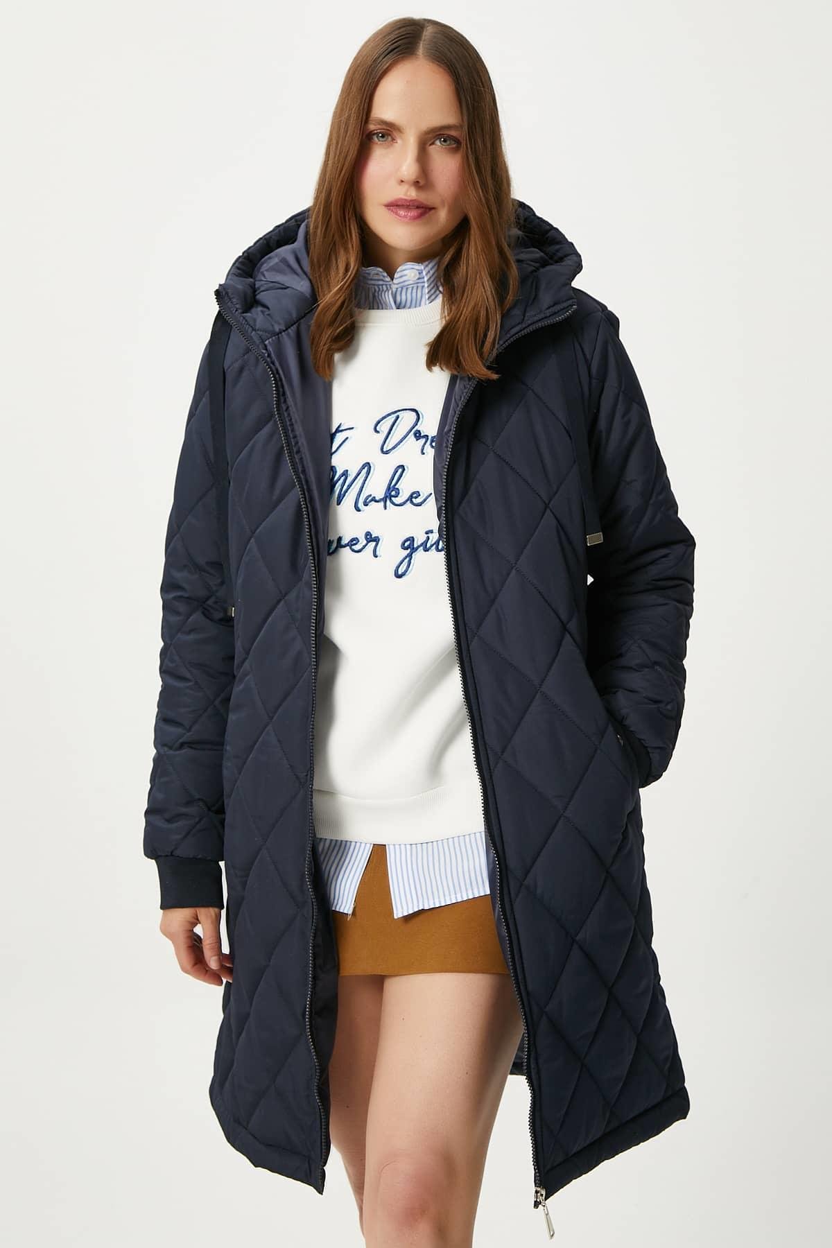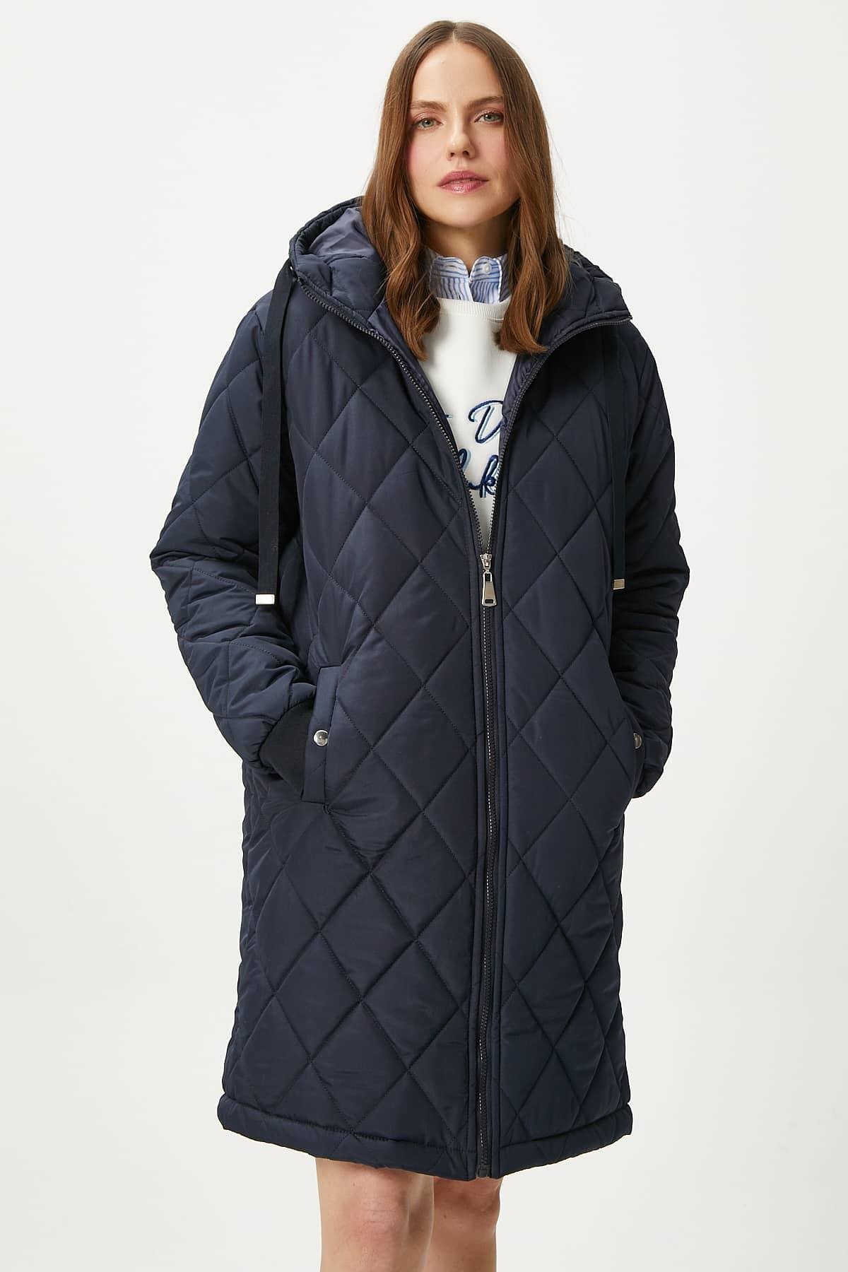 Kadın Sporty Kapüşonlu Kapitone Lacivert Kaban