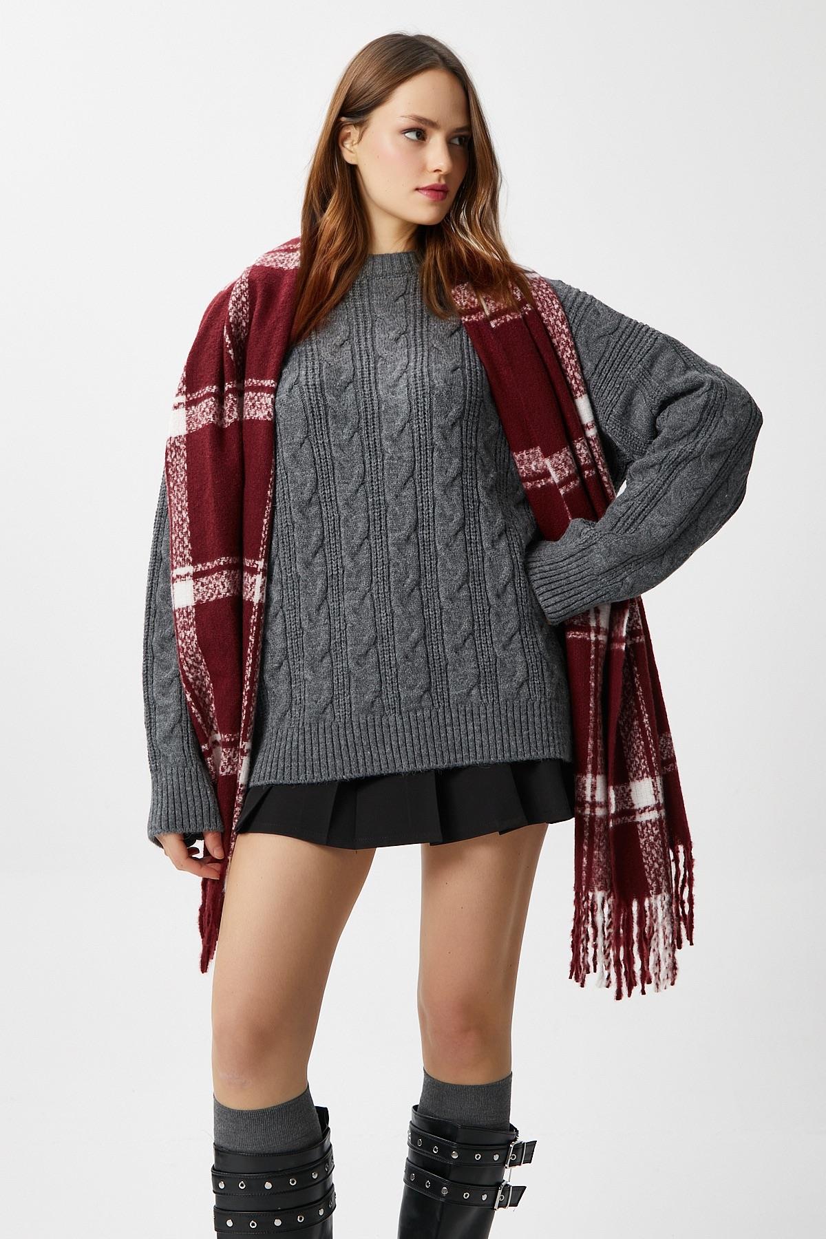 Kadın Stella Yumuşak Oversize Antrasit Triko Kazak