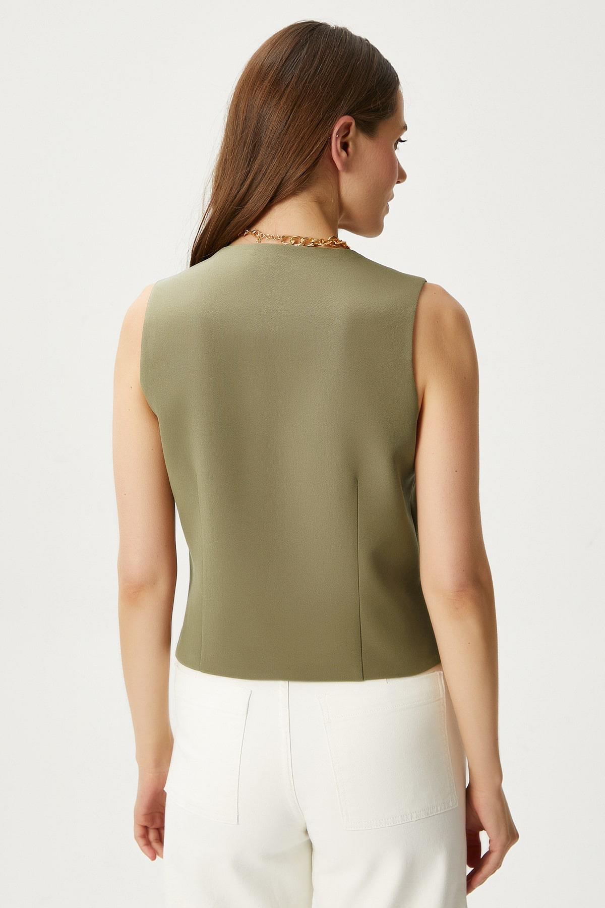 Kadın Style Açık Haki Astarlı Dokuma Yelek