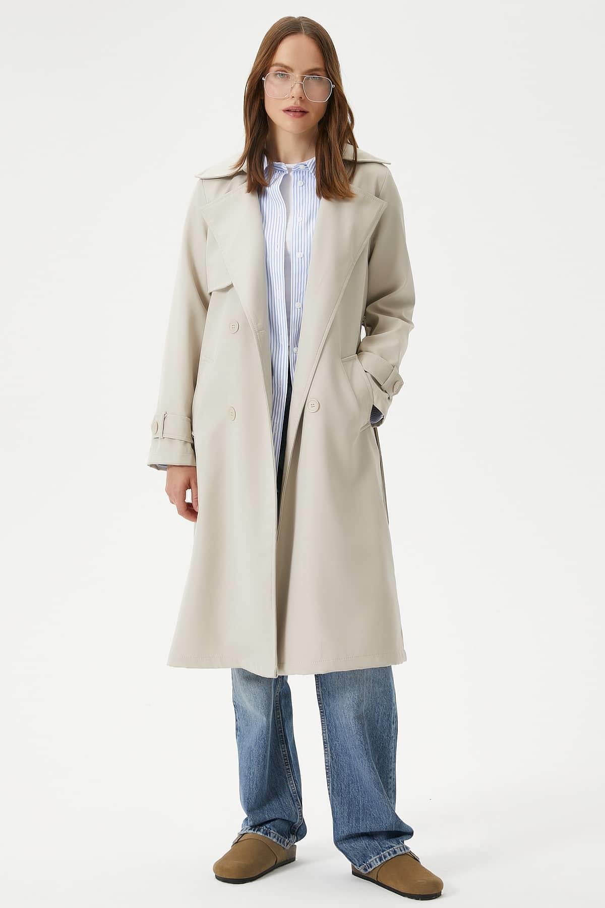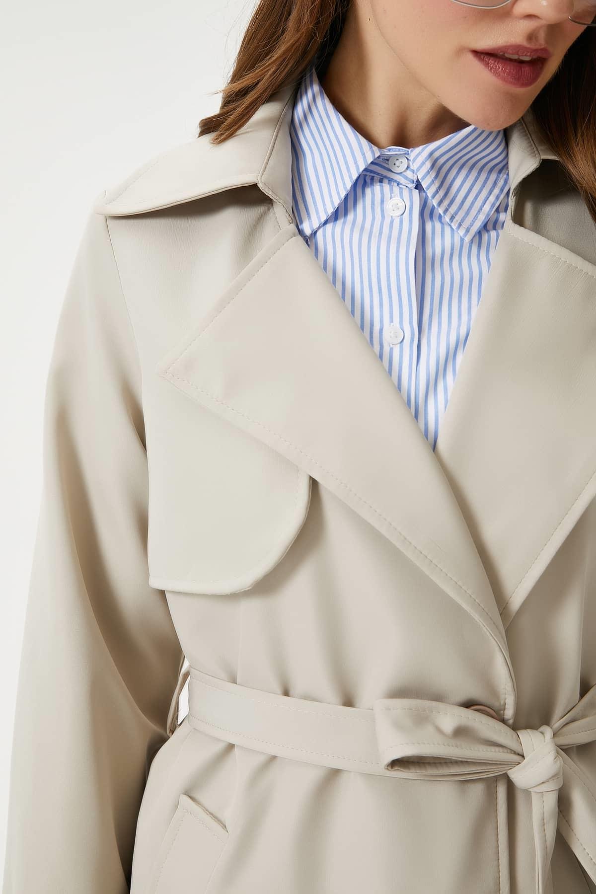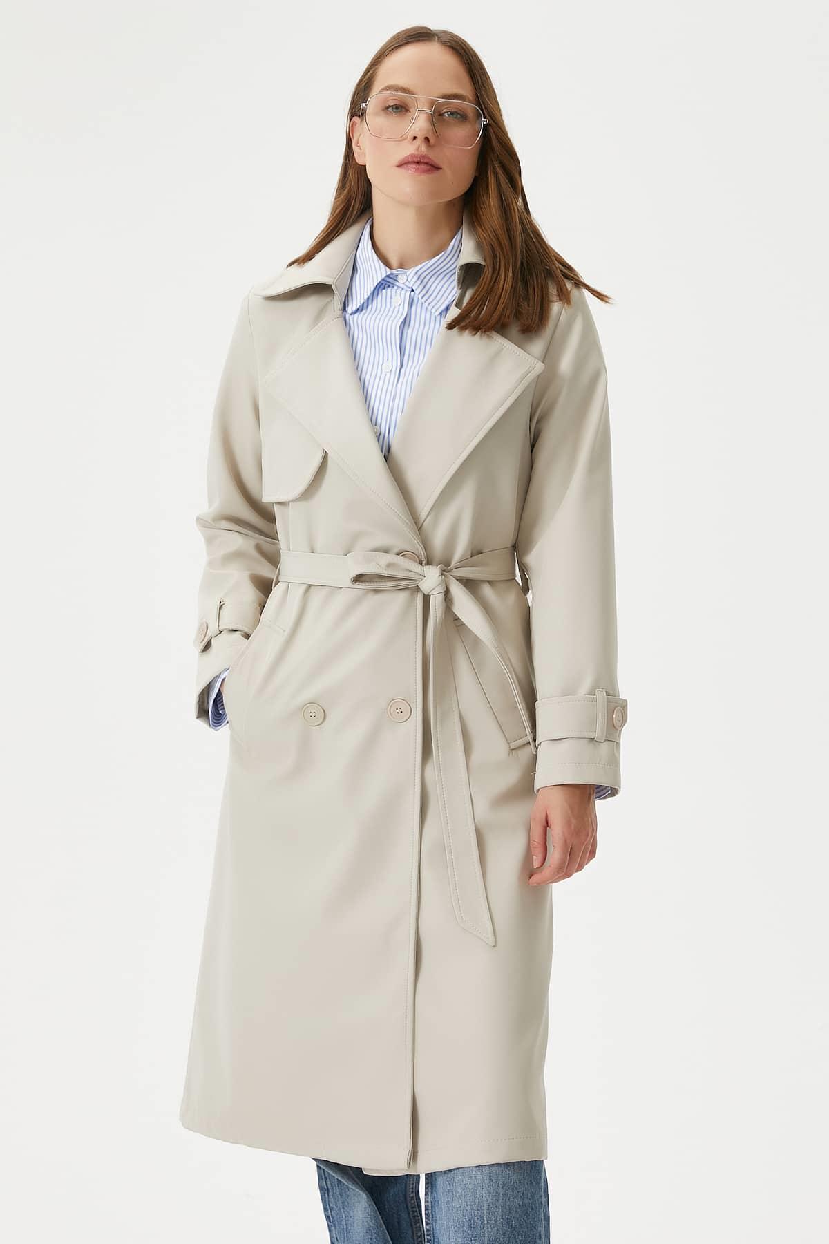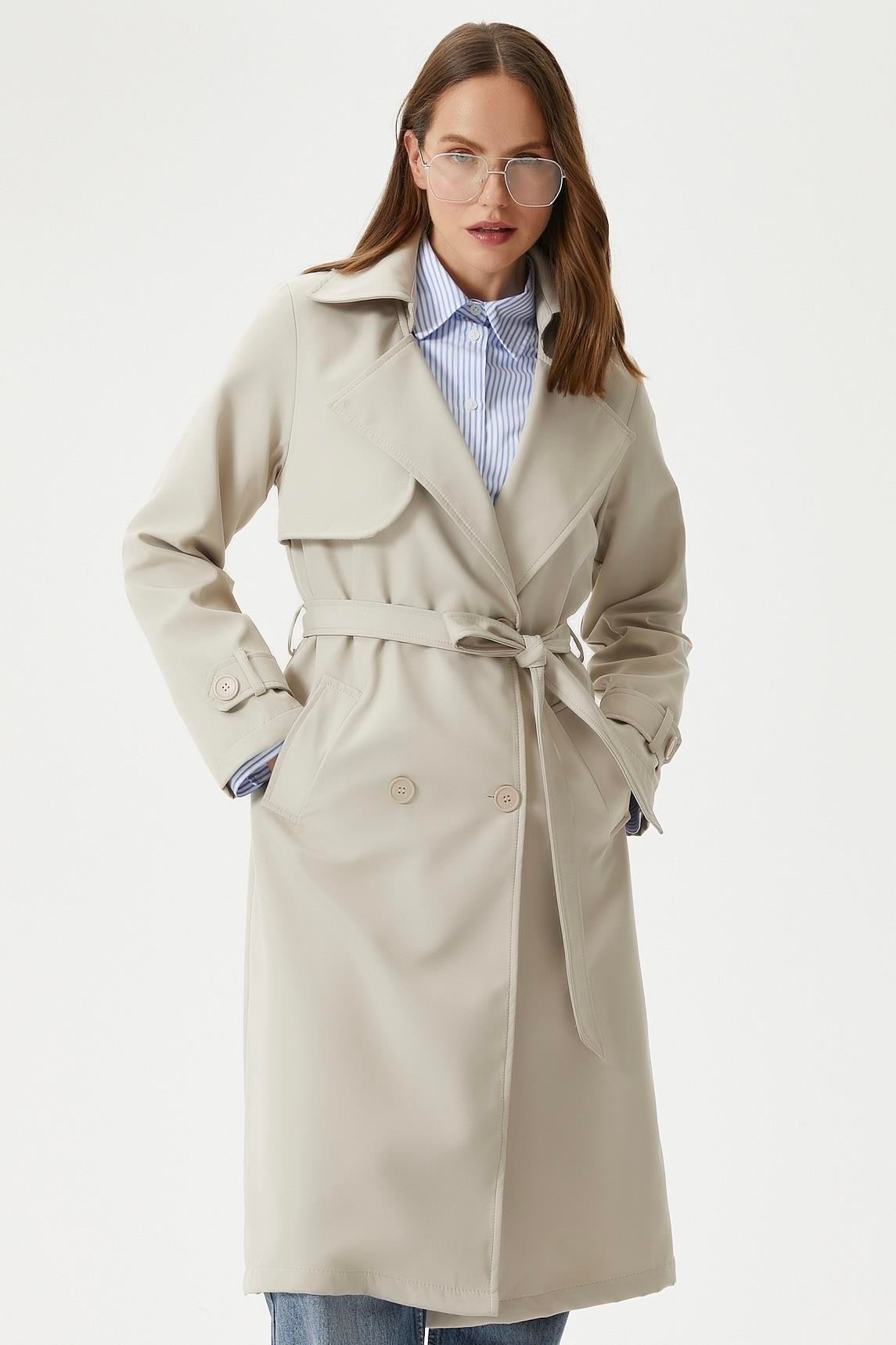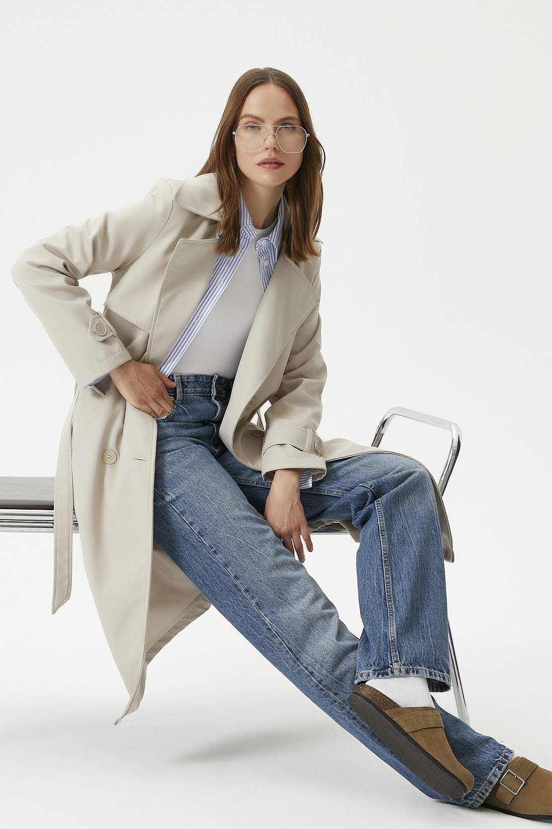 Kadın Style Astarlı Kapaklı Taş Trençkot