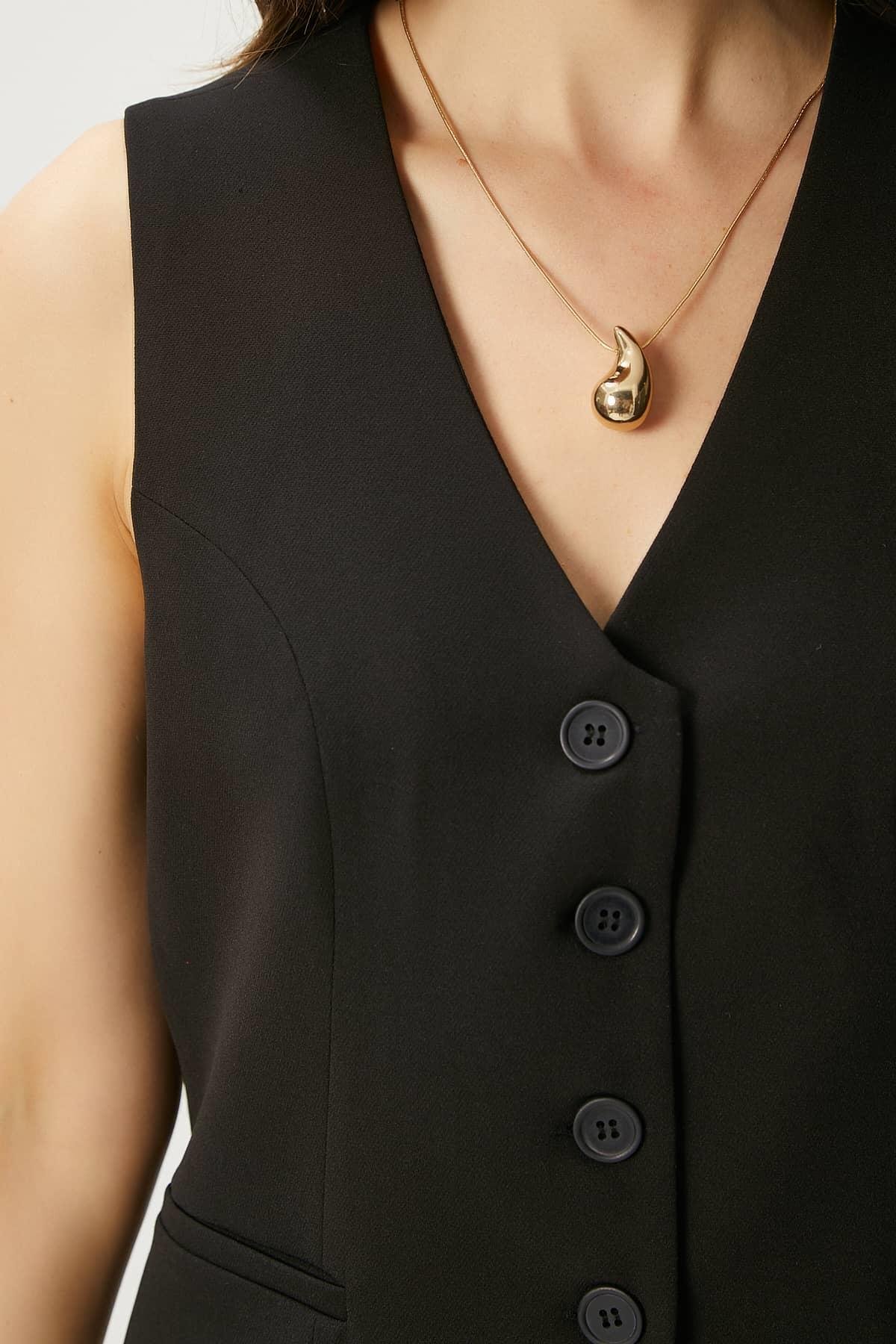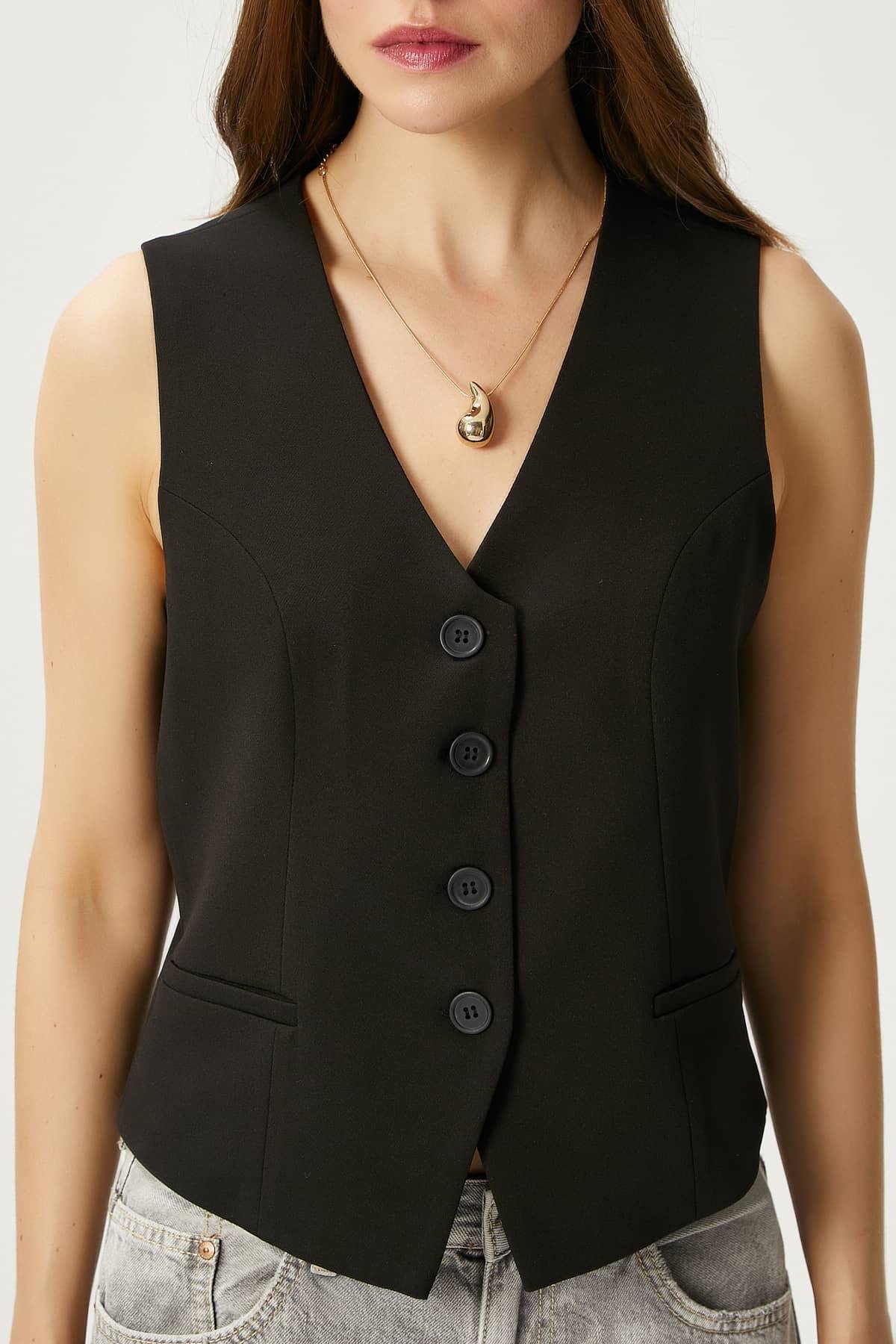 Kadın Style Siyah Astarlı Dokuma Yelek
