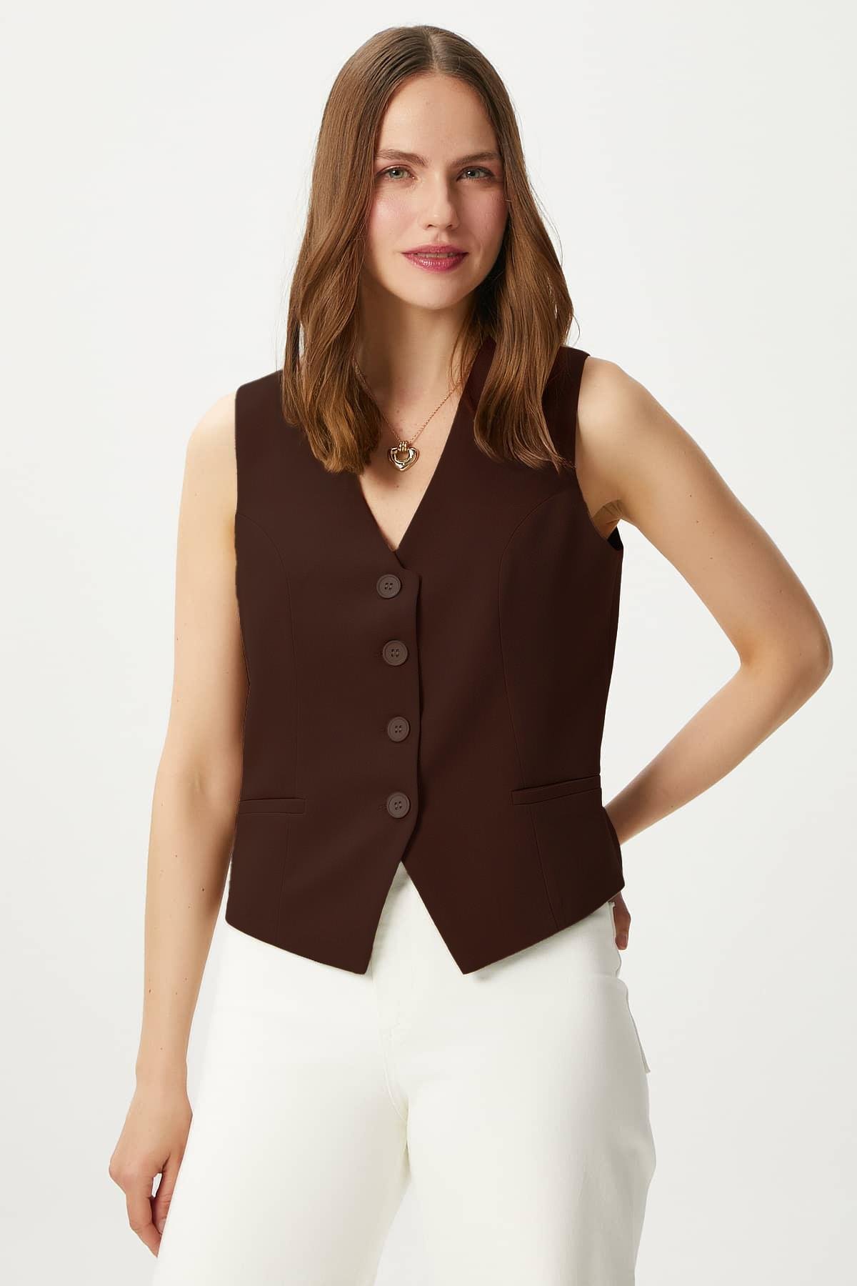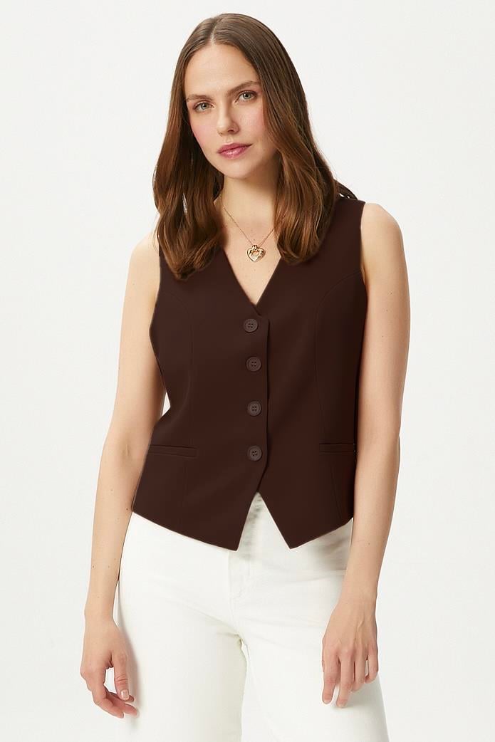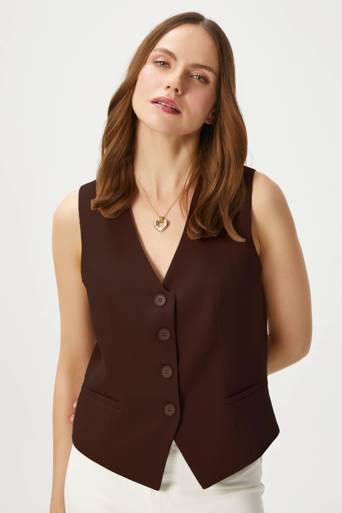 Kadın Style Kahverengi Astarlı Dokuma Yelek