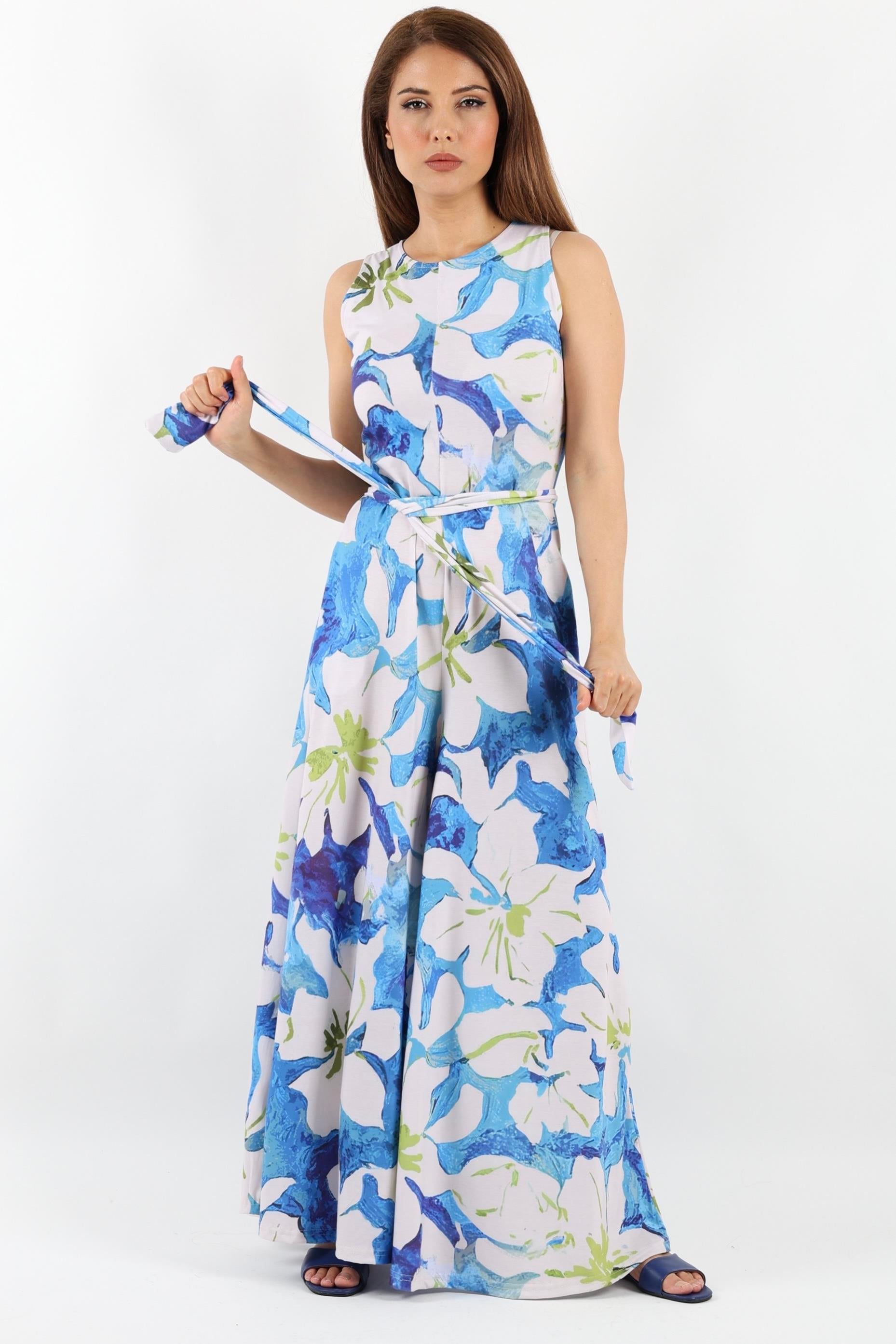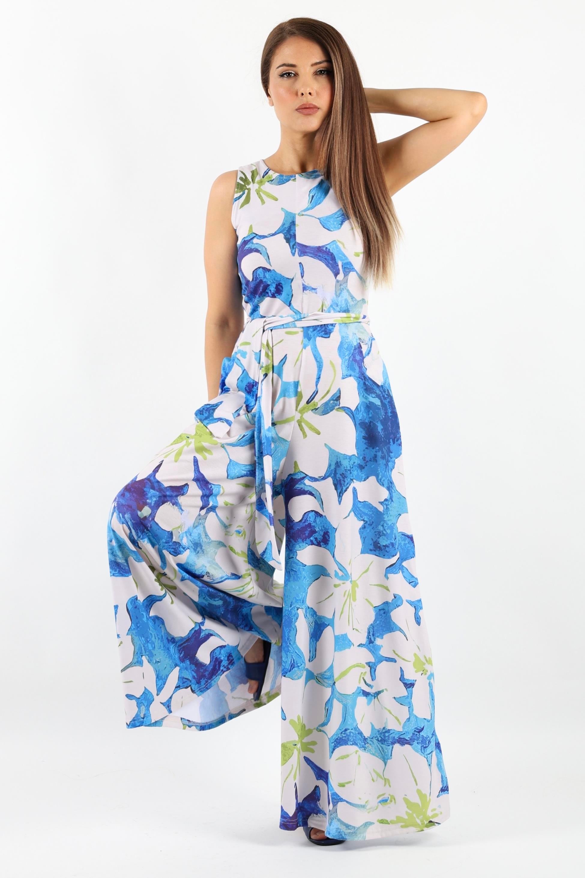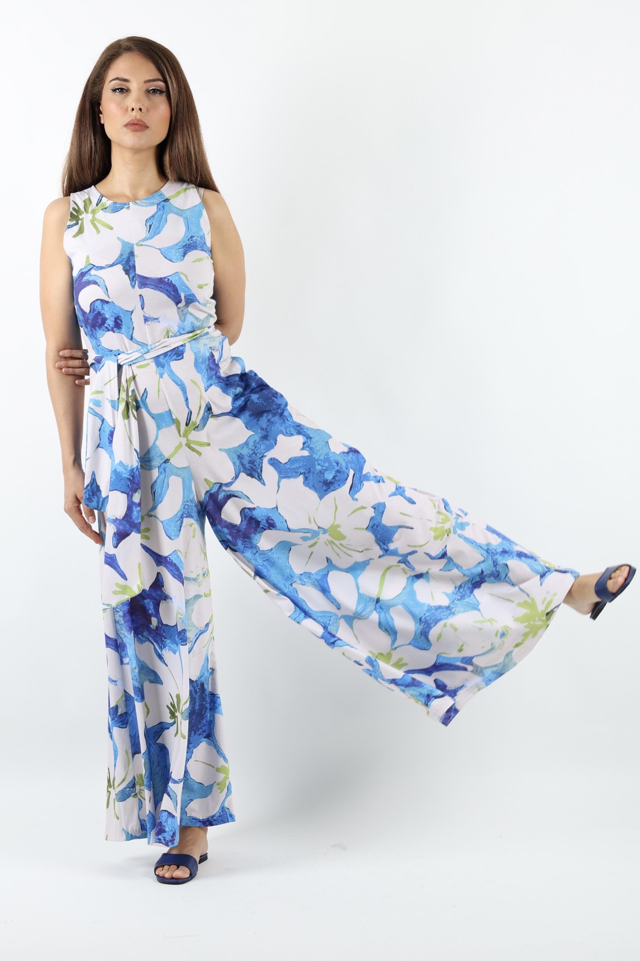 Kadın Summer Likralı Kuşaklı Geniş Paça Tulum