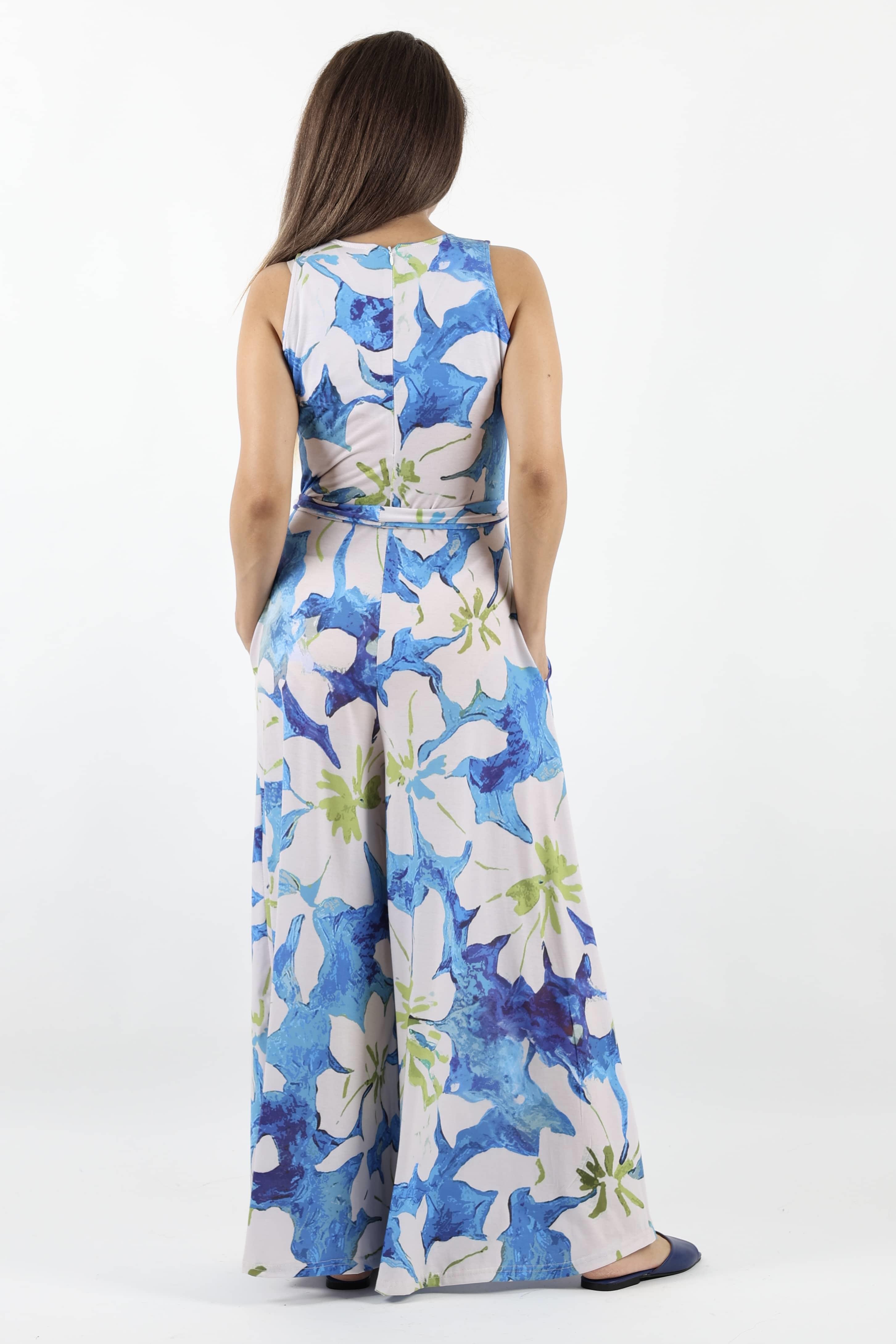 Kadın Summer Likralı Kuşaklı Geniş Paça Cepli Tulum
