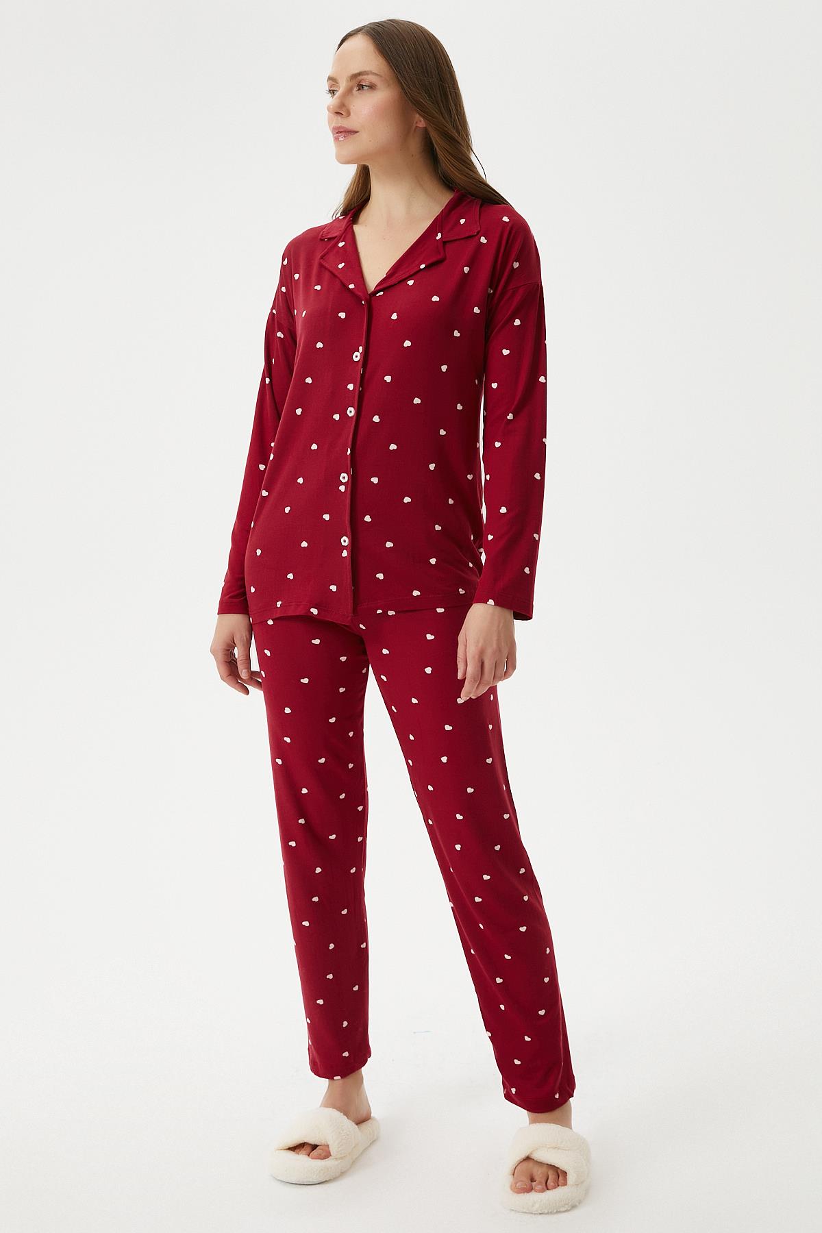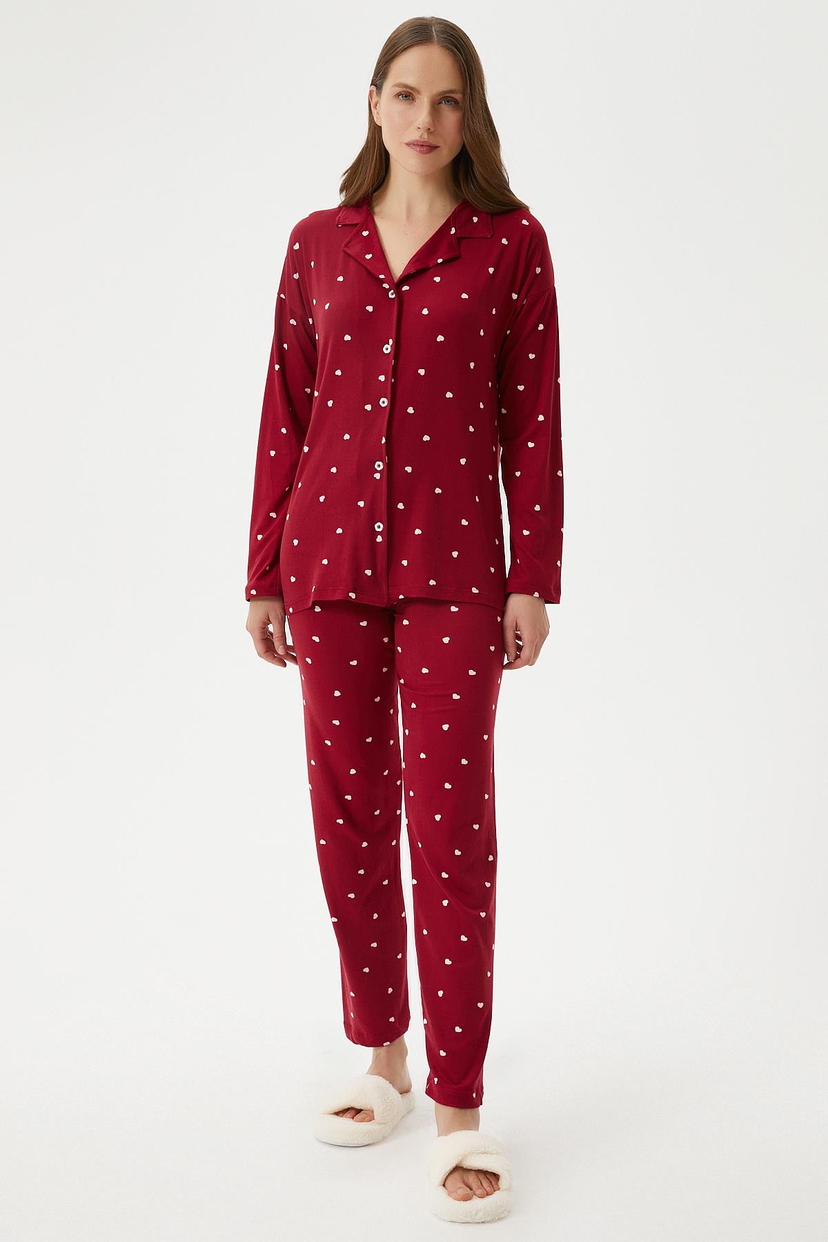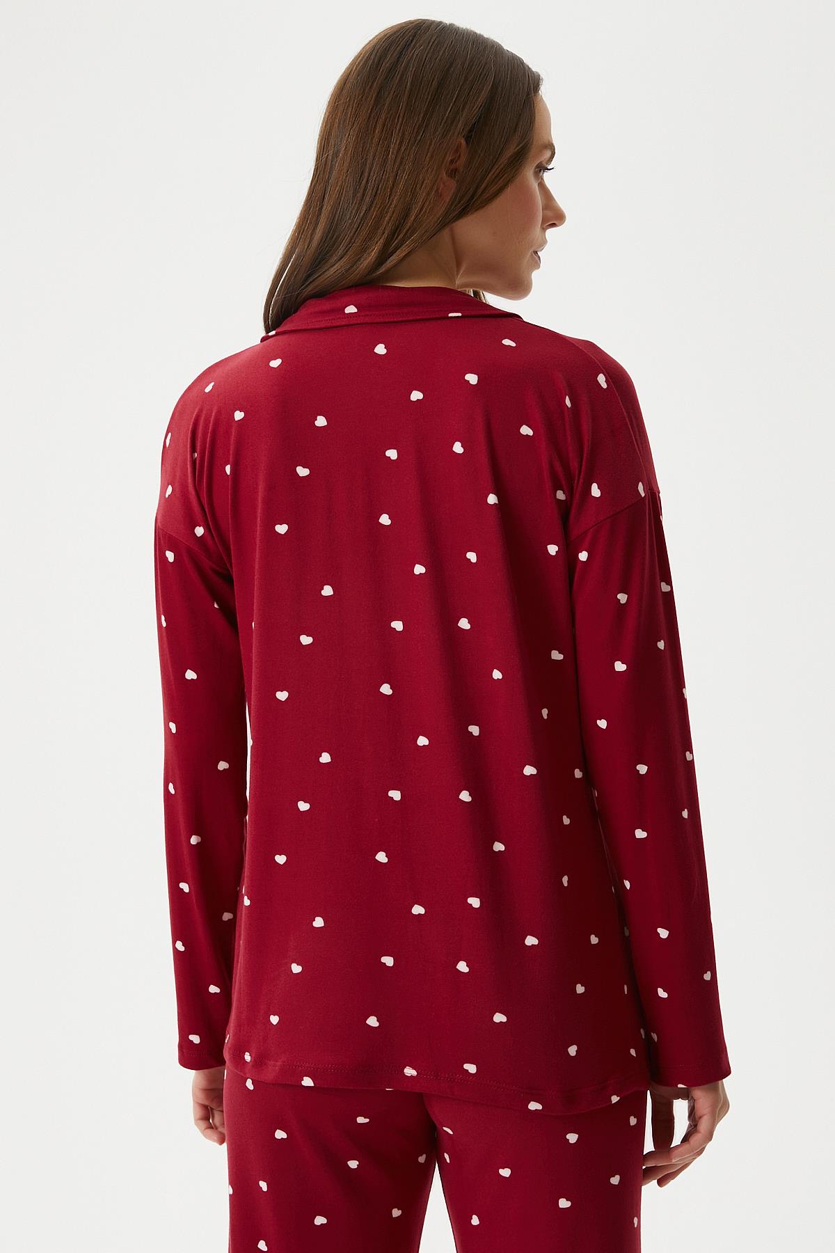Kadın Sweety Extra Soft Bordo Kalpli Pijama Takımı