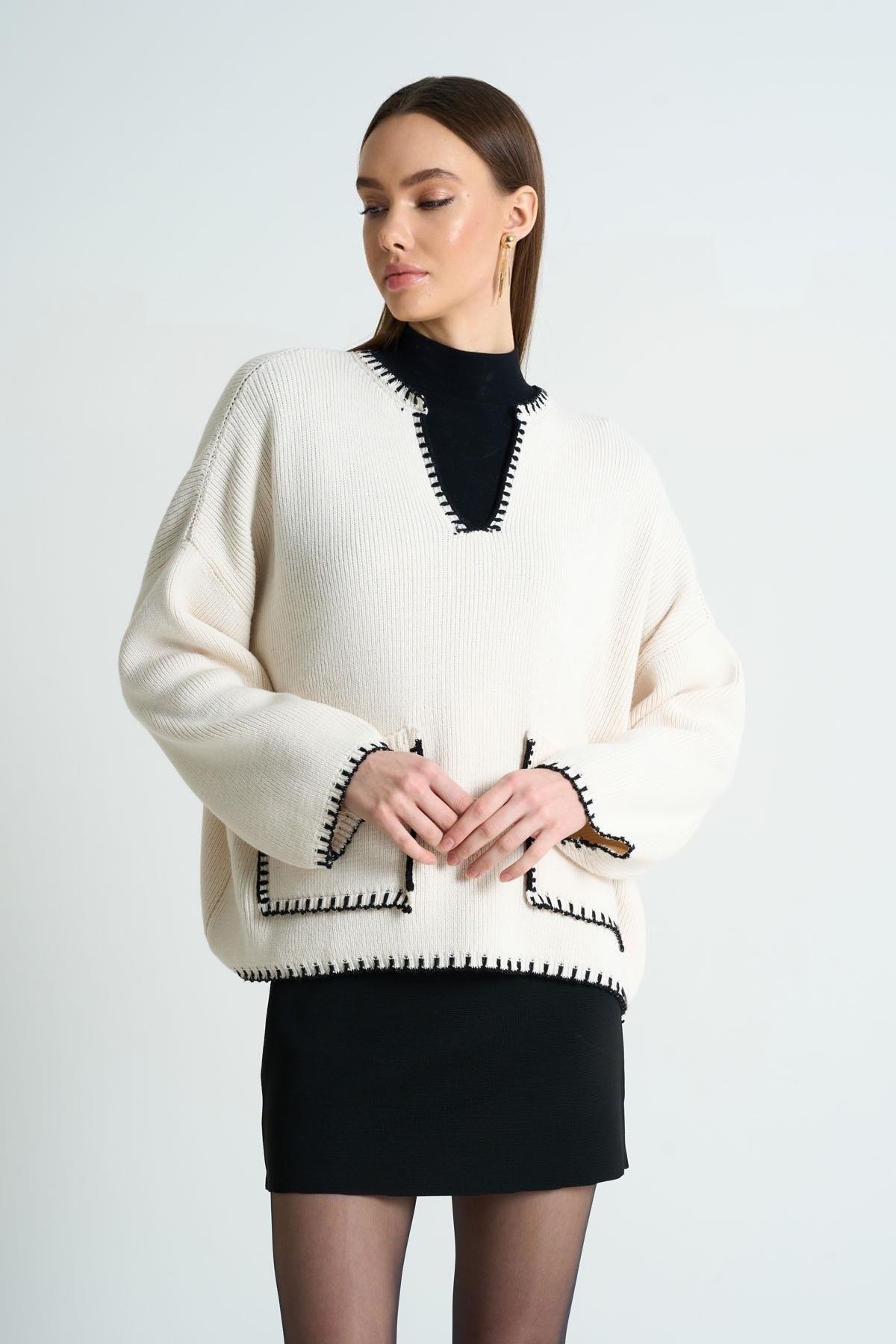 Kadın Valencia Cep Detay Triko Kazak