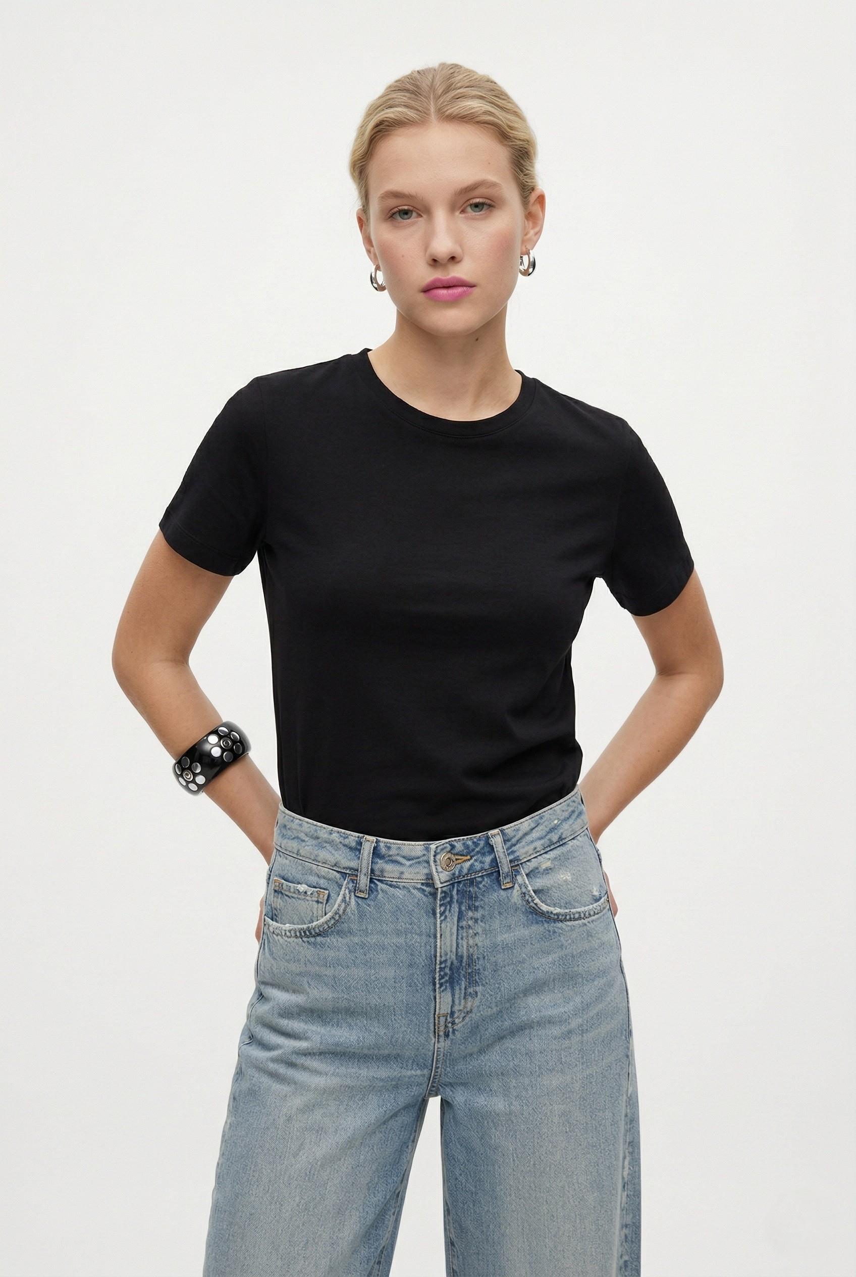 - Bisiklet yaka detayı ile modern ve zamansız bir görünüm sunar.