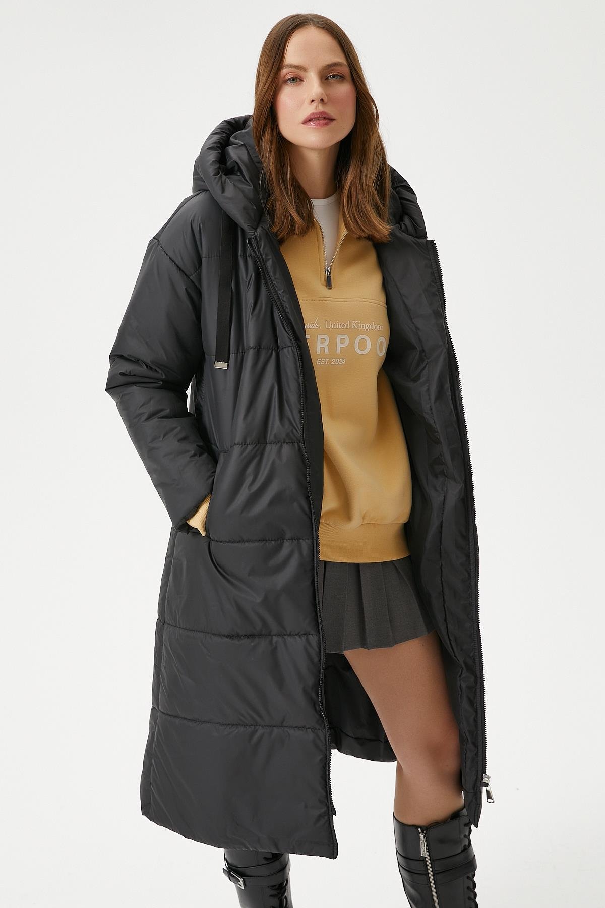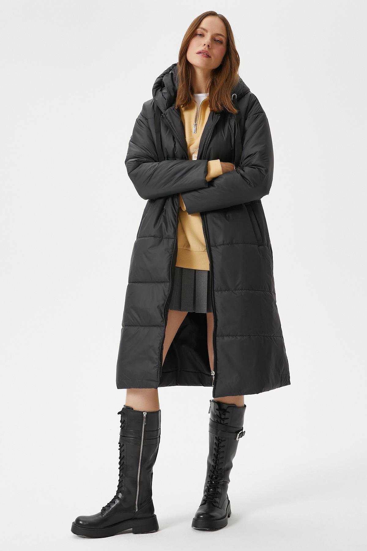 Kadın Warm Kapüşonlu Uzun Şişme Kaban