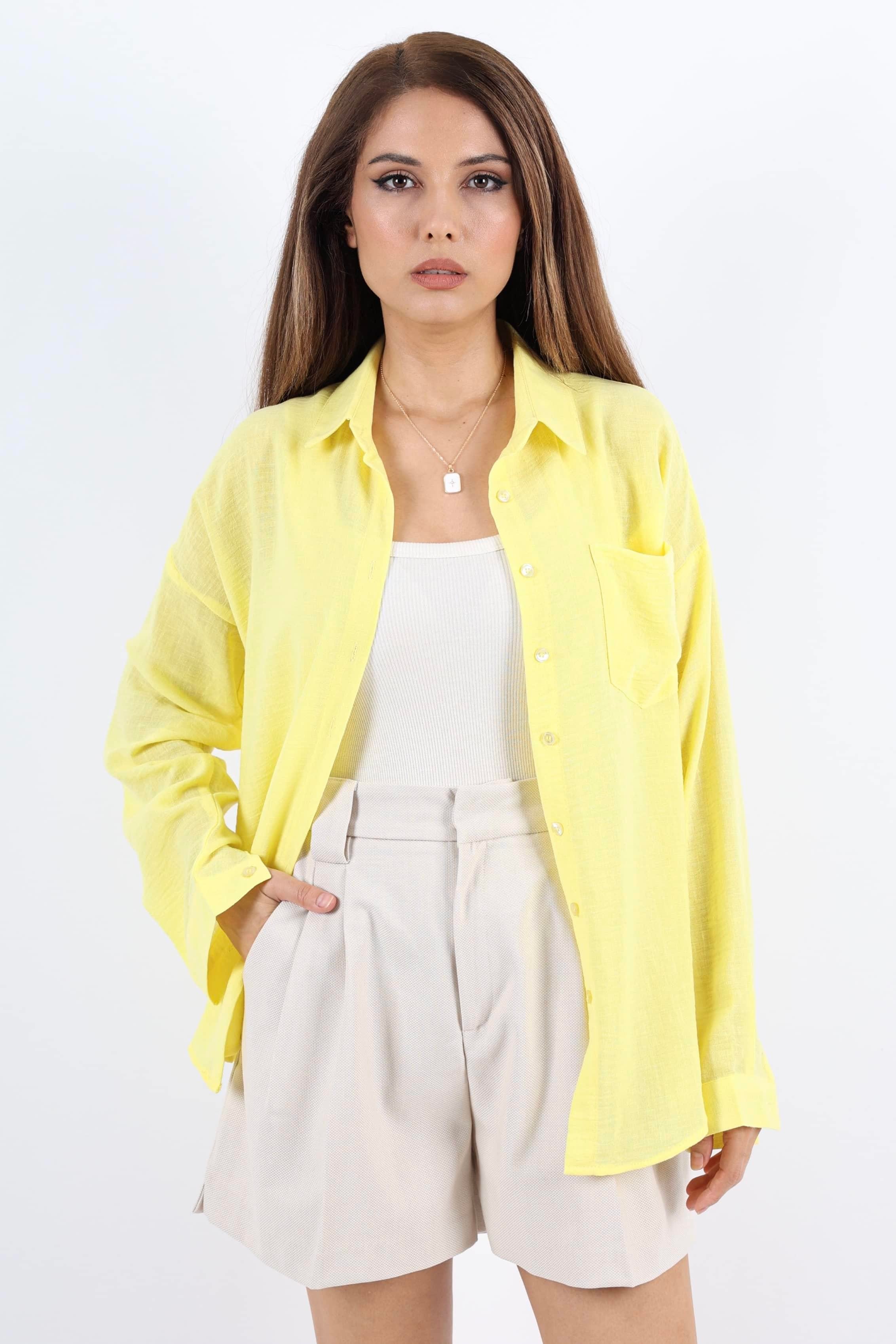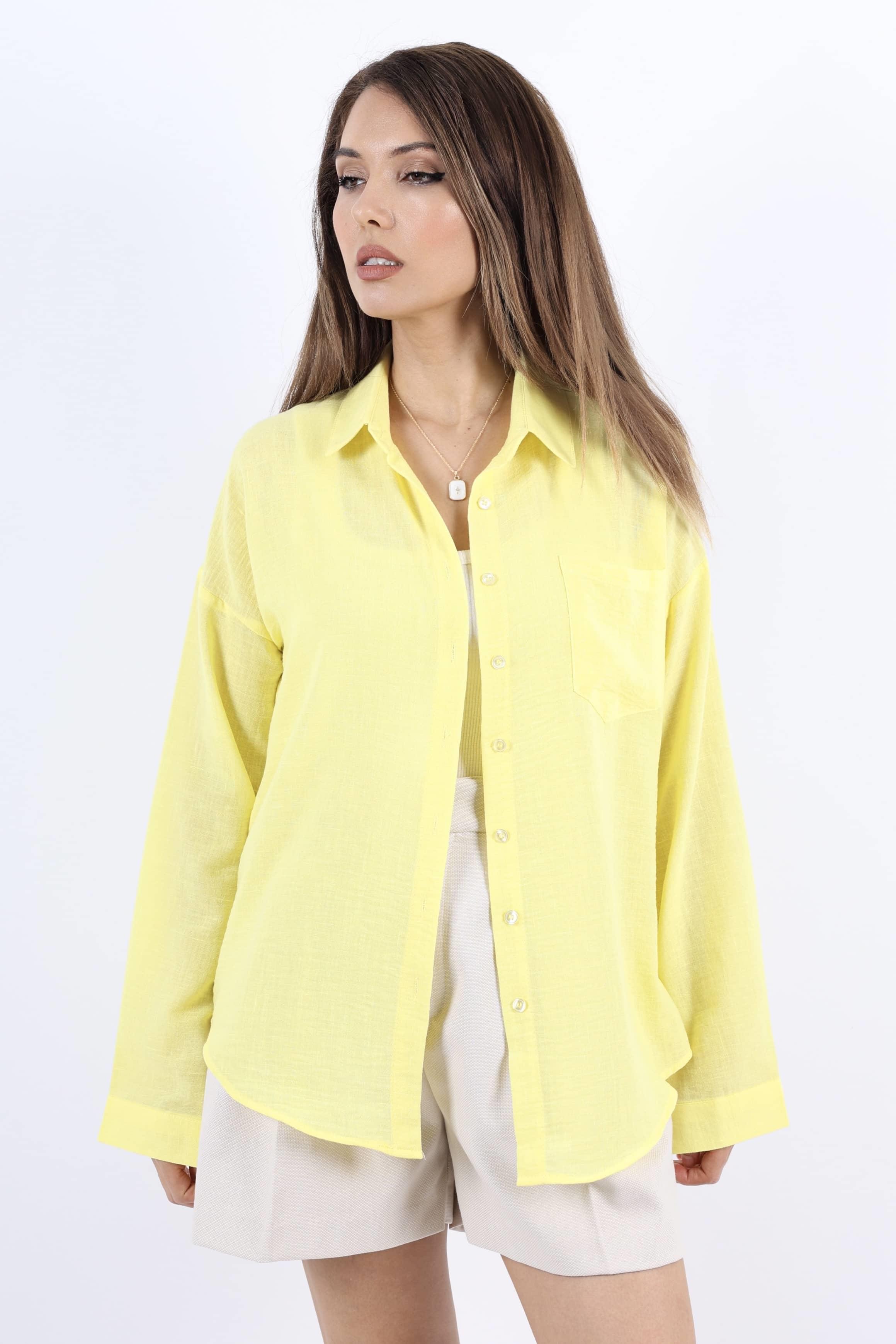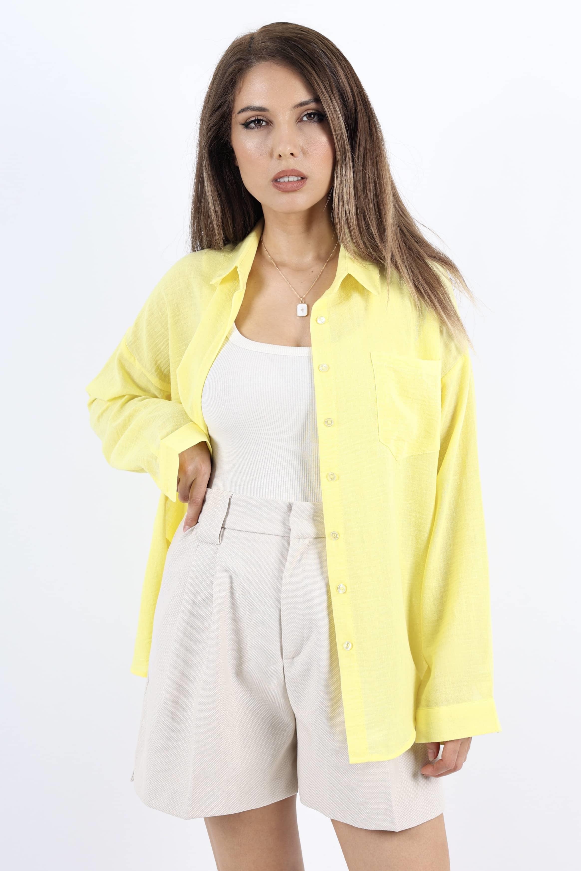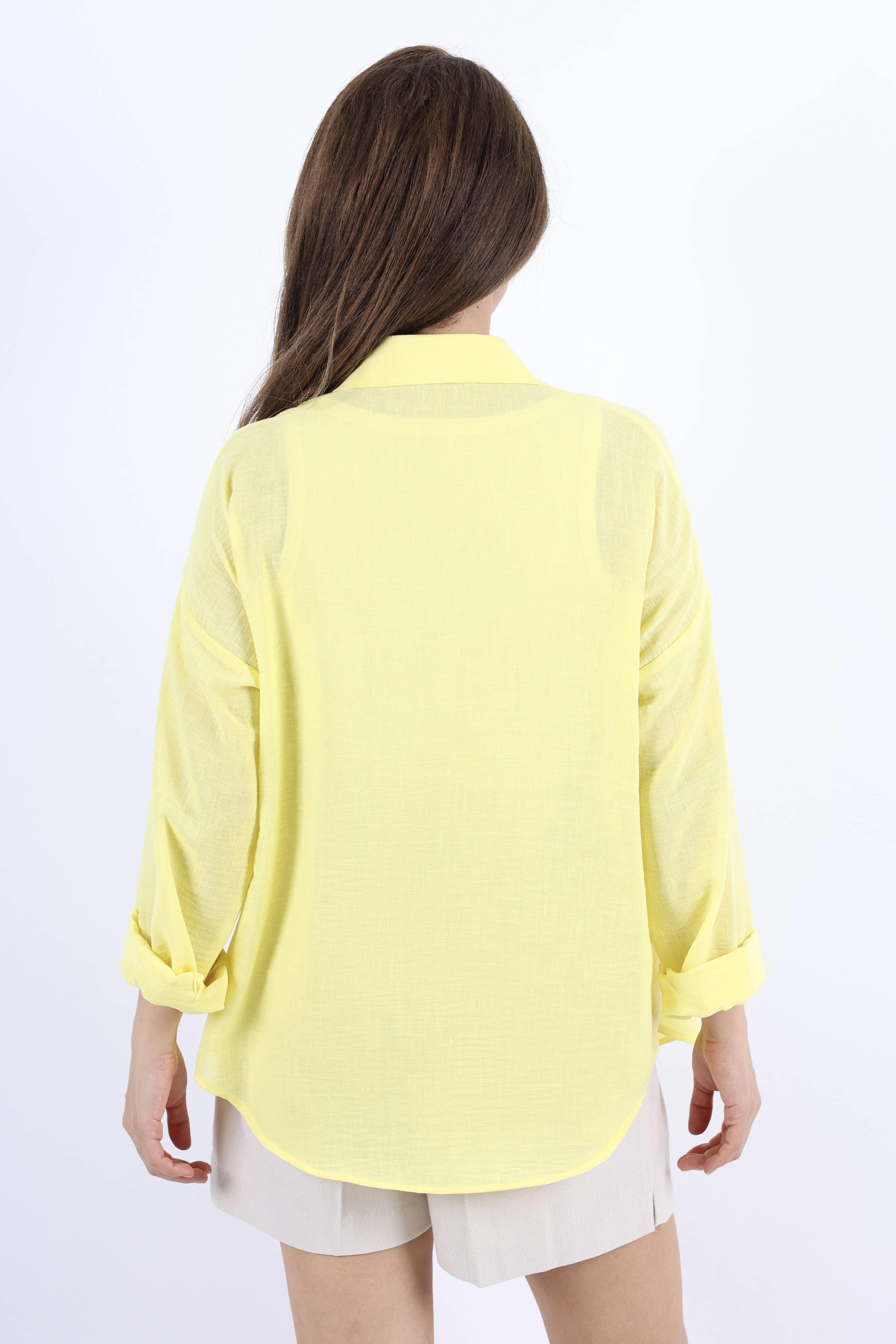 Kadın Well Sarı Keten Gömlek