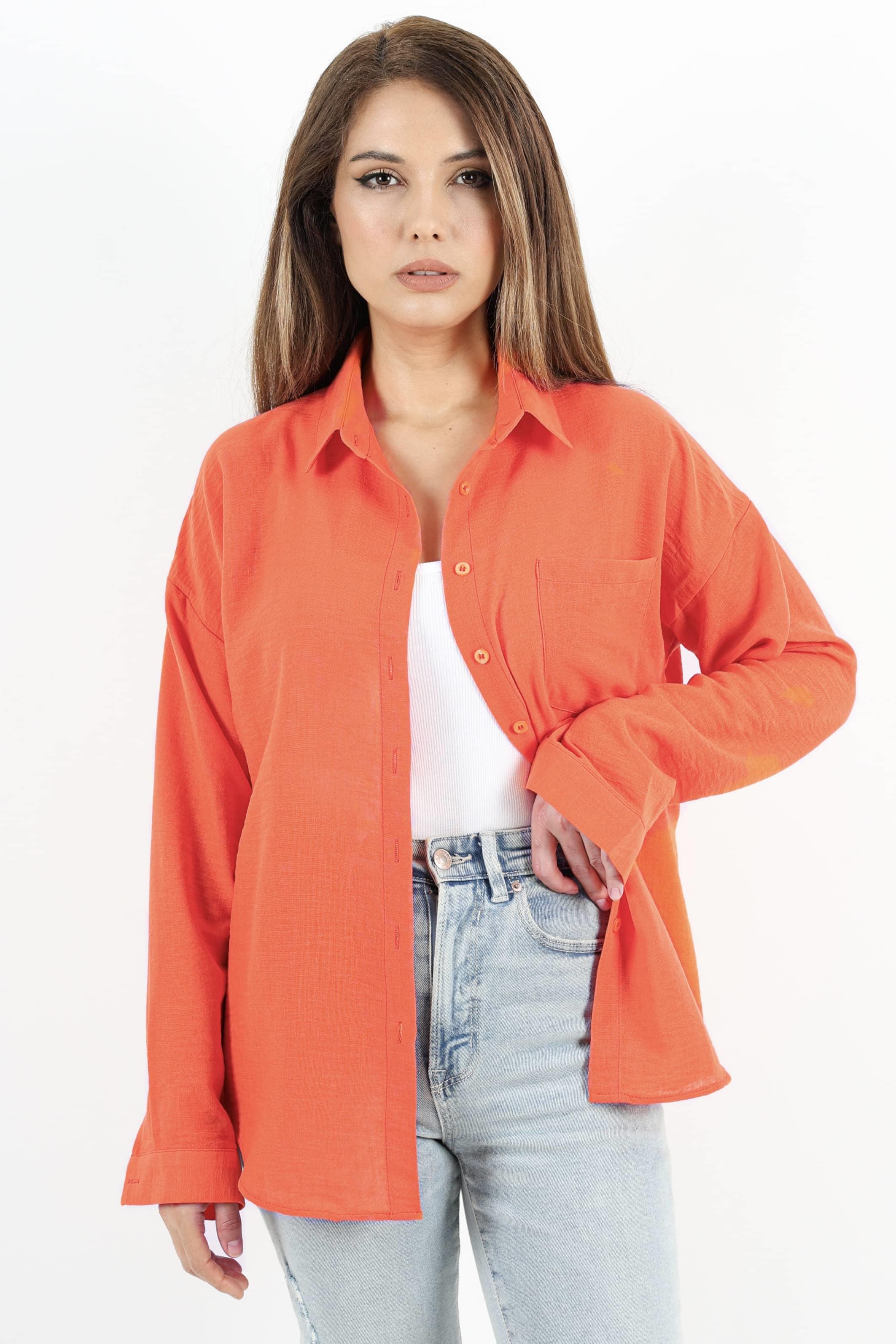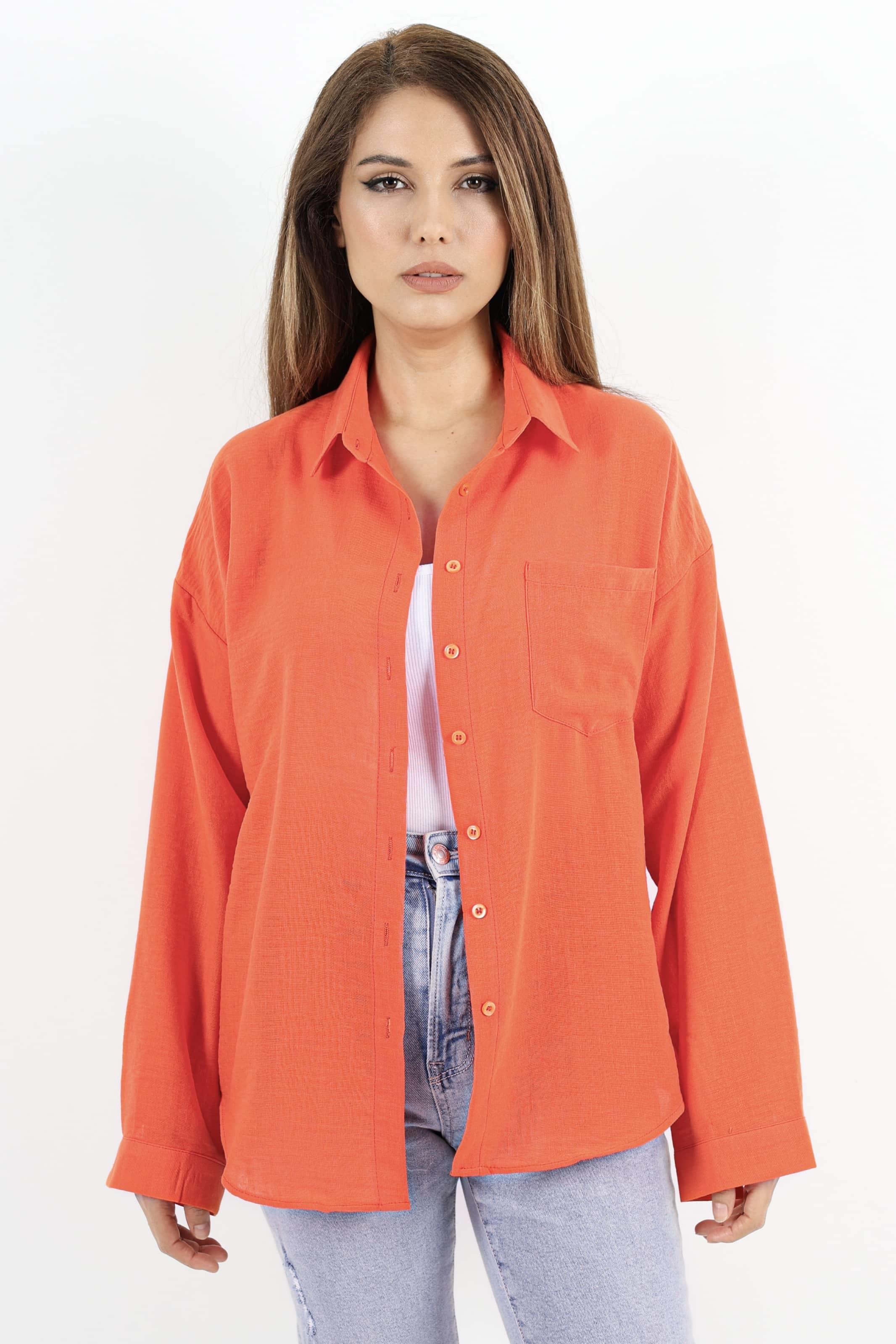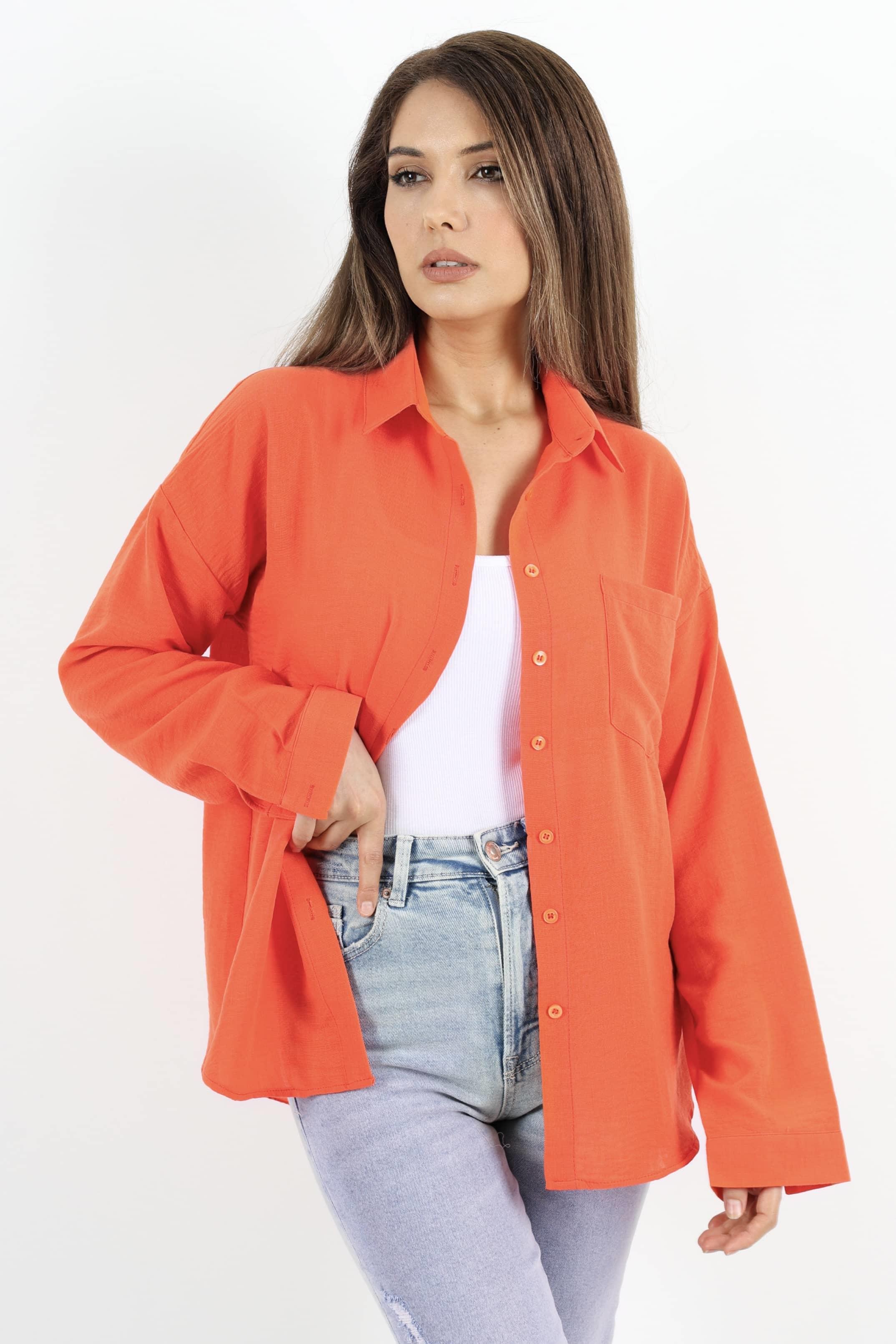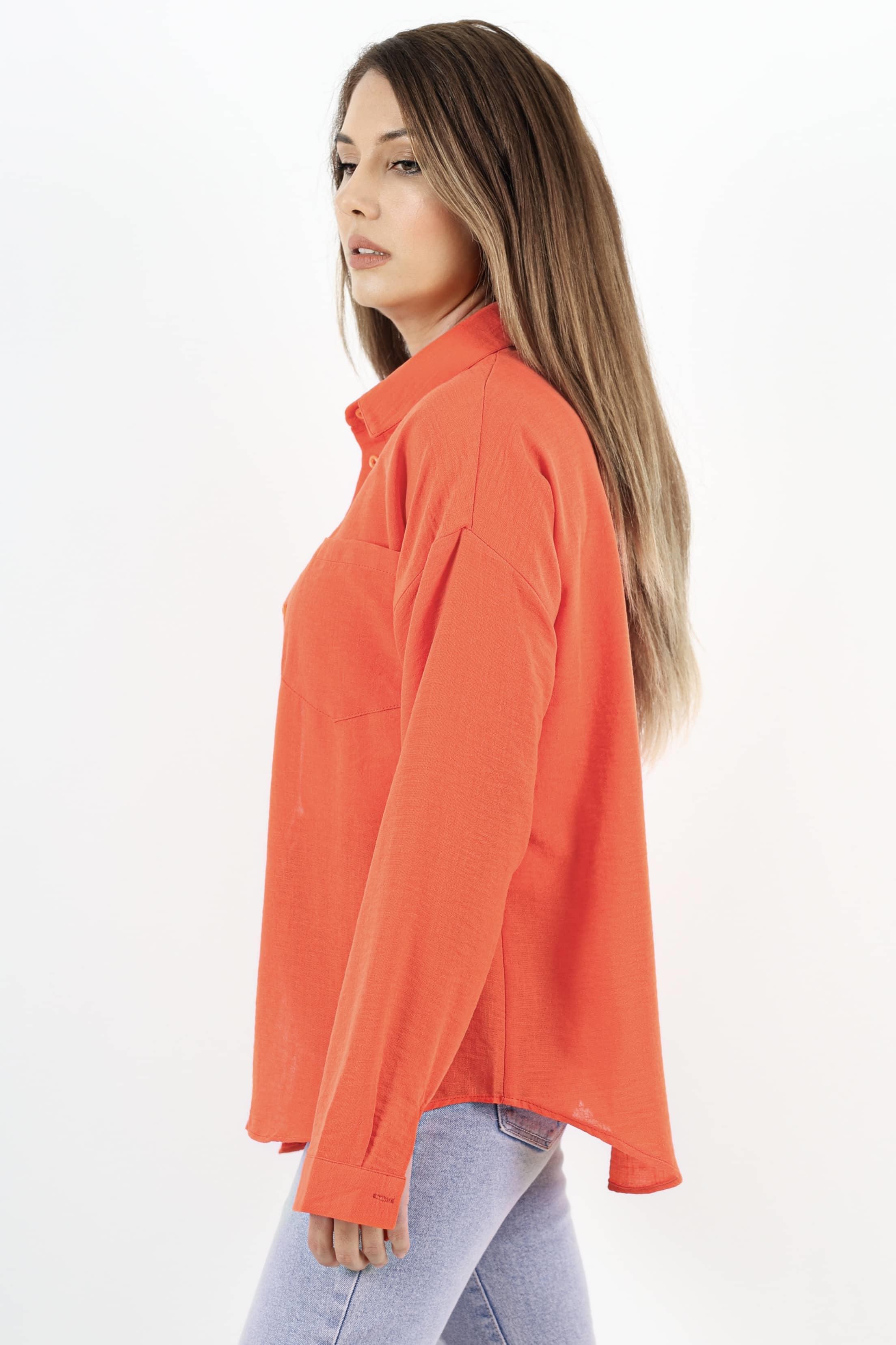 Kadın Well Turuncu Keten Gömlek