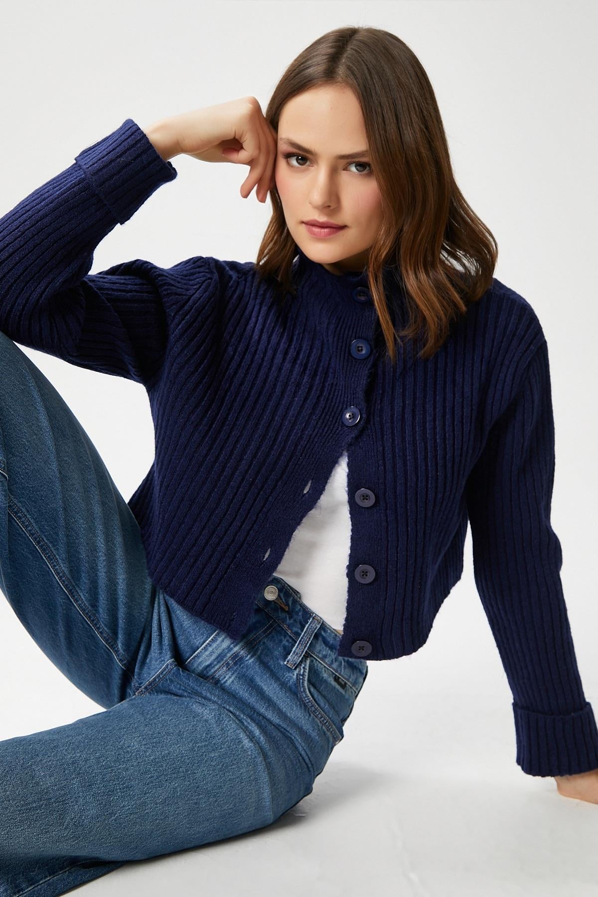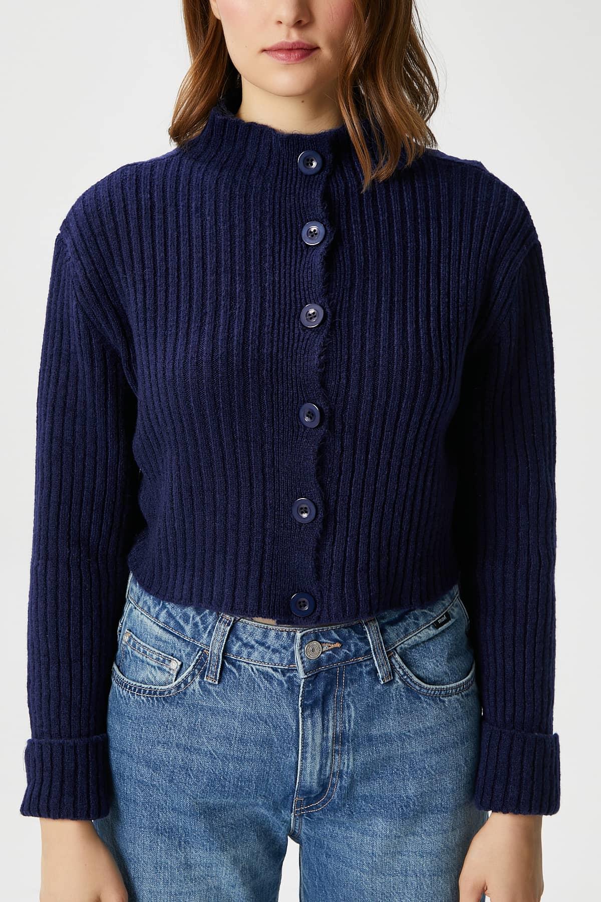 Kadın Wendy Yumuşak Doku Dik Yaka Lacivert Triko