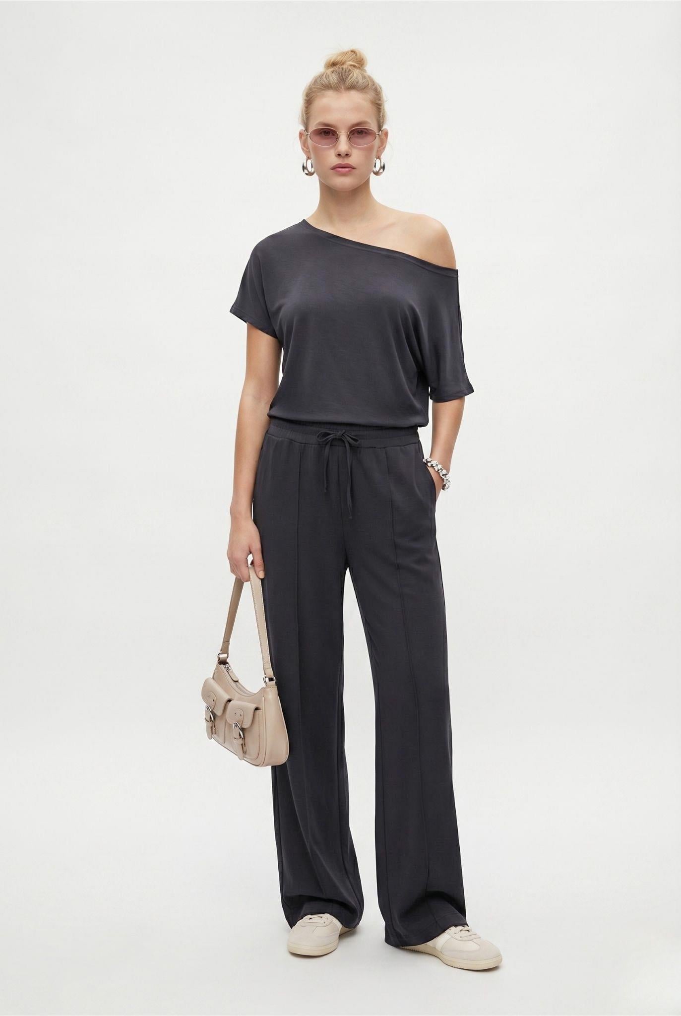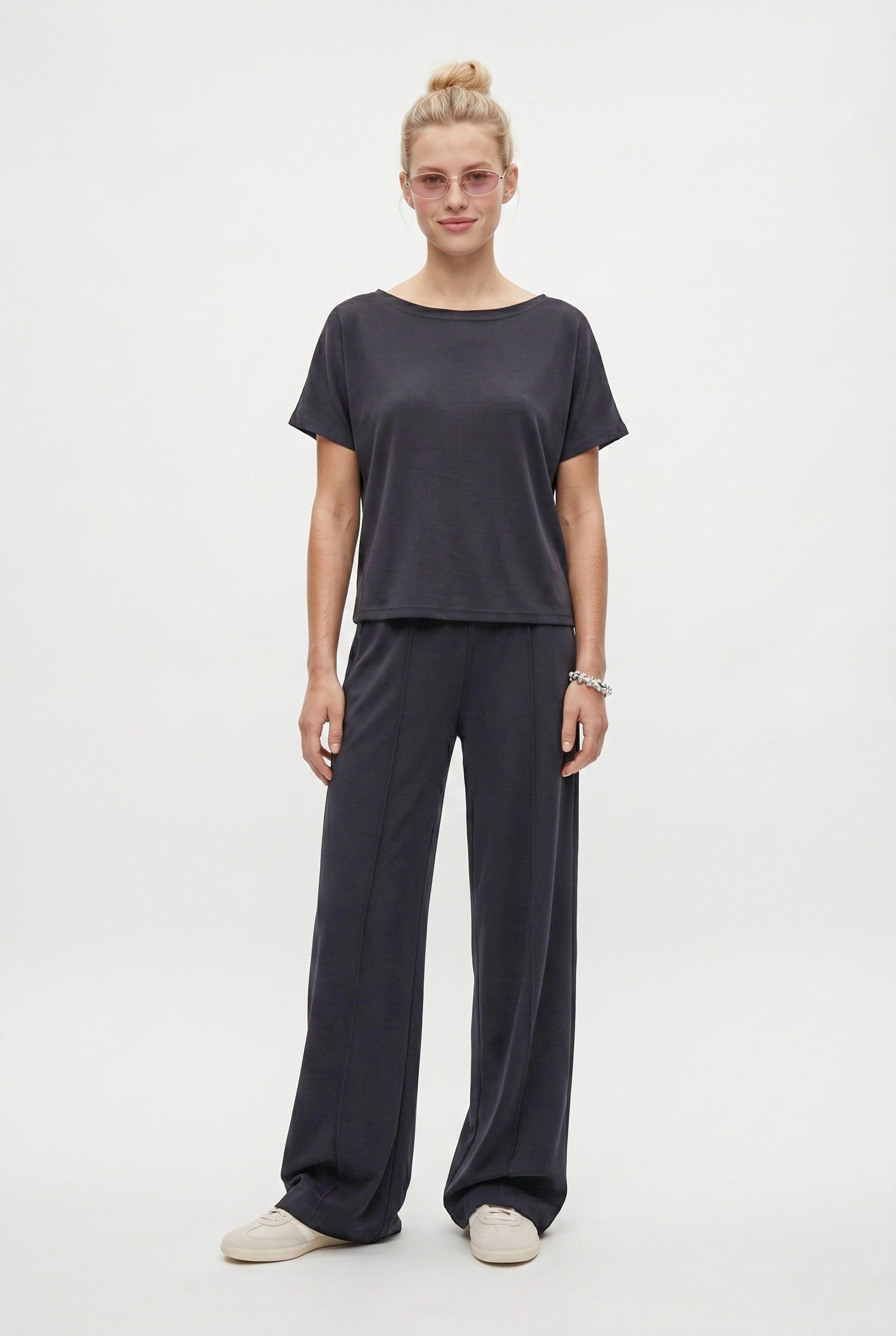 Kadın Zeny Modal Touch Kayık Yaka Bel Lastikli Cepli Antrasit Alt Üst Takım