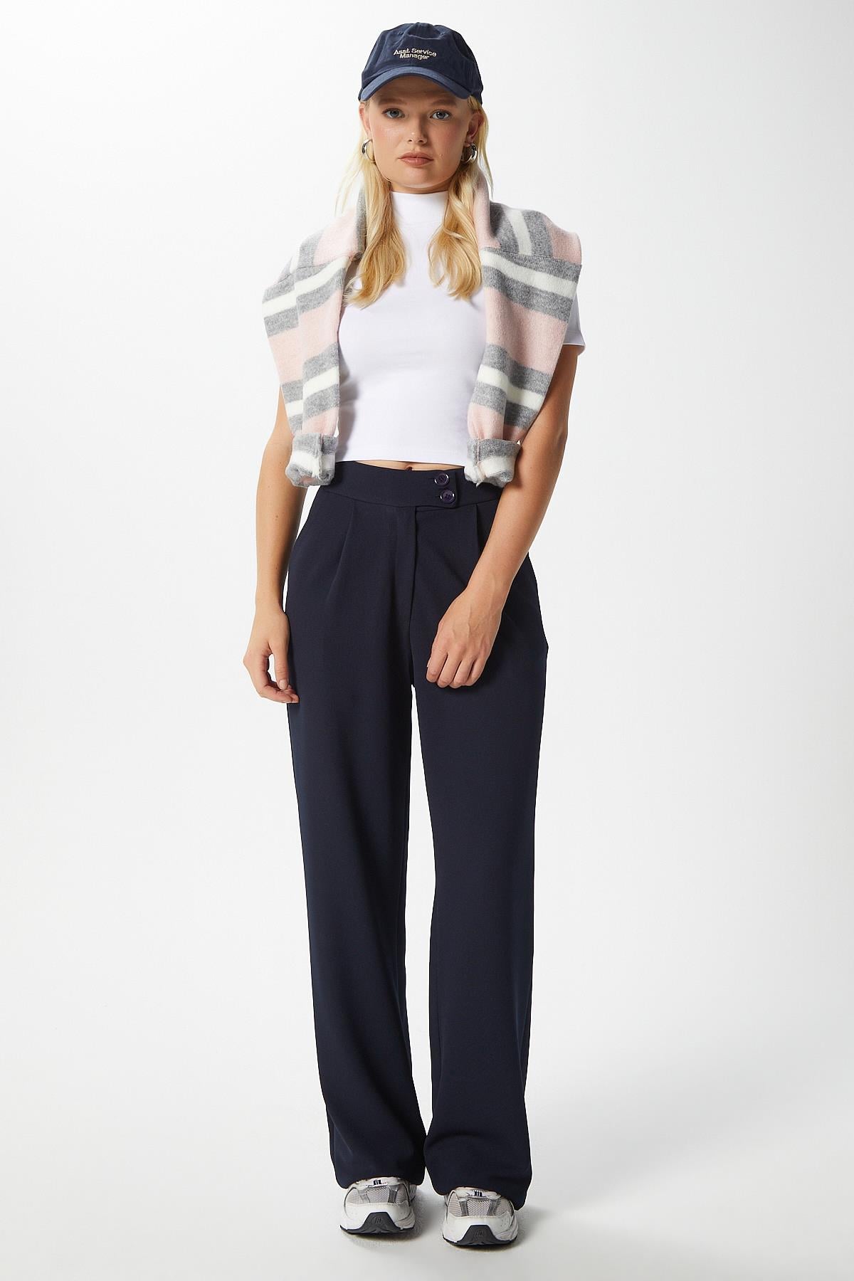 - Çift cepli yapısı küçük eşyalarınız için kolay erişim sağlarken, geniş paça kesimi modern bir görünüm kazandırır.