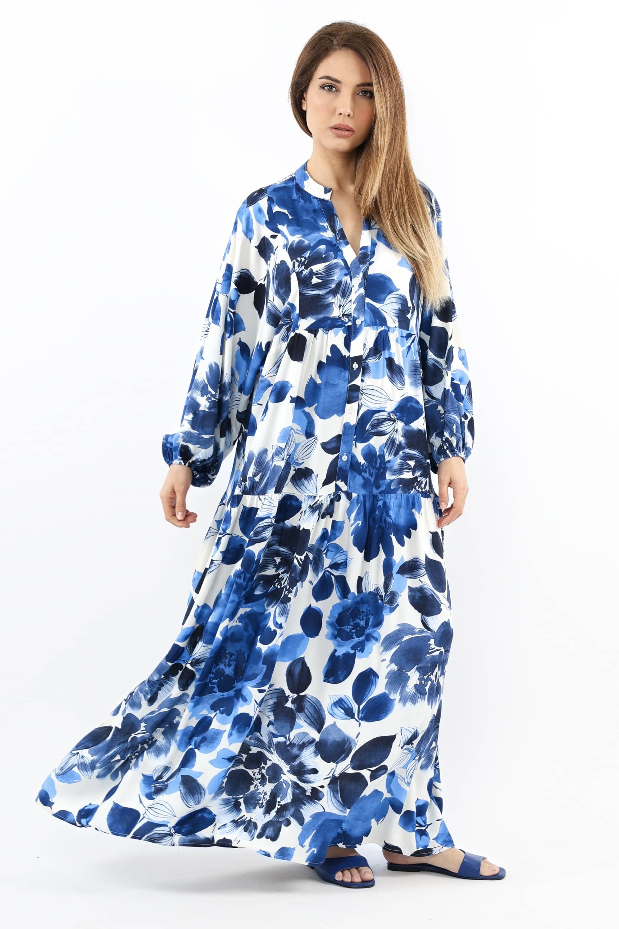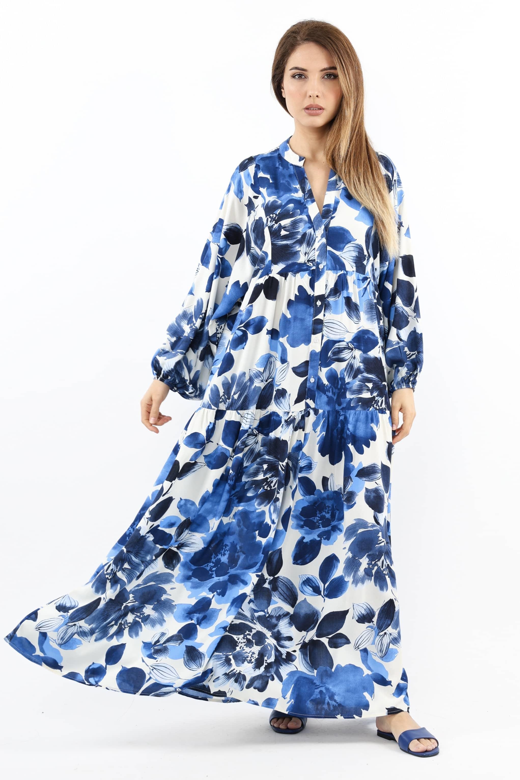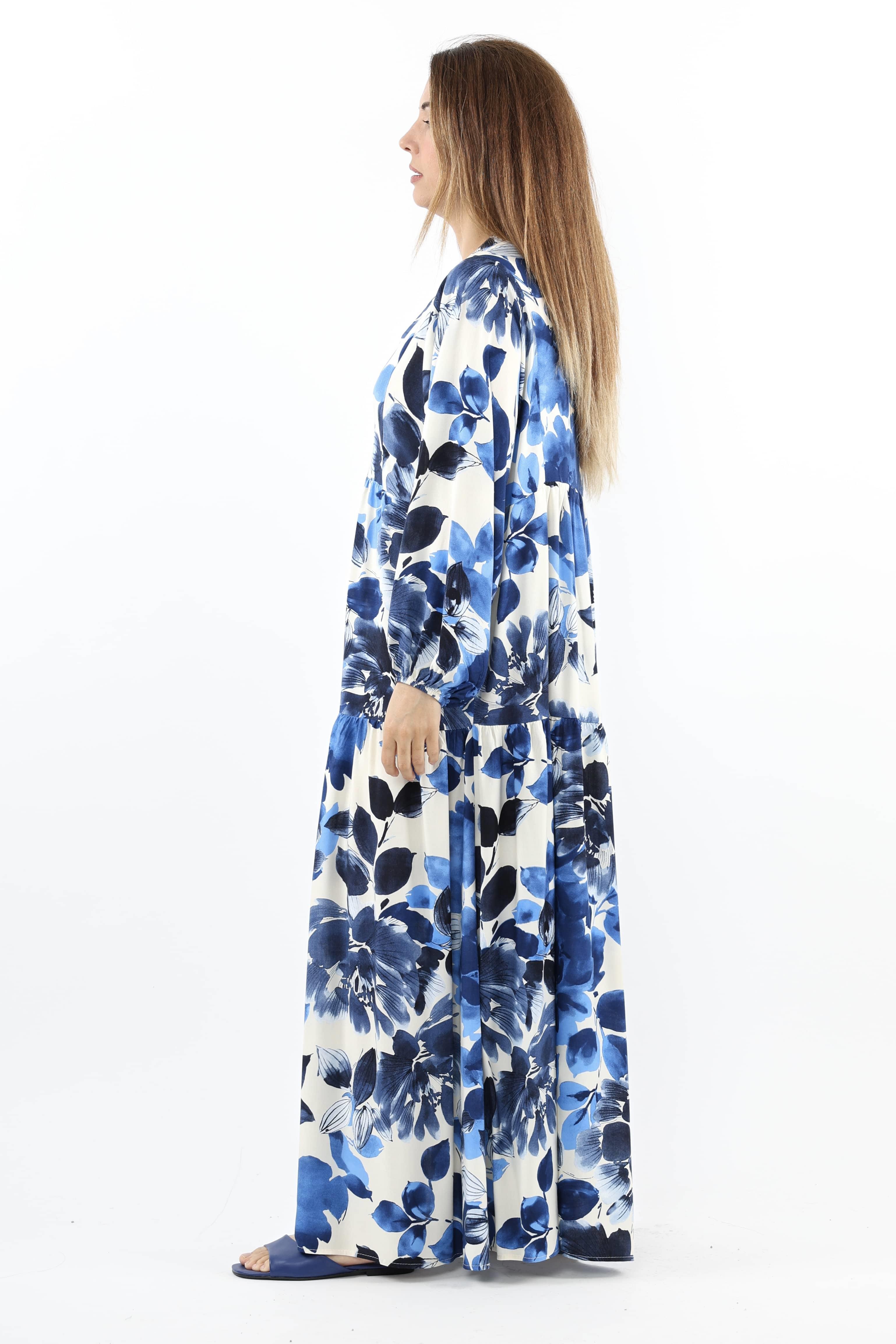 Prive Kadın Roses Mavi %100 Viskon Maksi Boy Elbise