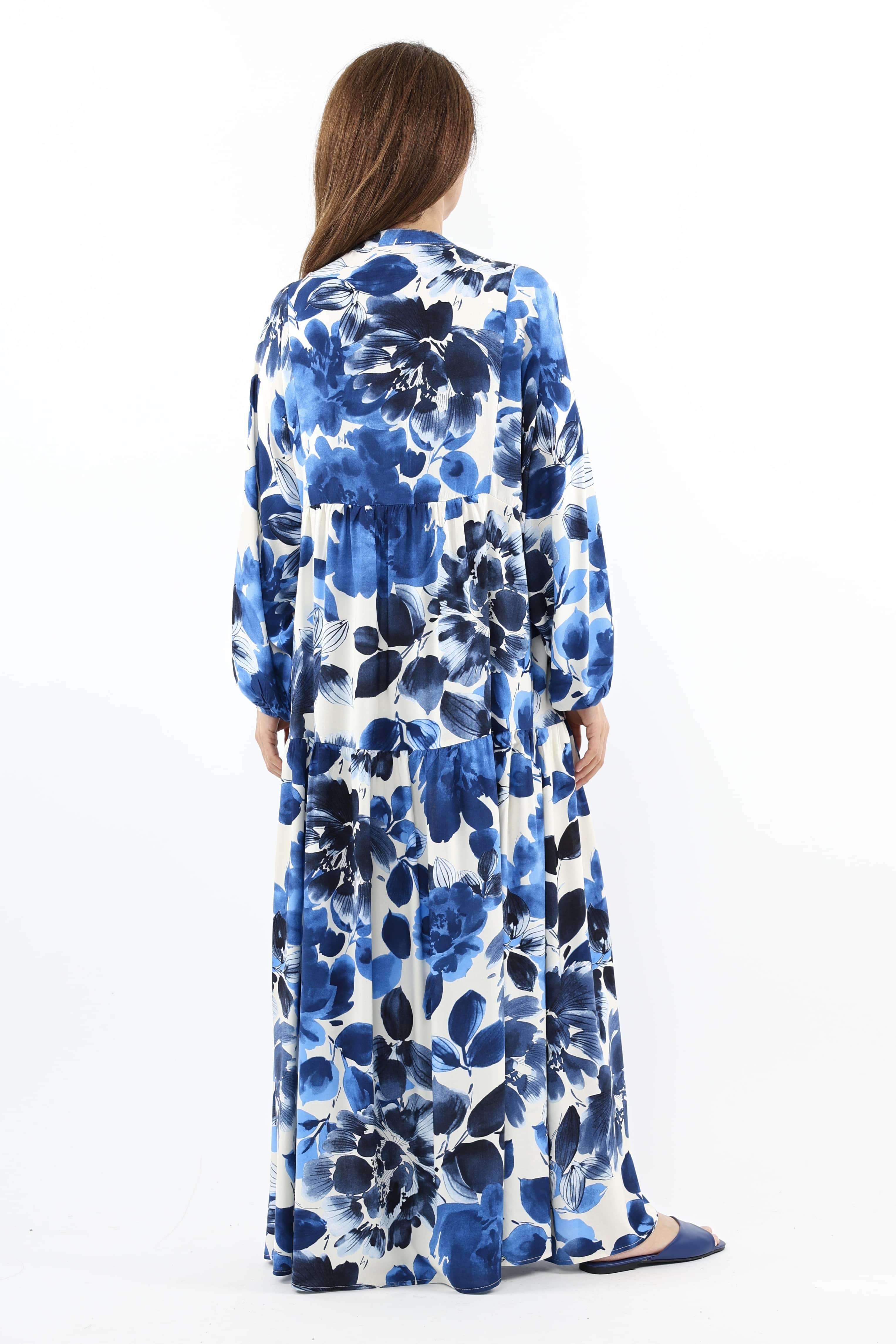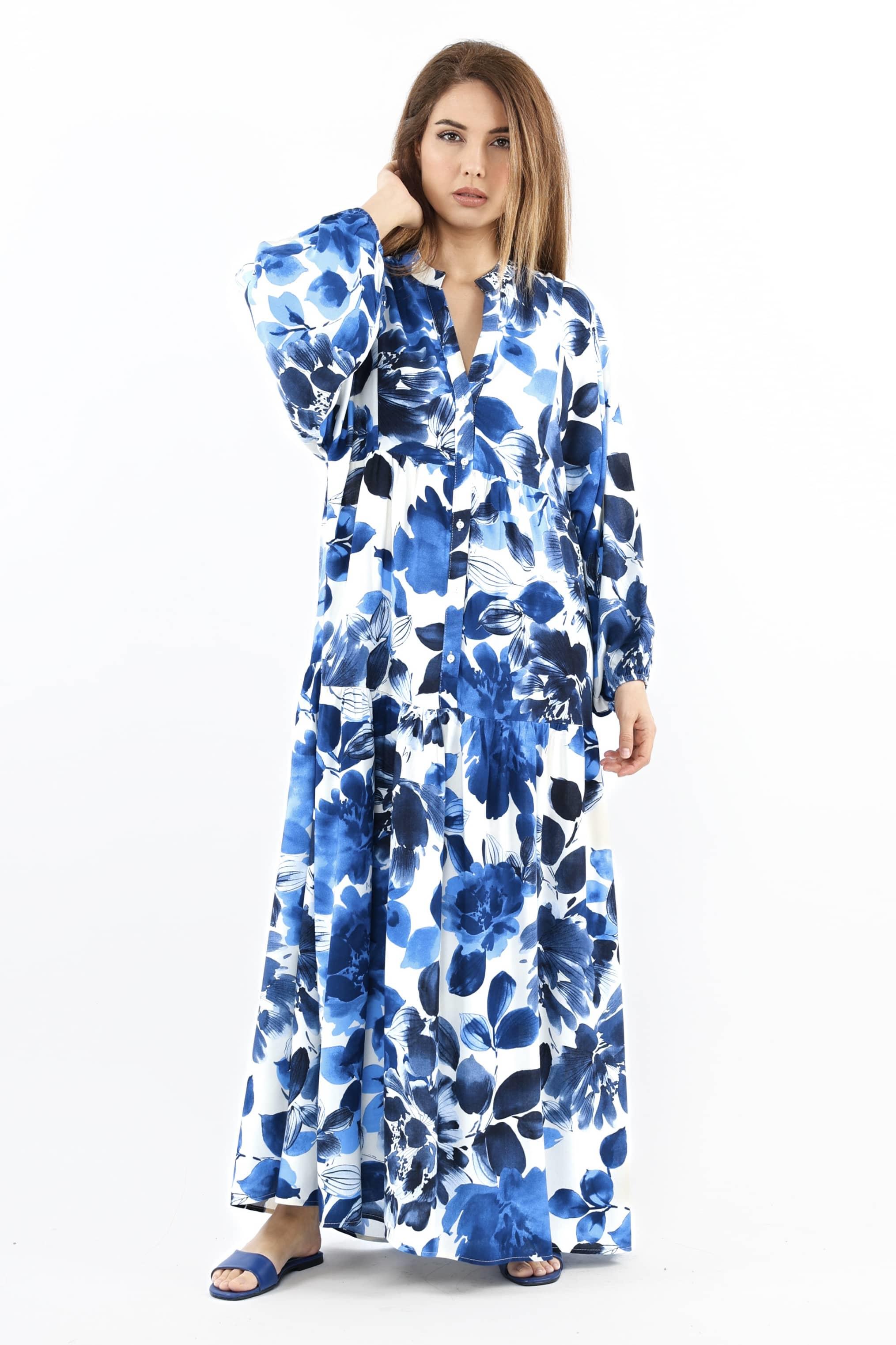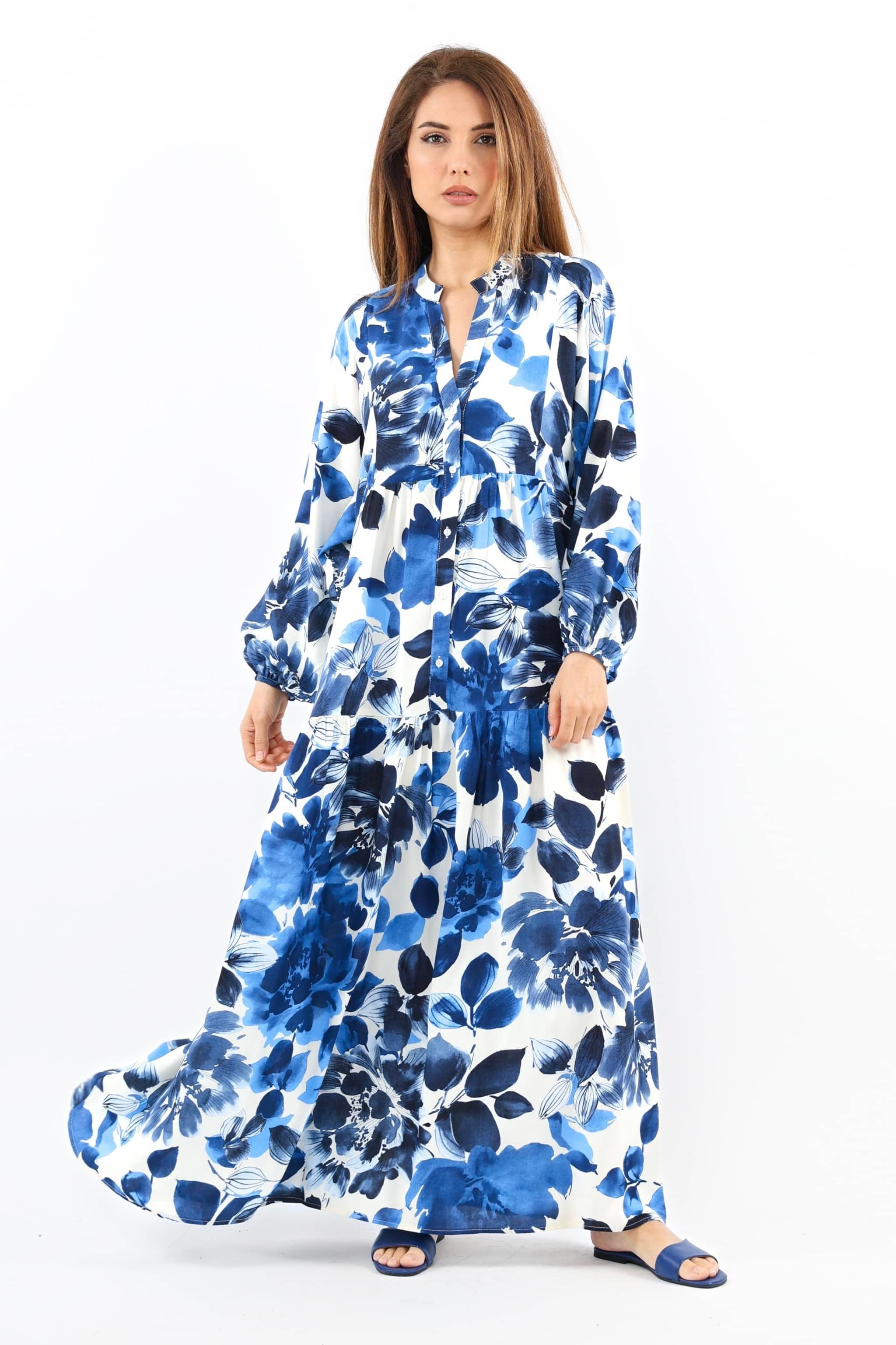 Prive Kadın Roses Mavi %100 Viskon Maksi Boy Elbise