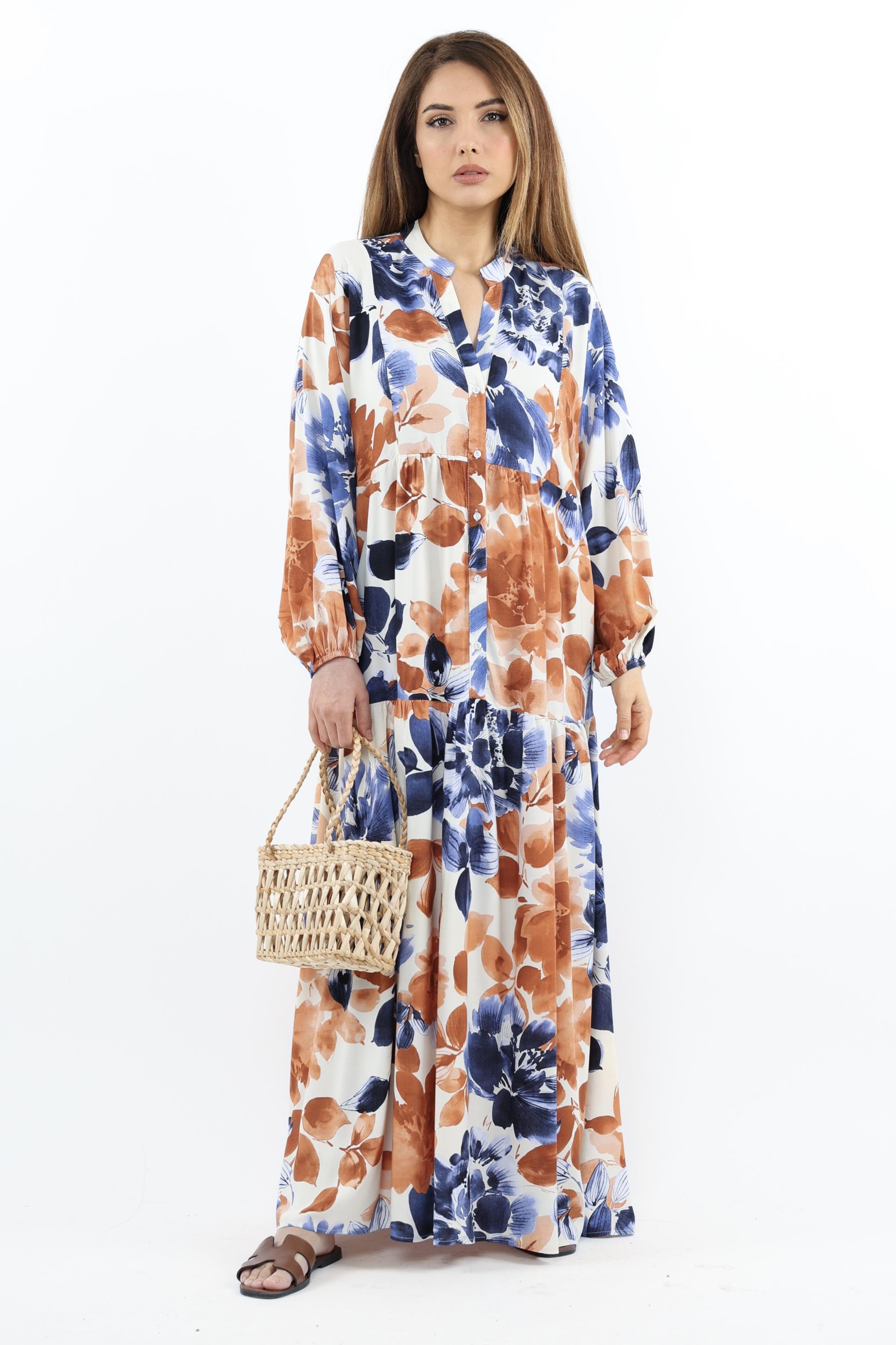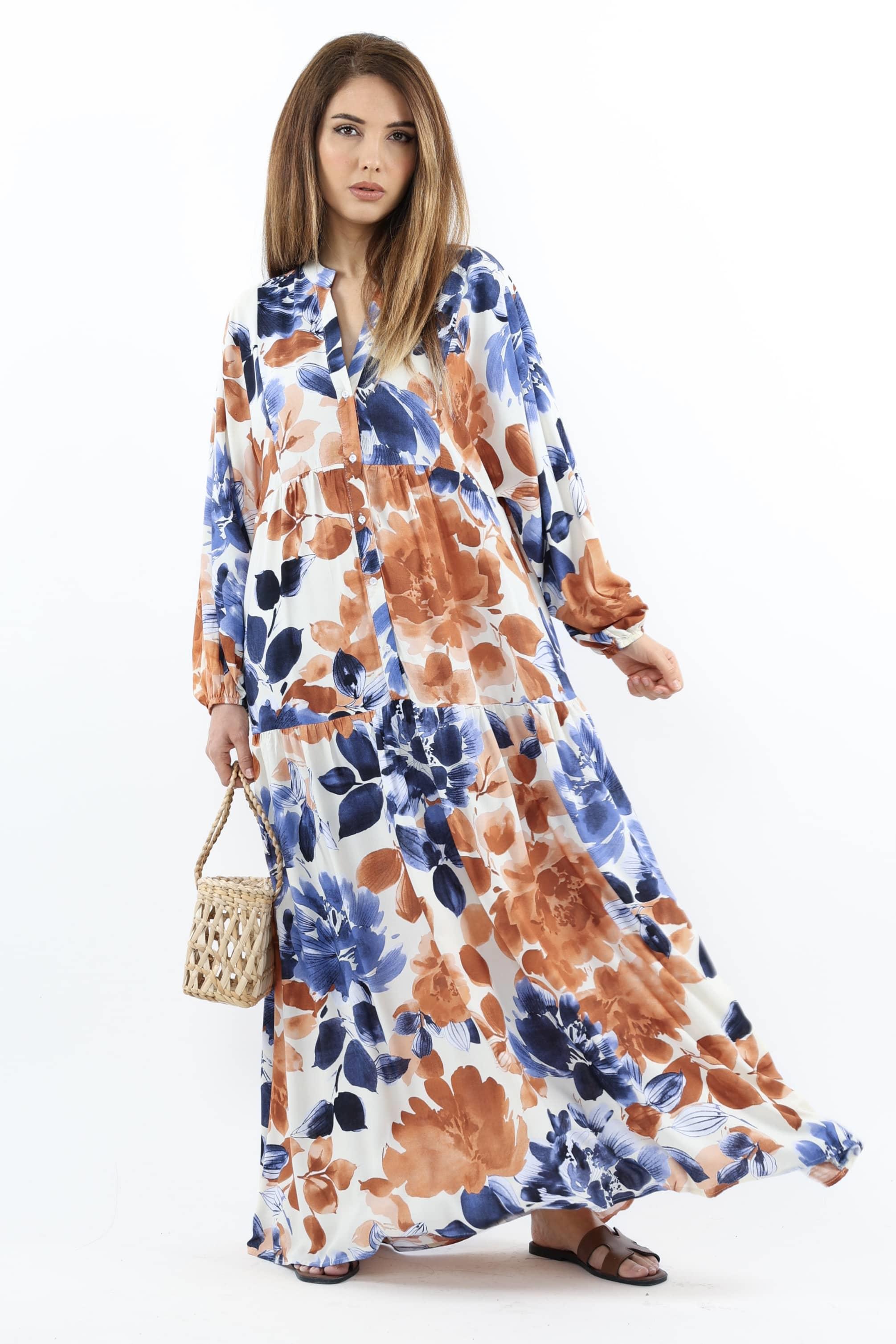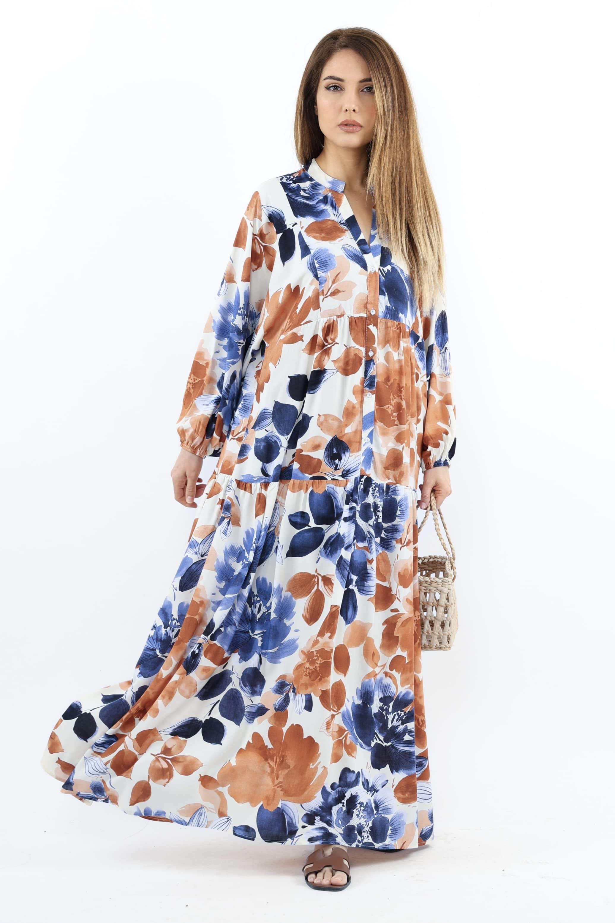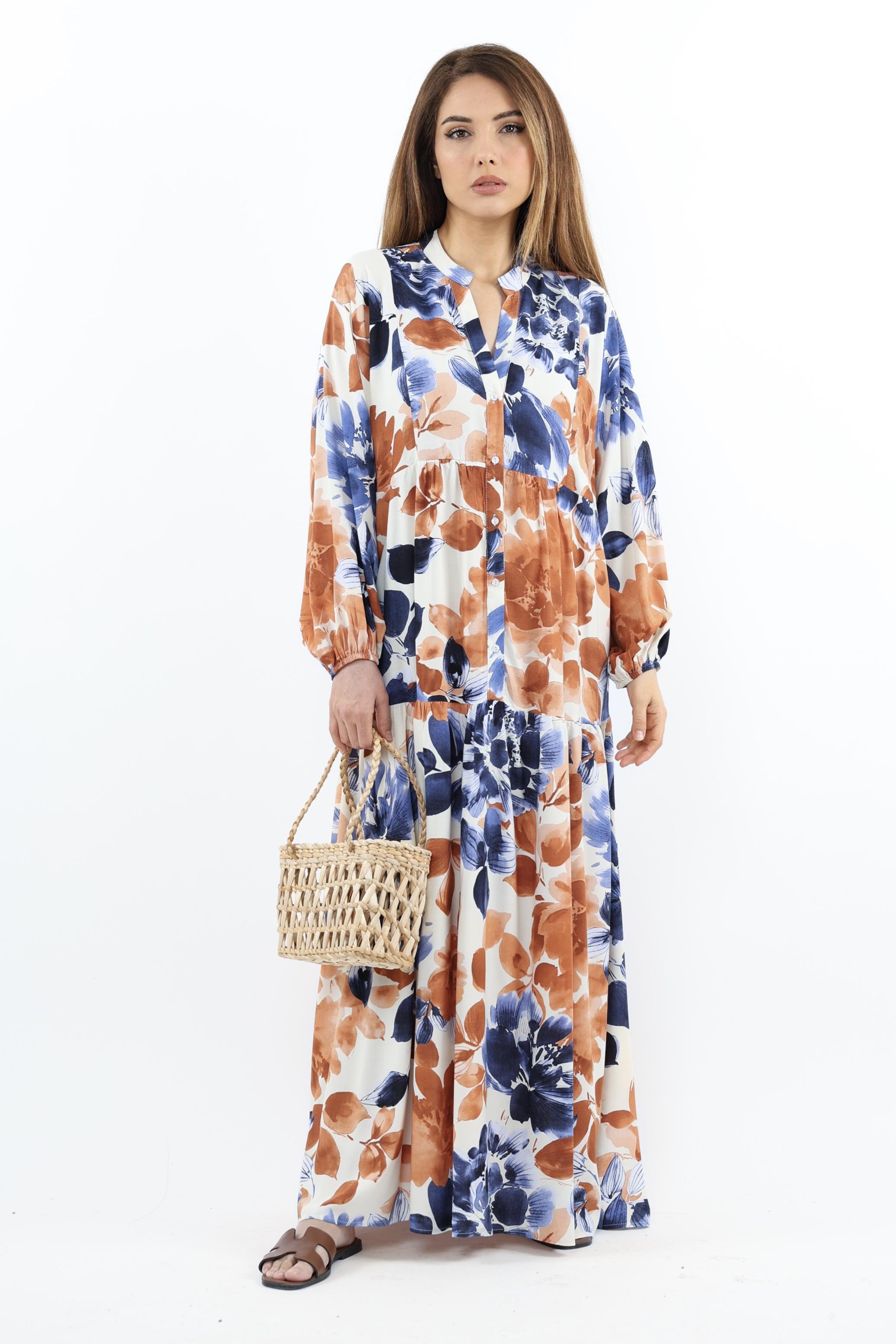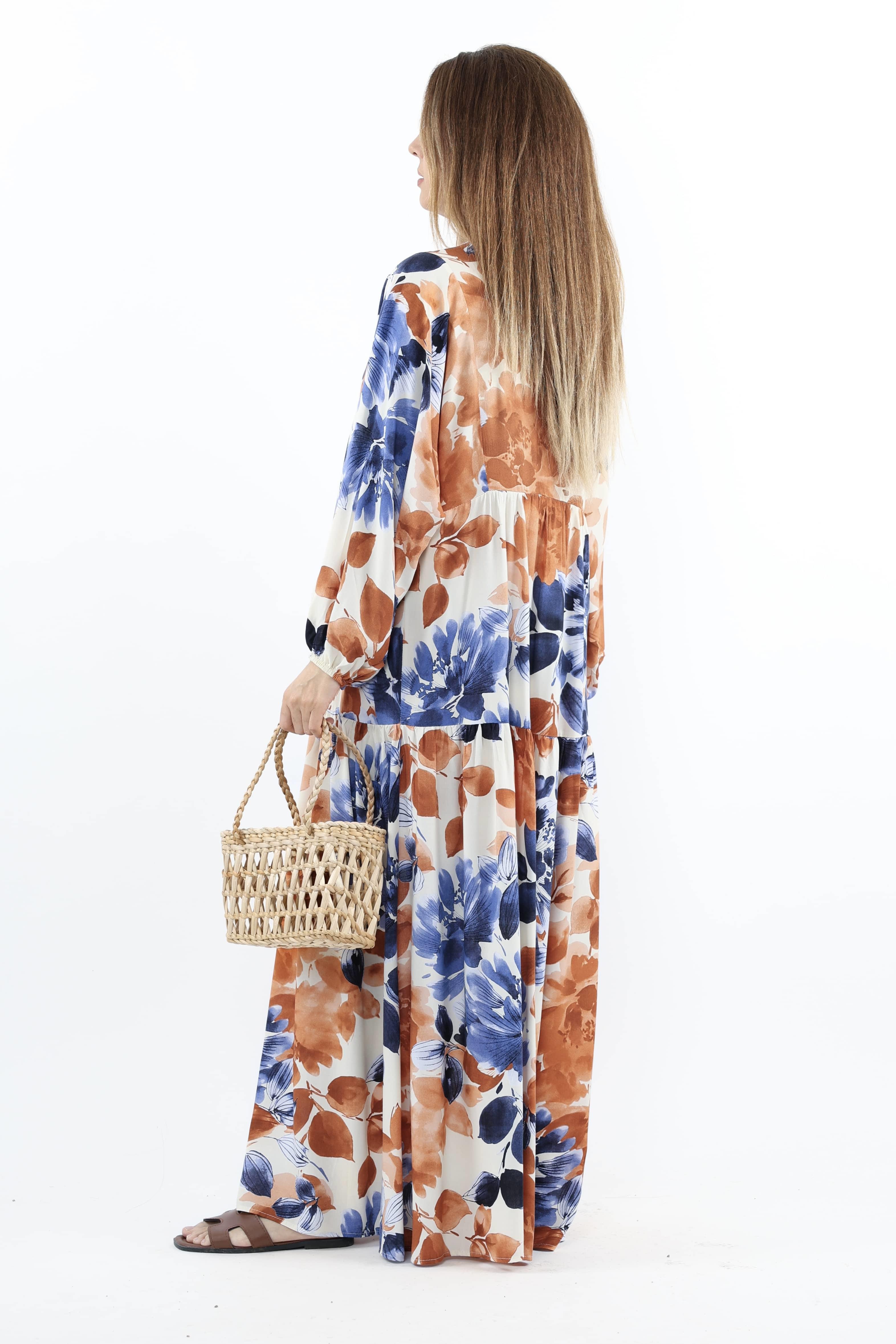 Prive Kadın Roses Mavi Tarçın %100 Viskon Maksi Boy Elbise