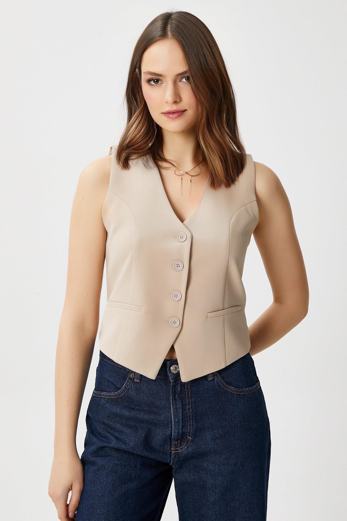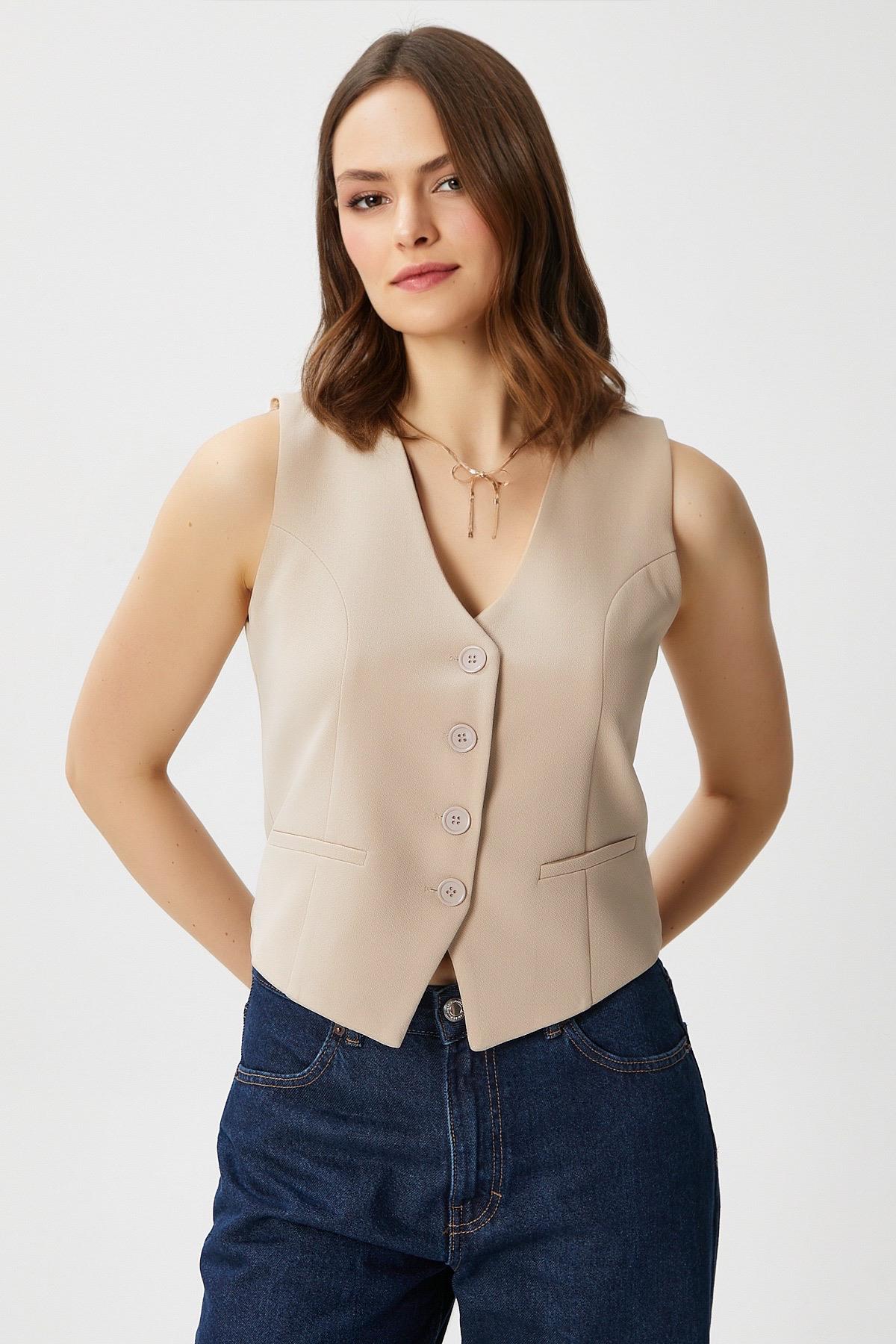 Ritnice Kadın Milena Astarlı Açık Bej Yelek