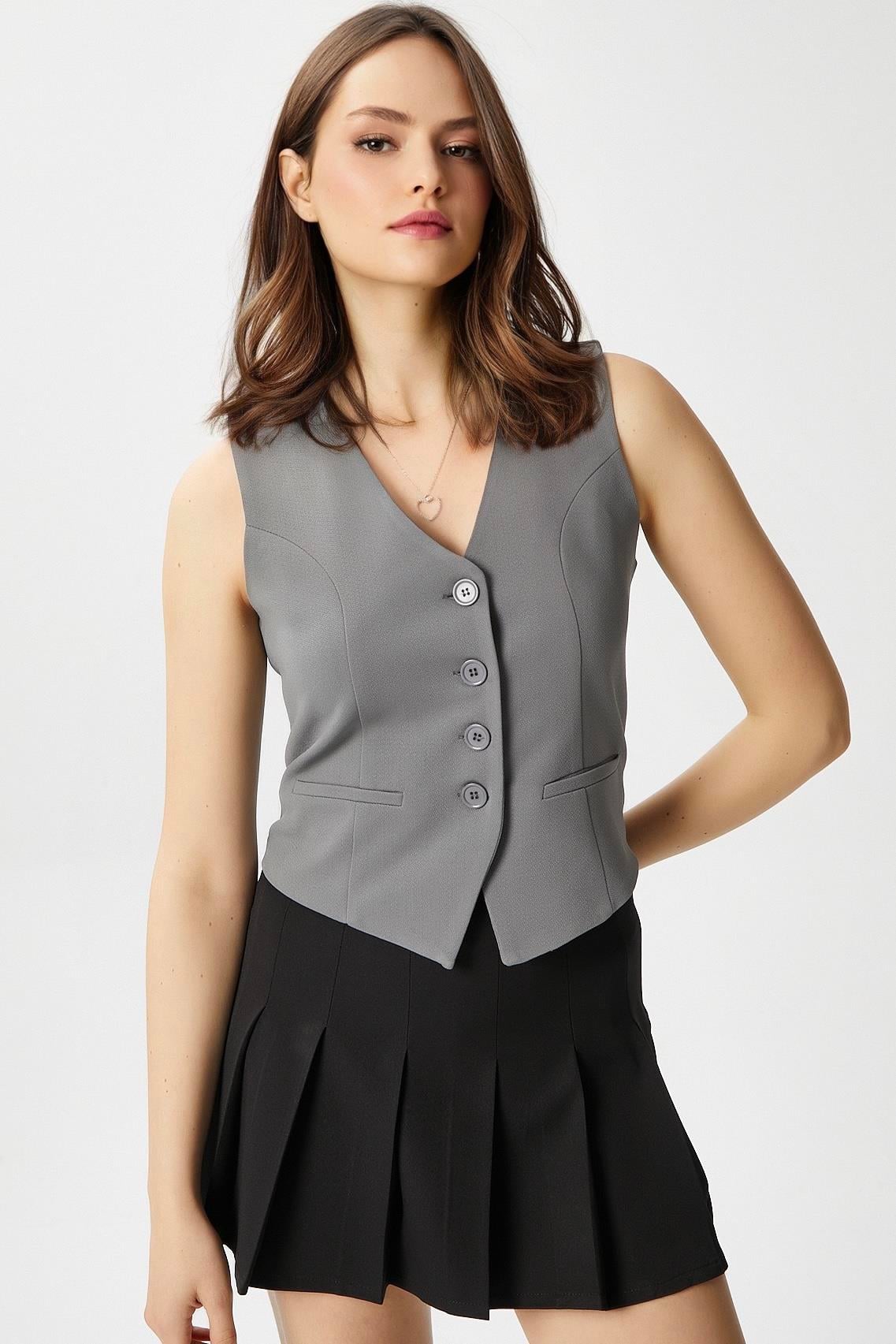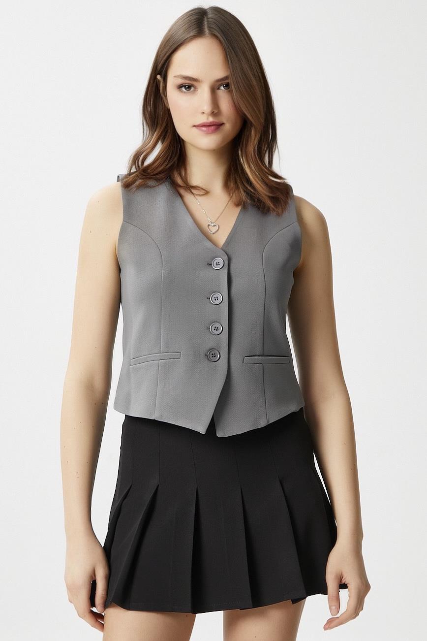 Ritnice Kadın MilenaAstarlı Gri Yelek
